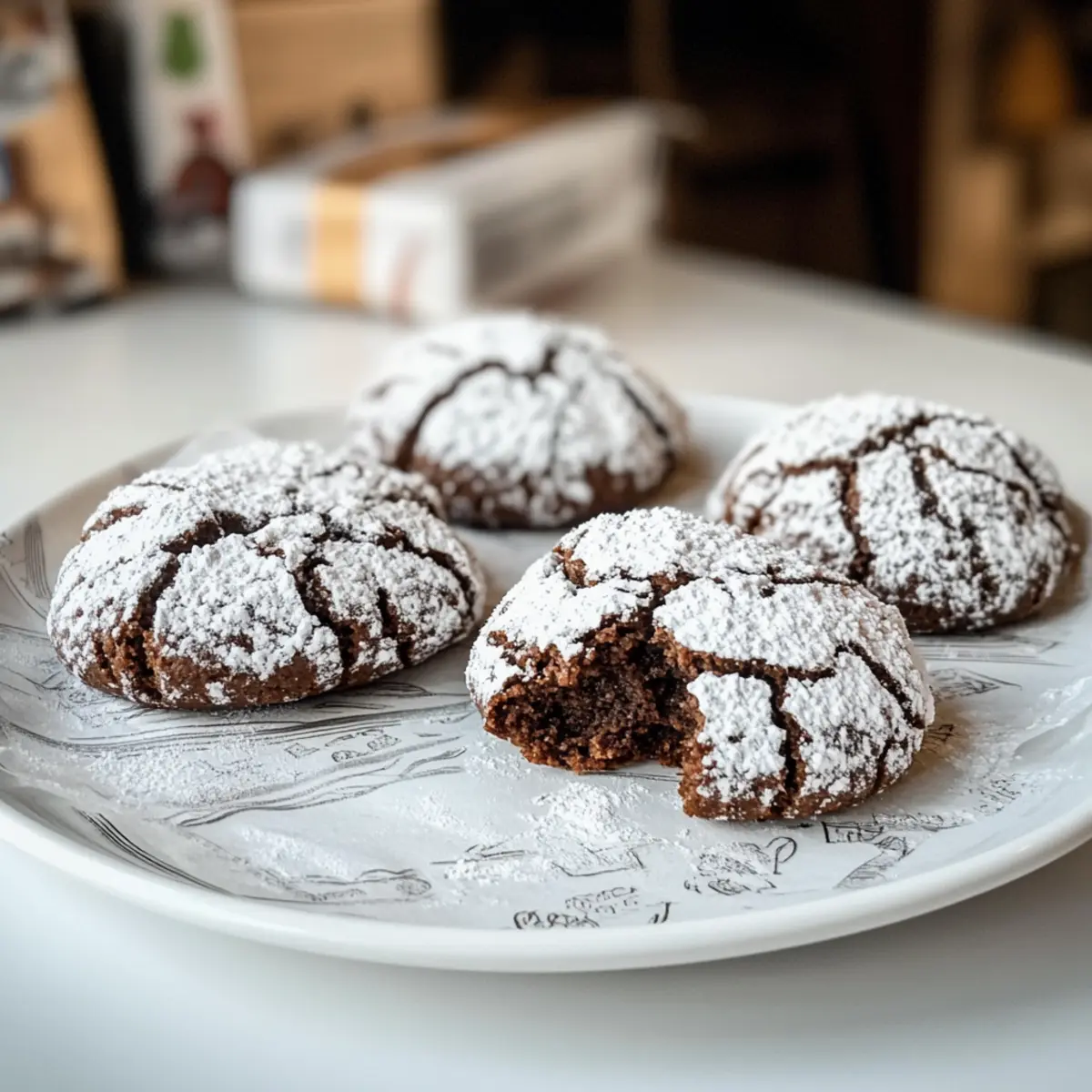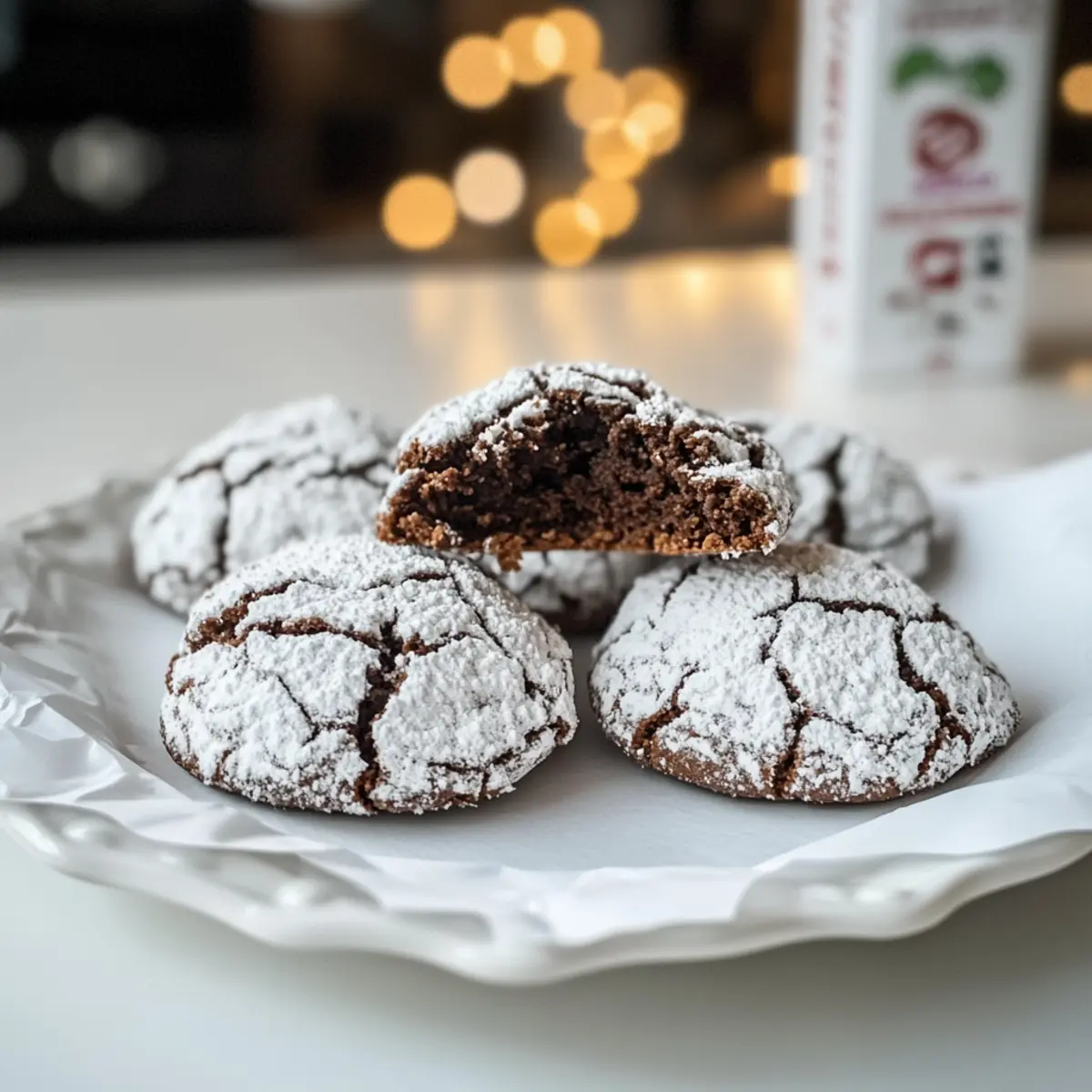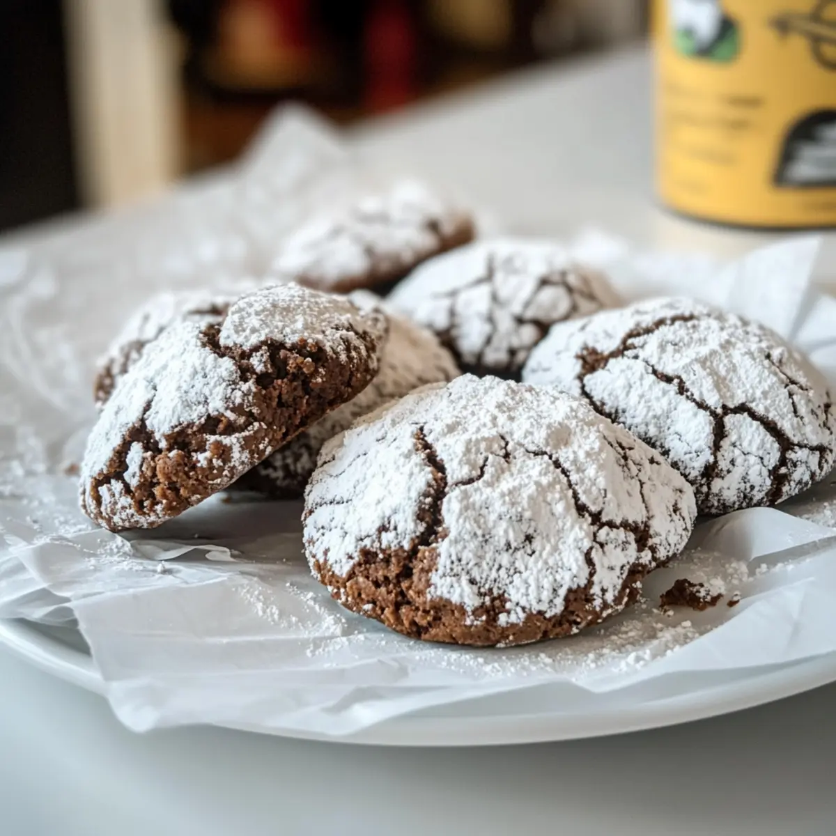 Der Duft von frisch gebackenen Keksen schwebt durch meine Küche und lässt mich sofort an die holprigen Wintertage denken, an denen man Wärme und Geborgenheit sucht. Heute teile ich mit euch mein geheimes Rezept für die unwiderstehlichen Schoko Crinkle Kekse. Diese kleinen Schokoladensensationen sind nicht nur einfach zuzubereiten, sondern auch ein absoluter Hit auf jeder festlichen Zusammenkunft. Mit ihrem krümeligen, zuckersüßen Äußeren und einer warmen, browniesähnlichen Mitte sind sie der perfekte Genuss, um die Seele zu wärmen und den Gaumen zu erfreuen. Lust auf eine süße Auszeit mit einer Tasse Tee oder Kaffee? Dann lasst uns gemeinsam in die Welt dieser leckeren Kekse eintauchen! Warum sind Schoko Crinkle Kekse so beliebt? Einfachheit, Die Zubereitung dieser himmlischen Kekse ist ein Kinderspiel; selbst Anfänger in der Küche werden sie leicht meistern. Reiche Aromen, Eine harmonische Kombination aus dunkler Schokolade und einer Prise Zimt macht jeden Biss zu einem Geschmackserlebnis. Kommender Winterzauber, Perfekt für die Weihnachtszeit bieten sie eine festliche Süßigkeit, die garantiert alle Gäste begeistert. Vielseitig, Du kannst sie nach Belieben anpassen, ob mit Nüssen oder einer Prise Vanille – der Kreativität sind keine Grenzen gesetzt. Tolle Aufbewahrung, Diese Kekse bleiben in einem luftdichten Behälter bis zu zwei Wochen frisch, ideal für die kleinen Naschkatzen bei dir zu Hause. Verwöhne deine Familie und Freunde mit diesen köstlichen Schoko Crinkle Keksen! Schoko Crinkle Kekse Zutaten • Hier sind alle notwendigen Zutaten für die perfekten Schoko Crinkle Kekse, die deiner Küche einen köstlichen Duft verleihen! Zartbitter Schokolade (Dark Chocolate): – Voraussetzung für den intensiven Schokoladengeschmack; verwende dunkle Couverture-Schokolade für eine andere Süßigkeitsstufe. Butter (Weich): – Sorgt für Feuchtigkeit und Reichtum; du kannst auch vegane Butter als laktosefreie Alternative nutzen. Zucker (Sugar): – Süßt den Teig; für eine weniger verarbeitete Option probiere Kokoszucker. Mehl (Flour): – Gibt den Keksen ihre Struktur; sowohl Weizen- als auch Dinkelmehl sind geeignet. Backpulver (Baking Powder): – Ein Treibmittel für die Textur; kann durch Weinstein-Backpulver und Natron ersetzt werden. Kakao (Cocoa Powder): – Verstärkt den Schokoladengeschmack; achte darauf, dass er ungesüßt ist. Zimt (Cinnamon): – Fügt Wärme und Gewürz hinzu; optional für einen einfacheren Geschmacksprofil. Salz (Salt): – Balanciert die Süße; wichtig für die Geschmacksentwicklung. Ei(er) (Eggs): – Bindet die Zutaten; kann durch Leinsamen-Eier für eine vegane Version ersetzt werden. Puderzucker (Powdered Sugar): – Dient zum Bestäuben der Kekse für ein festliches Aussehen; kann durch Kristallzucker ersetzt werden, hat aber nicht den gleichen Effekt. Zucker (Sugar), zum Wälzen: – Beschichtungszucker verhindert, dass der Puderzucker durchfeuchtet und matschig wird. Diese wohlschmeckenden Schoko Crinkle Kekse sind eine wahre Bereicherung für jede Weihnachtsfeier! Step-by-Step Instructions for Schoko Crinkle Kekse Step 1: Schokolade schmelzen Hacke die Zartbitter Schokolade grob und gib sie zusammen mit der weichen Butter in eine Schüssel über ein Wasserbad. Lass die Mischung bei mittlerer Hitze schmelzen, bis sie glatt und glänzend ist. Rühre gut um und nehme die Schüssel vom Herd, damit die Schokolade leicht abkühlen kann. Step 2: Trockene Zutaten vermengen In einer großen Schüssel verrühre das Mehl, den Kakao, das Backpulver, den Zimt und das Salz gründlich. Achte darauf, dass sich keine Klümpchen bilden, und vermische die Zutaten gut miteinander, bis du eine gleichmäßige Mischung erhältst. Step 3: Mischungen vereinen Jetzt fügst du die abgekühlte Schokoladen-Butter-Mischung zu den trockenen Zutaten hinzu. Verwende einen Schneebesen, um alles gut miteinander zu verrühren. Gib dann die Eier dazu und schlage die Mischung kräftig durch, bis alles gut verbunden ist und der Teig schön cremig aussieht. Step 4: Teig kühlen Forme den Teig zu einer logartigen Rolle und wickele ihn in Frischhaltefolie. Stelle die Rolle für mindestens 2 Stunden oder über Nacht in den Kühlschrank, damit der Teig fest wird und sich leichter verarbeiten lässt. Dies verhindert, dass die Kekse beim Backen verlaufen. Step 5: Ofen vorheizen Heize deinen Backofen auf 180°C (350°F) vor und lege zwei Backbleche mit Backpapier aus. Während der Ofen aufheizt, bereite zwei Schüsseln mit je einem Mix aus Kristallzucker und Puderzucker vor, in denen du die Kekse später wälzen kannst. Step 6: Kekse formen Nehme den gekühlten Teig aus dem Kühlschrank und schneide ihn in walnussgroße Stücke. Rolle jedes Stück mit den Händen zu einer glatten Kugel. Wälze die Kugeln zuerst im Kristallzucker und dann im Puderzucker, um die typische Zuckerschicht der Schoko Crinkle Kekse zu erhalten. Step 7: Backen Lege die Zucker-bestäubten Teigkugeln auf das vorbereitete Backblech und lasse genügend Platz zwischen den Keksen, damit sie beim Backen auseinanderlaufen können. Backe die Kekse für 8 bis 10 Minuten. Sie sollten noch weich und etwas unterbacken erscheinen, da sie beim Abkühlen fest werden. Step 8: Abkühlen lassen Lasse die frisch gebackenen Schoko Crinkle Kekse für etwa 2 Minuten auf dem Blech ruhen, bevor du sie vorsichtig auf ein Kuchengitter legst, um vollständig abzukühlen. Dies sorgt dafür, dass sie ihre Form behalten und dass der Zuckerguss schön knusprig bleibt. Was passt zu Schoko Crinkle Kekse? Genießen Sie die himmlische Kombination dieser köstlichen Kekse mit weiteren leichten und festlichen Begleitern, die Ihre Geschmacksknospen überraschen werden! Milch: Ein klassischer Begleiter, der den reichhaltigen Schokoladengeschmack perfekt ausgleicht und für Kinder und Erwachsene gleichermaßen beliebt ist. Tee: Ein heißer Chai oder Kräutertee bringt zusätzlich Wärme mit sich und rundet das süße Erlebnis ab. G