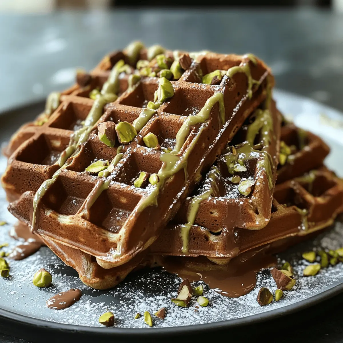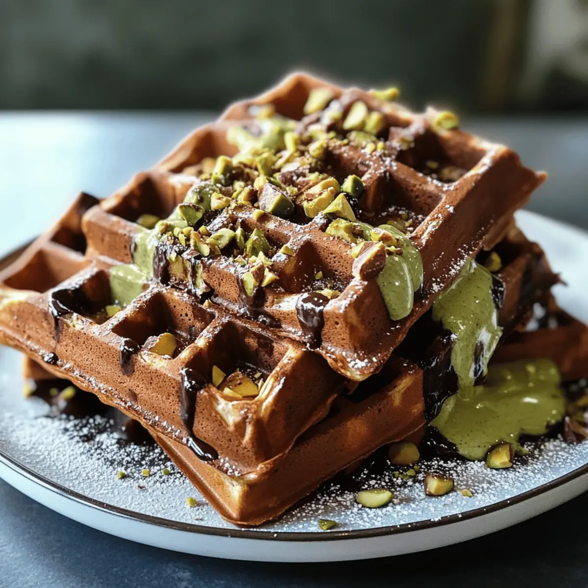 Gerade als ich in der Küche stand und den süßen Duft von Schokolade einatmete, wusste ich, dass heute ein besonderer Genuss auf mich wartete. Diese Schoko-Pistazien-Waffeln sind nicht nur ein Fest für den Gaumen, sondern auch ein schneller Weg, um jeder Kaffeetafel den ultimativen Wow-Faktor zu verleihen. Innerhalb von nur 20 Minuten zaubert ihr mit dieser einfachen und köstlichen Rezeptur ein Gericht, das sowohl Schokoladenliebhaber als auch Waffelfans begeistert. Ein wahres Highlight ist die cremige Pistazienfüllung, die den herzhaften, schokoladigen Geschmack perfekt ergänzt. Bereit für ein leckeres Abenteuer? Dann blättert weiter und entdeckt, wie ihr diese himmlischen Waffeln ganz einfach selbst zubereiten könnt! Warum werden diese Waffeln Ihre Lieblingsleckerei? Schnelligkeit: In nur 20 Minuten sind diese Waffeln bereit, um genossen zu werden – perfekt für spontane Gelüste. Harmonischer Geschmack: Die Kombination aus dunkler Schokolade und cremiger Pistazienfüllung sorgt für ein unvergleichliches Geschmackserlebnis, das die Sinne verführt. Vielseitigkeit: Ob als Frühstück, Dessert oder Snack – diese Waffeln passen zu jedem Anlass. Mit etwas frischen Beeren oder einem Schuss Schokoladensauce serviert, wird jede Portion zum Highlight. Gesunde Alternativen: Mit einfachen Anpassungen können Sie die Zutaten nach Ihrem Geschmack variieren, um eine leichtere oder vegane Version zu kreieren. Entdecken Sie auch unsere anderen Waffelrezepte und bleiben Sie inspiriert! Schoko-Pistazien-Waffel Zutaten Für den Waffelteig: Zartbitter-Schokolade – Schmelzen Sie sie langsam für den perfekten fudgy Geschmack; auch Milchschokolade ist eine süße Alternative. Butter (weich) – Sorgen Sie für eine luftige Konsistenz; Margarine funktioniert gut für eine milchfreie Variante. Zucker – Süßt den Teig; ersetzen Sie ihn durch Kokoszucker für eine gesündere Option. Eier – Binden die Zutaten und verleihen den Waffeln Volumen; Flachseier sind eine vegane Möglichkeit. Weizenmehl – Sie gibt den Waffeln Struktur; ein glutenfreies Mehl-Mix kann stattdessen verwendet werden. Backkakao – Verstärkt den schokoladigen Geschmack; für eine glattere Note nehmen Sie holländischen Kakao. Salz – Balanciert die Süße; weglassen, wenn Sie eine salzarme Diät einhalten. Buttermilch – Sorgt für einen herrlichen Geschmack und zusätzliche Feuchtigkeit; ersetzen Sie sie durch eine Mischung aus Milch und Joghurt oder Milch und Essig. Für die Pistaziencreme: Joghurt – Die cremige Basis für die Pistaziencreme; verwenden Sie pflanzlichen Joghurt für eine vegane Option. Vanilleschote – Fügt eine aromatische Süße hinzu; Vanille-Extrakt ist eine gute Ersatzoption. Brunch Natur – Trägt zur cremigen Textur bei; kann durch Frischkäse für einen reichhaltigeren Geschmack ersetzt werden. Pistazienkerne – geben Frische und Knusprigkeit; können durch andere Nüsse ersetzt werden. Pistaziencreme – Intensiviert den Pistaziengeschmack; dieser Schritt kann weggelassen werden, wenn es schneller gehen soll. Diese Schoko-Pistazien-Waffeln sind die perfekte Verbindung von Geschmack und Textur – lecker und unvergesslich! Step-by-Step Instructions for Schoko-Pistazien-Waffel Step 1: Schokolade vorbereiten Zerkleinern Sie die Zartbitter-Schokolade grob und schmelzen Sie sie langsam in einer hitzebeständigen Schüssel über einem Topf mit simmerndem Wasser. Rühren Sie gelegentlich um, bis die Schokolade vollständig geschmolzen ist. Lassen Sie die Schokolade anschließend etwas abkühlen, damit sie sich besser mit den anderen Zutaten vermischen lässt. Step 2: Feuchte Zutaten mischen In einer großen Rührschüssel die weiche Butter und den Zucker mit einem Handmixer schaumig schlagen. Geben Sie die Eier nacheinander hinzu und schlagen Sie die Mischung gründlich nach jedem Ei, bis die Masse leicht und cremig ist. Dies sorgt dafür, dass Ihre Schoko-Pistazien-Waffeln eine luftige Textur bekommen. Step 3: Trockene Zutaten kombinieren In einer separaten Schüssel das Weizenmehl, Backkakao, Backpulver und Salz gut vermengen. Vermischen Sie die trockenen Zutaten vorsichtig mit einem Schneebesen, bis alles gleichmäßig verteilt ist. So vermeiden Sie Klumpen im Teig und stellen sicher, dass die Schoko-Pistazien-Waffeln perfekt aufgehen. Step 4: Schokolade und Buttermilch hinzufügen Falten Sie die abgekühlte geschmolzene Schokolade sowie die Buttermilch sanft in die Butter-Zucker-Ei-Mischung. Achten Sie darauf, dass alles gut miteinander vermischt ist, ohne den Teig zu übermixen. Dieser Schritt ist entscheidend, um den reichhaltigen Geschmack Ihrer Schoko-Pistazien-Waffeln zu erhalten. Step 5: Waffeleisen vorheizen Heizen Sie Ihr Waffeleisen vor und fetten Sie es leicht mit etwas Butter ein, um ein Anhaften der Waffeln zu verhindern. Die perfekte Temperatur sorgt dafür, dass die Waffeln außen knusprig und innen schön weich werden. Warten Sie, bis die Kontrollleuchte des Waffeleisens anzeigt, dass es bereit ist. Step 6: Waffeln backen Gießen Sie 2-3 Esslöffel des Teigs in das heiße Waffeleisen und schließen Sie den Deckel. Backen Sie die Waffeln etwa 2-3 Minuten lang oder bis sie goldbraun und knusprig sind. Achten Sie darauf, dass Sie sie nicht zu lange im Waffeleisen lassen, um eine perfekte Konsistenz zu gewährleisten. Step 7: Pistaziencreme zubereiten Während die Waffeln backen, bereiten Sie die Pistaziencreme vor. Vermengen Sie in einer kleinen Schüssel den Joghurt, Brunch Natur, das Mark der Vanilleschote und die Pistaziencreme, bis eine glatte Masse entsteht. Diese cremige Mischung wird den Waffeln einen zusätzlichen geschmacklichen Kick verleihen. Step 8: Servieren Servieren Sie die frisch gebackenen Schoko-Pistazien-Waffeln direkt vom Waffeleisen mit einer großzügigen Portion der pistaziencreme. Streuen Sie einige gehackte Pistazien darüber, um die Textur und den Geschmack zu verfeinern. Ihre Gäste werden begeistert sein! Variationen & Alternativen Lassen Sie Ihre