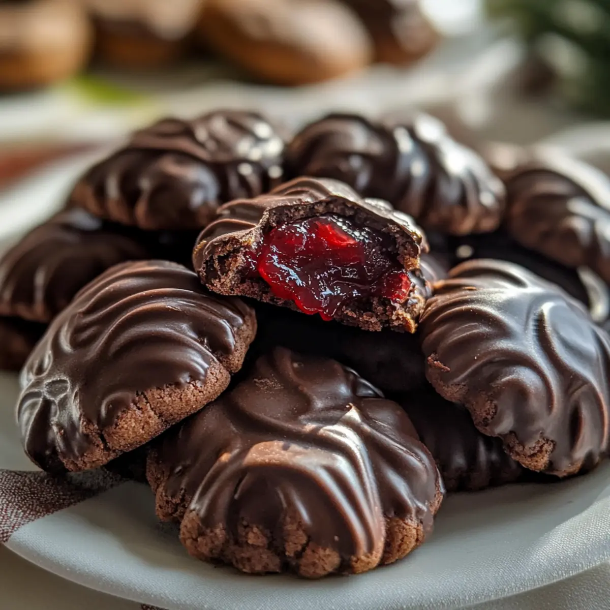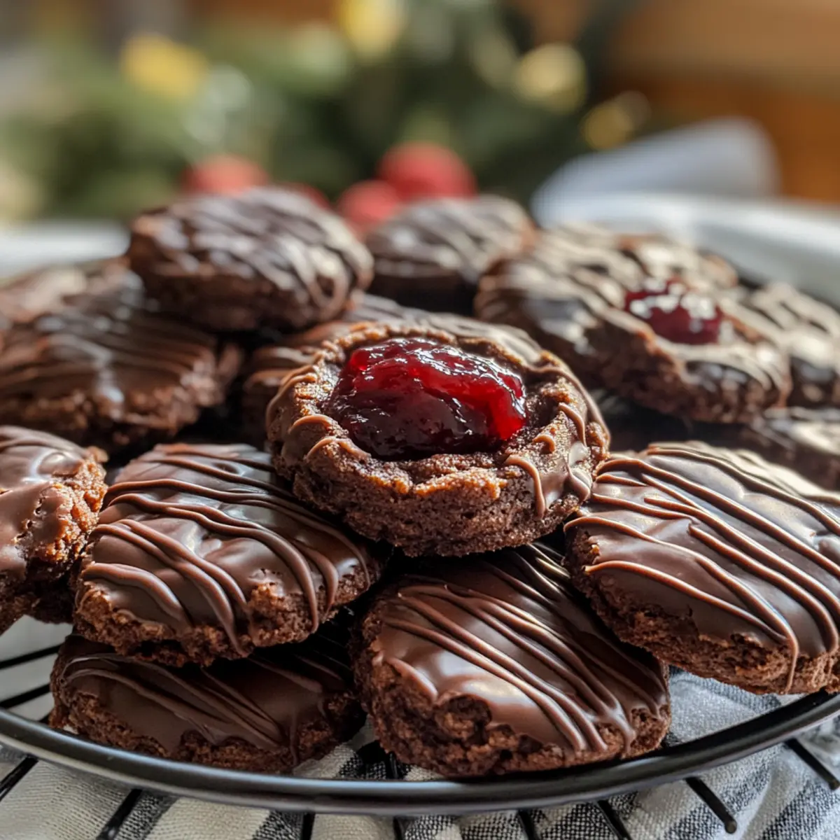 Weihnachtszeit ist die perfekte Gelegenheit, um die heimelige Atmosphäre mit köstlichem Gebäck zu füllen. Heute teile ich mit euch mein Rezept für gefülltes Schokoladen Spritzgebäck, ein Highlight auf jedem festlichen Plätzchenteller. Diese zarten Kekse sind nicht nur atemberaubend anzusehen, sondern auch auf magische Weise einfach zuzubereiten. Egal, ob ihr euch für die süße rote Konfitüre oder den schokoladigen Brotaufstrich entscheidet, der Genuss garantiert ein Lächeln auf eure Lippen. Die Kombination aus schmelzend weichem Teig und einer verführerischen Füllung macht diese Plätzchen zu einem echten Lieblingsrezept, das nicht nur in der Vorweihnachtszeit Freude bereitet, sondern auch die Herzen eurer Liebsten höher schlagen lässt. Bereit, eure eigenen Schokoladen Spritzgebäck zu kreieren? Lasst uns gemeinsam in diese süße Tradition eintauchen! Warum sind diese Kekse unverzichtbar? Unwiderstehlicher Geschmack: Die Kombination aus schokoladigem Teig und einer verlockenden Füllung macht jedes Stück zu einem Genuss. Einfache Zubereitung: Mit nur wenigen Zutaten und einfachen Schritten sind diese Kekse schnell nachzubacken. Festliche Optik: Die leuchtenden Farben der Füllungen machen diese Plätzchen nicht nur lecker, sondern auch zum Hingucker auf jedem Plätzchenteller. Vielfältige Füllungen: Ob süße rote Konfitüre oder schokoladiger Brotaufstrich, die Wahl liegt ganz bei euch und sorgt für Abwechslung. Familienfreundlich: Die ganze Familie wird bei der Zubereitung und dem Vernaschen dieser Kekse Freude haben – ein gemeinsames Erlebnis! Möchtet ihr noch mehr Weihnachtsinspiration? Schaut euch auch unsere Rezepte für traditionelle deutsche Plätzchen an! Schokoladen Spritzgebäck Zutaten Hinweis: Hier sind die Zutaten für die köstlichen Schokoladen Spritzgebäck, die dein Weihnachtsbacken bereichern werden! Für den Teig 200 g Weiche Butter – Sorgt für einen reichhaltigen Geschmack und zarte Konsistenz; achte darauf, dass sie Zimmertemperatur hat. 120 g Puderzucker – Fügt Süße hinzu und hilft, einen glatten Teig zu erzielen; kann durch Kristalzucker ersetzt werden, aber die Textur kann variieren. 1 Ei – Bindet die Zutaten und trägt zur Feuchtigkeit bei; für eine vegane Option kann ein Leinsamen-Ei verwendet werden. 1 Eigelb – Verstärkt den Geschmack und die Farbe; kann für leichtere Kekse weggelassen werden. 250 g Mehl – Die Basisstruktur des Gebäcks; es funktioniert hervorragend mit Allzweckmehl. 35 g Kakao – Verleiht einen tiefen Schokoladengeschmack; ungesüßtes Kakaopulver ist empfohlen. Für die Füllung Etwas Schokoladen-Brotaufstrich oder rote Konfitüre – Wählt die Füllung eurer Wahl, um die Kekse zu süßen; Nutella ist eine beliebte Alternative zur Marmelade. Für die Glasur 1 Packung Schokoladenglasur – Zum Eintauchen der Kekse und um ihnen einen glänzenden Finish zu verleihen; dunkle oder Milchschokolade kann je nach Vorliebe ersetzt werden. Schritt-für-Schritt-Anleitung für gefülltes Schokoladen Spritzgebäck Step 1: Ofen vorheizen Heizt euren Backofen auf 160°C Umluft (320°F) vor. Bereitet zwei Backbleche mit Backpapier vor, um das Ankleben der Kekse zu verhindern. Achtet darauf, dass der Ofen gut vorgeheizt ist, damit die Kekse gleichmäßig backen und schön aufgehen. Step 2: Butter und Zucker cremig rühren In einer großen Schüssel die weiche Butter mit dem Puderzucker und einer Prise Salz schaumig schlagen. Verwendet einen Handmixer oder eine Küchenmaschine für etwa 3–5 Minuten, bis die Mischung leicht und fluffig wird. Das sorgt für einen zarten Teig im gefüllten Schokoladen Spritzgebäck. Step 3: Eier hinzufügen Fügt das Ei und das Eigelb zur Buttermischung hinzu und rührt alles gut durch, bis die Zutaten vollständig miteinander vermischt sind. Dieser Schritt macht den Teig feucht und sorgt für eine tolle Bindung. Die Mischung sollte jetzt homogen und cremig sein. Step 4: Mehl und Kakao vermengen Siebt das Mehl und den Kakao in eine separate Schüssel, um Klumpen zu vermeiden. Hebt die trockenen Zutaten vorsichtig unter die Butter-Ei-Mischung, bis ein weicher, gleichmäßiger Teig entsteht. Achtet darauf, nicht zu viel zu rühren, um die Zartheit des Schokoladen Spritzgebäcks zu bewahren. Step 5: Teig in einen Spritzbeutel füllen Füllt den Teig in einen Spritzbeutel mit einer Sterntülle. Dies ermöglicht euch, schöne Formen wie Sterne oder Kreise auf die Backbleche zu spritzen. Drückt den Teig gleichmäßig aus, sodass genug Platz zwischen den einzelnen Keksen bleibt. Step 6: Kekse kühlen Lasset die geformten Kekse für etwa 10 Minuten im Kühlschrank ruhen. Dies hilft dabei, die Form beim Backen zu bewahren, und sorgt für ein perfektes Ergebnis. Währenddessen könnt ihr euch bereits auf das Backen freuen! Step 7: Kekse backen Baked die Keksformen für 10-12 Minuten im vorgeheizten Ofen. Die Kekse sollten fest sein, aber nicht übermäßig braun werden. Sie können leicht aufgehen, also achtet darauf, sie rechtzeitig aus dem Ofen zu nehmen. Lasst sie danach vollständig abkühlen. Step 8: Füllung auftragen und verzieren Wählt eure Füllung – entweder den schokoladigen Brotaufstrich oder die rote Konfitüre. Bestreicht eine Keks-Hälfte und setzt einen weiteren Keks darauf, um ein Sandwich zu bilden. Tunkt die Kekse in die geschmolzene Schokoladenglasur und lasst sie auf einem Kuchengitter festwerden. Nun ist euer gefülltes Schokoladen Spritzgebäck bereit zum Genießen! Tipps für das beste Schokoladen Spritzgebäck Butter richtig vorbereiten: Stelle sicher, dass die Butter weich ist, damit sie sich leicht mit dem Zucker vermischen lässt und somit die perfekte Konsistenz für das Schokoladen Spritzgebäck entsteht. Backzeit im Auge behalten: Da jeder Ofen unterschiedlich ist, empfehle ich, die Kekse bereits nach 9 Minuten zu kontrollieren. Sie sollten fest, aber nicht braun sein. Kekse kühlen: Lass die geformten Kekse vor dem Backen im Kühlschrank ruhen, damit sie ihre 