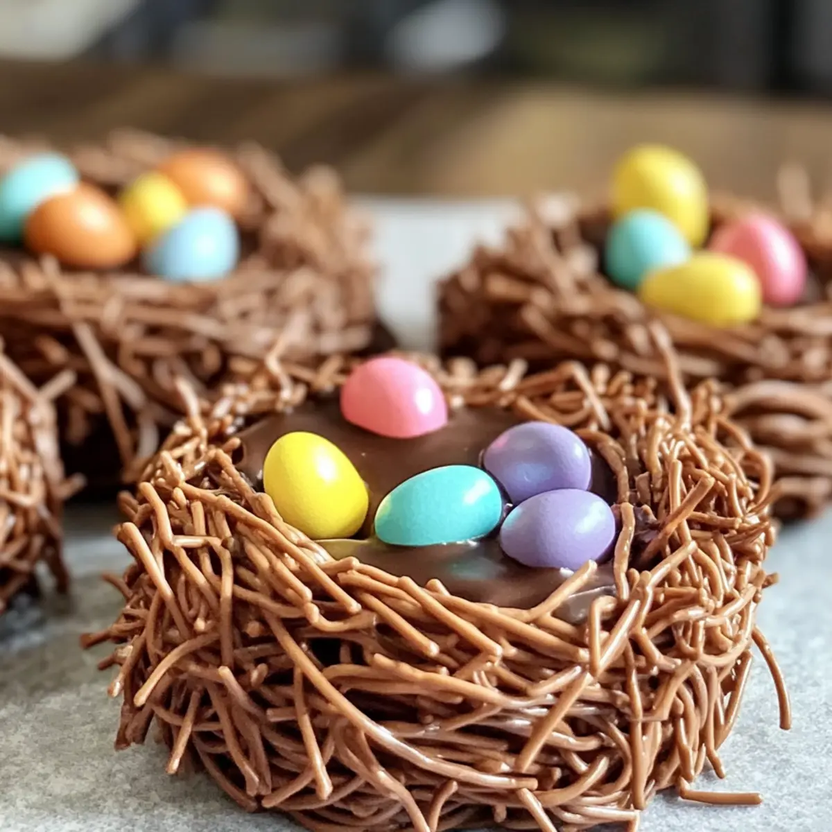 „Hast du schon einmal daran gedacht, wie ein kleines Stückchen Schokolade die Freude von Ostern einfangen kann?“ Bei mir zaubert der Gedanke an diese Schokoladen-Vogel-Nest-Kekse sofort ein Lächeln ins Gesicht. Diese kreativen Leckerbissen sind nicht nur kinderleicht zuzubereiten, sondern kommen auch ganz ohne Backen aus! Perfekt für alle, die in der hektischen Osterzeit eine süße Leckerei zaubern möchten. Mit ihrer knusprigen Textur und der verspielten Verzierung aus bunten Schokoladeneiern sind sie ein echter Hingucker auf jeder Festtafel. Und das Beste? Sie lassen sich wunderbar im Voraus zubereiten! Wer könnte da widerstehen? Lass uns diese schokoladige Hochzeit aus Geschmack und Spaß gemeinsam kreieren! Warum sind diese Kekse unwiderstehlich? Einfache Zubereitung: Die Schokoladen-Vogel-Nest-Kekse benötigen keine Backfähigkeiten und sind in kürzester Zeit fertig – ideal für die hektische Osterzeit. Verspielte Optik: Mit bunten Schokoladeneiern dekoriert, sind sie ein echter Blickfang auf jedem Tisch und sorgen für Freude bei Kindern und Erwachsenen. Köstlicher Geschmack: Die Kombination aus knackigen Chow Mein Nudeln und reichhaltiger Schokolade bietet eine aufregende Geschmackserfahrung. Vielseitig einsetzbar: Diese Kekse sind perfekt für Osterbrunch, als süße Überraschung oder einfach zum Naschen zwischendurch. Sie passen zu jeder Gelegenheit! Make-Ahead Vorteil: Bereite sie im Voraus zu und spare Zeit an festlichen Tagen. Einfach in einem luftdichten Behälter aufbewahren und genießen! Schokoladen-Vogel-Nest-Kekse Zutaten • Diese unwiderstehlichen Schokoladen-Vogel-Nest-Kekse sind einfach zuzubereiten und perfekt für die Osterzeit! Für die Schokolade: Schokoladenstückchen – Der Hauptbestandteil, der den Keksen reichhaltigen Geschmack verleiht; verwende hochwertige Schokolade für das beste Aroma. Kokosöl – Unterstützt das sanfte Schmelzen der Schokolade; kann durch Pflanzenöl ersetzt werden. Für die Nester: Chow Mein Nudeln – Sorgen für die knusprige Textur und die nestähnliche Form; keine Ersatzmöglichkeiten empfohlen, im asiatischen Bereich erhältlich. Geraspelter Kokos – Fügt zusätzliche Textur hinzu und verbessert den Geschmack; optional, kann weggelassen werden, wenn gewünscht. Für die Dekoration: Mini Schokoladeneier – Verspielte Dekoration, die Ostern repräsentiert; kann durch Butterscotchstückchen ersetzt werden, um einen süßeren Geschmack zu erzielen. Schritt-für-Schritt-Anleitung für Schokoladen-Vogel-Nest-Kekse Schritt 1: Schokolade schmelzen Gib die Schokoladenstückchen und das Kokosöl in eine mikrowellengeeignete Schüssel. Erwärme die Mischung in der Mikrowelle in Intervallen von 20 Sekunden, rühre zwischendurch um, bis sie vollständig geschmolzen und glatt ist. Achte darauf, die Schokolade nicht zu überhitzen, damit sie glänzend und cremig bleibt. Schritt 2: Zutaten mischen Füge die Chow Mein Nudeln und den geraspelten Kokos zur geschmolzenen Schokolade hinzu. Verrühre alles gründlich, sodass die Nudeln gleichmäßig mit der schokoladigen Mischung überzogen sind. Diese Mischung sorgt dafür, dass die Schokoladen-Vogel-Nest-Kekse herrlich knusprig werden und ihre Form behalten. Schritt 3: Nester formen Lege ein Backblech mit Backpapier aus, um die Nester zu formen. Nimm mit einem Löffel etwas von der Mischung und forme kleine Häufchen auf dem Backblech. Drücke mit dem Löffel leicht in die Mitte jedes Haufens, um die charakteristische Nestform zu kreieren. Achte darauf, dass die Nester gleichmäßig verteilt sind, damit sie beim Kühlen nicht zusammenkleben. Schritt 4: Eier hinzufügen Während die Schokoladenmischung noch weich ist, platziere vorsichtig drei Mini Schokoladeneier in jedes Nest. Drücke sie leicht hinein, sodass sie fest sitzen und nicht verrutschen. Dies verleiht den Schokoladen-Vogel-Nest-Keksen nicht nur eine verspielte Note, sondern sorgt auch für einen zusätzlichen Geschmackskick. Schritt 5: Kühlen Stelle das Backblech mit den Nests für 20 bis 30 Minuten in den Kühlschrank, damit die Schokolade fest wird. Die Nester sind bereit zum Servieren, wenn sie stabil sind. Damit die Schokoladen-Vogel-Nest-Kekse bestens zur Geltung kommen, lagere sie in einem luftdichten Behälter, bis sie serviert werden. Was passt zu Schokoladen-Vogel-Nest-Keksen? Diese verführerischen Kekse bringen nicht nur Freude ins Osterfest, sie eignen sich auch hervorragend für eine vollständige Mahlzeit. Frischer Obstsalat: Die süßen und saftigen Früchte bieten einen erfrischenden Kontrast zu den schokoladigen Keksen. Mit einem Hauch von Limette wird er zum perfekten Begleiter. Vanilleeis: Ein cremiges Eis ergänzt die knackige Textur der Kekse und sorgt für eine köstliche Kombination. Die Kühle des Eises harmoniert wunderbar mit der Schokolade. Zitronen-Limonade: Diese spritzige und erfrischende Limonade bringt das perfekte Maß an Säure hinzu, um die Süße der Kekse auszugleichen. Sie ist ideal für die warmen Frühlingstage. Mini-Cupcakes: Bunte, kleine Cupcakes sind nicht nur schön anzusehen, sondern bringen auch Abwechslung auf die Festtafel. Experimentiere mit verschiedenen Geschmäckern wie Schokolade oder Vanille. Käseplatte: Eine Auswahl an Käse, Nüssen und Trockenfrüchten bietet eine herzhafte und salzige Ergänzung zu den süßen Keksen. Dies sorgt für ein aufregendes Geschmackserlebnis. Molkerei Getränke: Milch oder Schokoladenmilch sind perfekte Getränke, um die Kekse zu genießen. Die Kombination ist klassisch und wird Kinder und Erwachsene gleichermaßen erfreuen. Kaffee oder Espresso: Ein aromatischer Kaffee bietet einen intensiven Kontrast zu den süßen Keksen und ist besonders für die Erwachsenen prädestiniert. Die Bitterkeit des Kaffees wird die Schokoladen-Vogel-Nest-Kekse wunderbar ergänzen. Aufbewahrungstipps für Schokoladen-Vogel-Nest-Kekse Zimmertemperatur: Bewahre die Schokoladen-Vogel-Nest-Kekse in einem luftdichten Behälter bei Raumtemperatur für bis z
