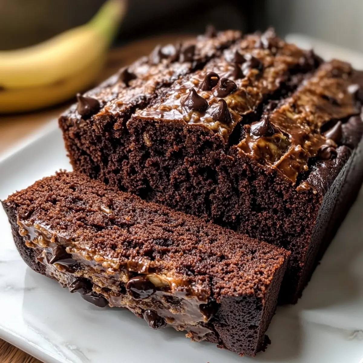 Die Morgenstimmung war verzaubert, als ich den Duft von frisch gebackenem Schokoladenbananenbrot durch meine Küche ziehen ließ. Dieses Rezept für Schokoladenbananenbrot ist nicht nur eine Geschmacksexplosion, sondern es vereint auch die natürliche Süße von reifen Bananen mit köstlichem Schokoladengeschmack – perfekt für ein gesundes Frühstück oder als leckerer Nachtisch. Der Clou? Es ist ganz einfach zuzubereiten und eignet sich für verschiedene Ernährungsweisen, von vegan bis glutenfrei. Mit wenigen Zutaten zaubert man ein saftiges Stückchen Glück, das mit Ballaststoffen punkten kann und dennoch zu einem wohltuenden Genuss wird. Neugierig, wie auch du dieses Rezept für dich entdecken kannst? Lass uns in die Details eintauchen! Warum wird dieses Rezept dich begeistern? Einfachheit: Die Zubereitung ist kinderleicht und erfordert nur grundlegende Backkenntnisse. Vielfältigkeit: Egal, ob du eine vegane oder glutenfreie Variante suchst, dieses Rezept lässt sich mühelos anpassen. Reichhaltiger Geschmack: Die Kombination aus reifen Bananen und hochwertigem Kakaopulver sorgt für einen intensiven, schokoladigen Genuss. Gesunde Zutaten: Mit wenig Zucker und hohem Ballaststoffgehalt ist es eine großartige Alternative zu herkömmlichen Desserts. Perfekte Konsistenz: Das Brot bleibt saftig und weich, ideal zum Verwöhnen deiner Familie oder Freunde. Schnell gemachte Freude: In nur 1 Stunde kannst du dein köstliches Schokoladenbananenbrot genießen. Wenn du noch mehr Inspiration brauchst, schau dir auch unsere Variantenideen an! Schokoladenbananenbrot Zutaten • Für die perfekte Textur: Mashed Banana – Sorgt für natürliche Süße und Feuchtigkeit im Brot. Du kannst ungesüßtes Apfelmus als kalorienärmere Alternative verwenden. Pure Vanilla Extract – Fügt Tiefe und Aroma hinzu. Optiere für Mandelextrakt für einen anderen Geschmack. White Vinegar – Reagiert mit Natron für die nötige Lockerheit. Kann durch Apfelessig oder Zitronensaft ersetzt werden. Öl oder Milch deiner Wahl – Trägt zur Saftigkeit bei. Ersetze es durch zusätzliches püriertes Gemüse oder ungesüßten Joghurt für eine ölfreie Variante. Maple Syrup oder Honig – Dient als Süßungsmittel. Agavendicksaft ist eine vegane Alternative. Mehl – Gibt Struktur. Nutze Allzweckmehl, Dinkelmehl, Hafermehl oder glutenfreie Mischungen. Vermeide Kokosmehl, da es zu viel Feuchtigkeit aufnimmt. Unsweetened Cocoa Powder – Sorgt für den schokoladigen Geschmack. Verwende Dutch Cocoa Powder für eine intensivere Note, wenn gewünscht. Baking Powder & Baking Soda – Beide sind Backtriebmittel. Stelle sicher, dass sie frisch sind für die besten Ergebnisse. Salt – Betont den Gesamtgeschmack. Verwende koscheres oder Meersalz für eine weniger verarbeitete Option. Mini Chocolate Chips (optional) – Fügen eine extra schokoladige Güte hinzu. Lasse sie weg für eine zuckerärmere Variante. Entdecke mit diesen Zutaten das köstliche Rezept für Schokoladenbananenbrot, das nicht nur lecker, sondern auch nährstoffreich ist! Schritt-für-Schritt-Anleitung für Schokoladenbananenbrot Step 1: Ofen vorheizen Heize den Ofen auf 175°C (350°F) vor. Bereite eine Kastenform (23 x 13 cm) vor, indem du sie mit Butter einfettest oder mit Backpapier auslegst. Diese Schritte sind wichtig, um ein gleichmäßiges Backen des Schokoladenbananenbrots zu gewährleisten. Step 2: Nasse Zutaten mischen In einer großen Schüssel püriere die reifen Bananen, bis sie eine glatte Konsistenz erreichen. Füge dann den Ahornsirup (oder Honig), das Vanilleextrakt, das Öl (oder die Milch) sowie den Essig hinzu. Verquirle alles gut miteinander, bis sich die Zutaten vollständig verbunden haben. Step 3: Trockene Zutaten kombinieren In einer separaten Schüssel mische das Mehl, den ungesüßten Kakao, das Backpulver, das Natron und das Salz. Stelle sicher, dass alle trockenen Zutaten gut vermischt sind, damit das Schokoladenbananenbrot gleichmäßig aufgeht und die Aromen gut verteilt sind. Step 4: Mischungen kombinieren Gib die trockenen Zutaten nach und nach in die Schüssel mit den nassen Zutaten. Rühre vorsichtig um, bis alles gerade so vermischt ist. Achte darauf, nicht zu lange zu rühren, um das Schokoladenbananenbrot schön fluffig zu halten. Step 5: Teig in die Form füllen Verteile den Teig gleichmäßig in der vorbereiteten Kastenform. Wenn du möchtest, kannst du die Oberfläche mit zusätzlichen Schokoladenstückchen bestreuen, um dem Schokoladenbananenbrot eine extra schokoladige Note zu verleihen. Step 6: Backen Schiebe die Kastenform in die Mitte des vorgeheizten Ofens und backe das Schokoladenbananenbrot für 45 Minuten. Nach dem Backen lasse das Brot für 10 weitere Minuten im geschlossenen Ofen ruhen, um die Feuchtigkeit zu bewahren. Step 7: Garprobe Überprüfe das Schokoladenbananenbrot mit einem Zahnstocher. Wenn er größtenteils sauber herauskommt, ist das Brot fertig. Sollte der Zahnstocher noch feuchte Teigreste haben, backe das Brot weitere 5–10 Minuten, bis es komplett durchgebacken ist. Step 8: Abkühlen lassen Nehme das Schokoladenbananenbrot aus dem Ofen und lasse es in der Form 10 Minuten abkühlen. Danach vorsichtig aus der Form stürzen und auf einem Kuchengitter vollständig abkühlen lassen. Für ein besseres Aroma lasse es über Nacht ruhen, bevor du es anschneidest. Was passt gut zu Schokoladenbananenbrot? Genieße dieses saftige, schokoladige Brot mit köstlichen Beilagen für ein unvergessliches Geschmackserlebnis. Frische Beeren: Der fruchtige Geschmack von Himbeeren oder Erdbeeren bringt eine lebendige Frische und ergänzt die Schokolade perfekt. Joghurt mit Honig: Eine cremige, süße Note ist ideal, um das reichhaltige Aroma des Schokoladenbananenbrots auszugleichen. Nüsse: Geröstete Walnüsse oder Mandeln sorgen für einen knusprigen Biss und erhöhen den Nährstoffgehalt. Almond Butter: Der nussige Geschmack von Mandelbutter passt hervorragend zu dem süßen Brot und macht es noch sätti