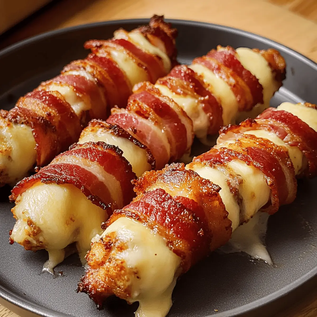 Die krosse Verführung, die sich auf deiner Zunge entfaltet, ist der Grund, warum ich nie genug von diesen speckumwickelten Mozzarella-Sticks bekommen kann. Wenn du nach einem Rezept suchst, das nicht nur die Gaumenfreuden deiner Gäste begeistert, sondern auch blitzschnell zubereitet ist, dann bist du hier genau richtig. Die Kombination aus dem herzhaften, knusprigen Speck und dem cremigen, schmelzenden Mozzarella macht diese Köstlichkeiten zu einem absoluten Hit – ideal für Partys, Filmabende oder einfach als beeindruckender Snack für zwischendurch. Und das Beste? Sie sind keto-freundlich und enthalten kaum Kohlenhydrate. Hast du schon überlegt, welche Dips du dazu servieren könntest? Warum sind diese Mozzarella-Sticks ein Hit? Knusprige Kombination: Die speckumwickelten Mozzarella-Sticks vereinen die krosse Textur des Specks mit dem cremigen, geschmolzenen Inneren des Käses – ein wahrer Gaumenschmaus! Einfache Zubereitung: In nur 30 bis 45 Minuten bereit, ist dieses Rezept perfekt für spontane Snacks oder beeindruckende Partys. Keto-freundlich: Sie passen hervorragend in eine niedrig-kohlenhydratische Ernährung und sind ideal für alle, die eine köstliche, aber gesunde Option suchen. Vielseitig in Geschmack: Experimentiere mit verschiedenen Dips wie Knoblauch-Aioli oder scharfem Senf, um den Geschmack zu variieren. Hochwertige Zutaten: Die Verwendung von frischen und qualitativ hochwertigen Zutaten garantiert ein unvergessliches Geschmackserlebnis. Perfekte Partybeilage: Egal ob als Vorspeise oder Snack – sie ziehen garantiert alle Blicke auf sich und werden schnell zum Highlight deiner nächsten Feier. Speckumwickelte Mozzarella-Sticks Zutaten Für die Sticks • Mozzarella Sticks – Verwende unbreaded Sticks für die beste cremige Textur. • Speck – Dünn geschnittenen Speck sorgt für eine knusprige Außenhaut und passt perfekt zur geschmolzenen Füllung. Für das Frittieren • Öl (z.B. Raps- oder Avocadoöl) – Wähle Öle mit hohem Rauchpunkt für ein optimales Frittierergebnis. Zum Dippen (optional) • Dips wie Knoblauch-Aioli oder scharfer Senf – Diese bringen zusätzliche Geschmacksnuancen und heben die speckumwickelten Mozzarella-Sticks auf ein neues Level. Für die Würze (optional) • Gewürze wie Knoblauchpulver oder Paprika – Füge diese dem Speck hinzu, um den Geschmack noch mehr zu intensivieren. Step-by-Step Instructions for Speckumwickelte Mozzarella-Sticks Step 1: Käse Einfrieren Lege die Mozzarella-Sticks für mindestens 30 Minuten in den Gefrierschrank. Das Einfrieren sorgt dafür, dass der Käse während des Frittierens nicht zu schnell schmilzt und seine Form behält. Achte darauf, dass die Sticks gut verteilt sind, damit sie nicht aneinander kleben. Step 2: Speck Vorbereiten Nimm die gefrorenen Mozzarella-Sticks und wickel jeden von ihnen fest mit einer Scheibe dünn geschnittenem Speck ein. Achte darauf, dass kein Käse sichtbar ist, um ein Auslaufen zu verhindern. Du kannst die Enden mit einem Zahnstochersichern, falls nötig, um die Speckschicht an Ort und Stelle zu halten. Step 3: Öl Erhitzen Gib eine ausreichende Menge Raps- oder Avocadoöl in eine große Pfanne und erhitze es bei mittlerer Hitze. Das Öl sollte heiß genug sein, um die Sticks beim Eintauchen sofort brutzeln zu lassen; etwa 180°C sind ideal. Verwende ein Kü thermometer, um die Temperatur im Auge zu behalten. Step 4: Sticks Frittieren Lege die speckumwickelten Mozzarella-Sticks vorsichtig in die heiße Pfanne. Achte darauf, dass sie genügend Platz zwischen sich haben, um gleichmäßig zu garen. Frittiere die Sticks für etwa 8-10 Minuten, wende sie regelmäßig, bis sie rundherum goldbraun und knusprig sind. Step 5: Abtropfen & Servieren Nehme die gebratenen Mozzarella-Sticks aus der Pfanne und lasse sie für einige Minuten auf Küchenpapier abtropfen, um überschüssiges Öl zu entfernen. Serviere die Sticks warm, entweder pur oder mit leckeren Dips wie Knoblauch-Aioli oder scharfem Senf, um das Geschmackserlebnis zu verfeinern. Aufbewahrung und Einfrieren von Speckumwickelten Mozzarella-Sticks Kühlschrank: Bewahre übrig gebliebene, gekochte speckumwickelte Mozzarella-Sticks in einem luftdichten Behälter im Kühlschrank für bis zu 2 Tage auf. Sie bleiben so frisch und sind schnell wieder aufzuwärmen. Gefrierschrank: Die ungekochten Sticks können problemlos eingefroren werden. Lege sie auf ein Backblech, bis sie fest sind, und friere sie dann in einem luftdichten Behälter für bis zu 3 Monate ein. Wiedererwärmen: Zum Servieren kannst du die gefrorenen Sticks direkt im heißen Öl frittieren oder bei 180°C im Ofen backen, bis sie goldbraun sind. So bleibt die knusprige Textur erhalten. Vorbereitung: Du kannst Sticks auch im Voraus zubereiten und ganz einfach aufbewahren, um sie frisch zu frittieren, wenn du Lust auf einen köstlichen Snack auf Basis der speckumwickelten Mozzarella-Sticks hast. Perfekte Vorbereitung für Speckumwickelte Mozzarella-Sticks Mit diesen speckumwickelten Mozzarella-Sticks ist die Vorbereitung ein Kinderspiel! Du kannst die ungebackenen Sticks bereits bis zu 24 Stunden im Voraus zubereiten, indem du die Mozzarella-Sticks einfrierst und sie dann mit Speck umwickelst. Lagere die vorbereiteten Sticks in einem luftdichten Behälter im Gefrierschrank, um ihre Qualität zu bewahren. Wenn du bereit bist zu genießen, erhitze das Öl und frittiere die gefrorenen Sticks einfach direkt aus dem Gefrierfach für etwa 8-10 Minuten, bis sie goldbraun sind. So sparst du Zeit und kannst leckere Snacks in Rekordzeit servieren, die genauso köstlich sind wie frisch zubereitet! Was passt zu Speckumwickelten Mozzarella-Sticks? Die Kombination aus knusprigem Speck und geschmolzenem Mozzarella entfaltet ein Geschmackserlebnis, das du mit köstlichen Begleitgerichten perfekt abrunden kannst. Frische Salate: Ein bunter gemischter Salat mit einem leichten Dressing bringt frische Aromen ins Spiel und balanciert die Fettigkeit der Sticks aus. Knoblauch