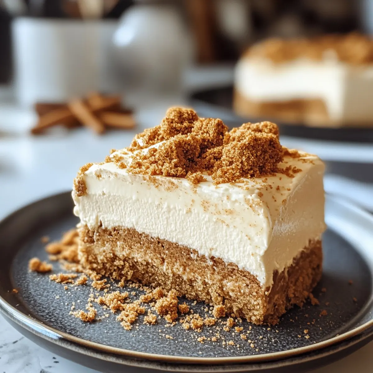 Kaum etwas weckt die Vorfreude auf die festliche Jahreszeit so wie der verführerische Duft von frisch gebackenem Gebäck. Und was könnte besser zu einem gemütlichen Winterabend passen als ein köstlicher Spekulatius Kuchen ohne Backen? Diese himmlische Kreation vereint die beliebten Aromen von Spekulatius mit einer cremigen Zimt-Frischkäse-Füllung – ein echtes Highlight unter den saisonalen Desserts. Die Zubereitung ist nicht nur schnell und unkompliziert, sondern man kann diesen festlichen Schmaus auch schon im Voraus zubereiten. Mit einem knackigen Spekulatius-Boden und einer samtigen, gewürzten Creme wird jede Feier zu einem Genuss. Neugierig, wie einfach es ist, dieses köstliche Dessert zu zaubern? Lass uns gleich loslegen! Warum ist dieser Spekulatius Kuchen einzigartig? Schnelle Zubereitung: Mit minimalem Aufwand zauberst du in kürzester Zeit einen festlichen Kuchen – perfekt für spontane Einladungen! Creme und Crunch: Der knackige Spekulatius-Boden harmoniert wunderbar mit der cremigen Zimt-Füllung, die das Dessert zu einem geschmacklichen Erlebnis macht. Flexibel und Kreativ: Du kannst die Füllung ganz nach deinem Geschmack anpassen, z.B. mit Nüssen oder einer anderen Keksbasis. Ideal für Festtage: Dieser Kuchen bringt die festliche Stimmung direkt auf den Tisch und lässt sich hervorragend mit einem warmen Glühwein kombinieren. Vorbereitung: Perfekt zum Vorbereiten – einfach im Kühlschrank lagern und den ersten Bissen gleich genießen! Spekulatius Kuchen ohne Backen Zutaten • Dieser Kuchen ist nicht nur köstlich, sondern erfordert auch keine komplizierte Technik – perfekt für die festliche Saison! Für den Boden Spekulatius-Kekse – Sie liefern die perfekte, crunchy Basis; traditionelle Spekulatius sind ideal, aber Lebkuchen können auch verwendet werden. Butter – Bindet die Keksbrösel zusammen und sorgt für zusätzlichen Reichtum; geschmolzene Margarine ist eine gute pflanzliche Alternative. Für die Füllung Frischkäse – Verleiht der Füllung Cremigkeit; ricotta kann für eine leichtere Variante verwendet werden. Schlagsahne – Macht die Füllung luftig und leicht; für eine vegane Version kann auch pflanzliche Sahne verwendet werden. Puderzucker – Süßt die Creme und sorgt für Stabilität; die Menge kann je nach Geschmack angepasst werden. Zimt – Bringt die klassische Weihnachtswärme ins Spiel; Muskatnuss oder Ingwer sind ebenfalls mögliche Alternativen. Vanilleextrakt – Verleiht der Füllung einen zusätzlichen Geschmacksakzent; reiner Extrakt sorgt für das beste Ergebnis. Genieße die Zubereitung dieses köstlichen Spekulatius Kuchens ohne Backen und lass die festliche Stimmung erstrahlen! Schritt-für-Schritt-Anleitung für Spekulatius Kuchen ohne Backen Step 1: Boden vorbereiten Zerbrich die Spekulatius-Kekse in feine Brösel, indem du sie in einen Gefrierbeutel gibst und mit einem Nudelholz darauf klopfst. Mische die Keksbrösel mit der geschmolzenen Butter in einer Schüssel, bis alles gut vermengt ist. Diese Mischung sollte krümelig, aber gut zusammenhaltend sein. Step 2: Boden formen Fülle die Keks-Butter-Mischung in eine Springform und drücke sie gleichmäßig mit einem Löffel oder einem Glas fest auf den Boden, um eine feste Kruste zu formen. Achte darauf, dass der Boden gleichmäßig fest ist, damit er nicht auseinanderfällt. Stelle die Form für mindestens 30 Minuten in den Kühlschrank, damit der Boden aushärten kann. Step 3: Füllung zubereiten In einer großen Rührschüssel den Frischkäse mit einem Handmixer auf mittlerer Stufe glatt rühren. Füge nach und nach die Schlagsahne und den Puderzucker hinzu, während du weiter mixt, bis die Mischung luftig und cremig ist. Ein Hinweis auf den richtigen Zeitpunkt ist, wenn die Mischung leichte Spitzen bildet – das ist ideal für die Füllung des Spekulatius Kuchens ohne Backen. Step 4: Gewürze einarbeiten Wenn die Füllung gut vermischt und fluffig ist, füge vorsichtig den Zimt und den Vanilleextrakt hinzu. Rühre alles noch einmal kurz um, bis die Gewürze gleichmäßig verteilt sind. Achte darauf, die Luftigkeit der Füllung nicht zu verlieren, während du dies tust. Step 5: Kuchen zusammensetzen Nimm die abgekühlte Springform aus dem Kühlschrank und verteile die cremige Füllung gleichmäßig über den festgewordenen Keksboden. Glätte die Oberfläche mit einem Spatel oder einem Löffel, um eine schöne Präsentation zu erzielen. Step 6: Kuchen kühlen Decke die Springform mit Frischhaltefolie ab und stelle sie für mindestens 4 Stunden oder über Nacht in den Kühlschrank. Diese Kühle ermöglicht es den Aromen zu verschmelzen und die Füllung fest zu werden, was den Genuss des Spekulatius Kuchens ohne Backen verstärkt. Step 7: Servieren Nach der Kühlzeit nimmst du den Kuchen vorsichtig aus der Form, indem du die Seiten der Springform lösen. Schneide den Spekulatius Kuchen ohne Backen in gleichmäßige Stücke und serviere ihn kalt. Er passt hervorragend zu einem warmen Getränk und sorgt für ein festliches Dessert! Spekulatius Kuchen ohne Backen Variationen Entdecke, wie aufregend es ist, diesen köstlichen Kuchen nach deinem Geschmack zu verfeinern! Nussige Note: Füge grob gehackte Mandeln oder Walnüsse zur Füllung hinzu für extra Crunch und nussigen Geschmack. Schokoladige Überraschung: Integriere Schokoladenstückchen in die Füllung, um einen dekadenten Schoko-Kick hinzuzufügen. Schokolade und Spekulatius sind eine himmlische Kombination! Vegane Variante: Ersetze den Frischkäse durch einen pflanzlichen Frischkäse und die Sahne durch eine vegane Schlagsahne für ein tierfreundliches Dessert. Fruchtige Frische: Vermische pürierte Beeren oder eine Schicht aus frischen Früchten zwischen dem Boden und der Füllung für einen frischen Kontrast. Zusätzliche Gewürze: Spiele mit verschiedenen Gewürzen wie Ingwer oder Muskatnuss, um dem Kuchen eine besondere, aromatische Note zu verleihen. Karamell-Topping: Überziehe den Kuchen vor dem Serv