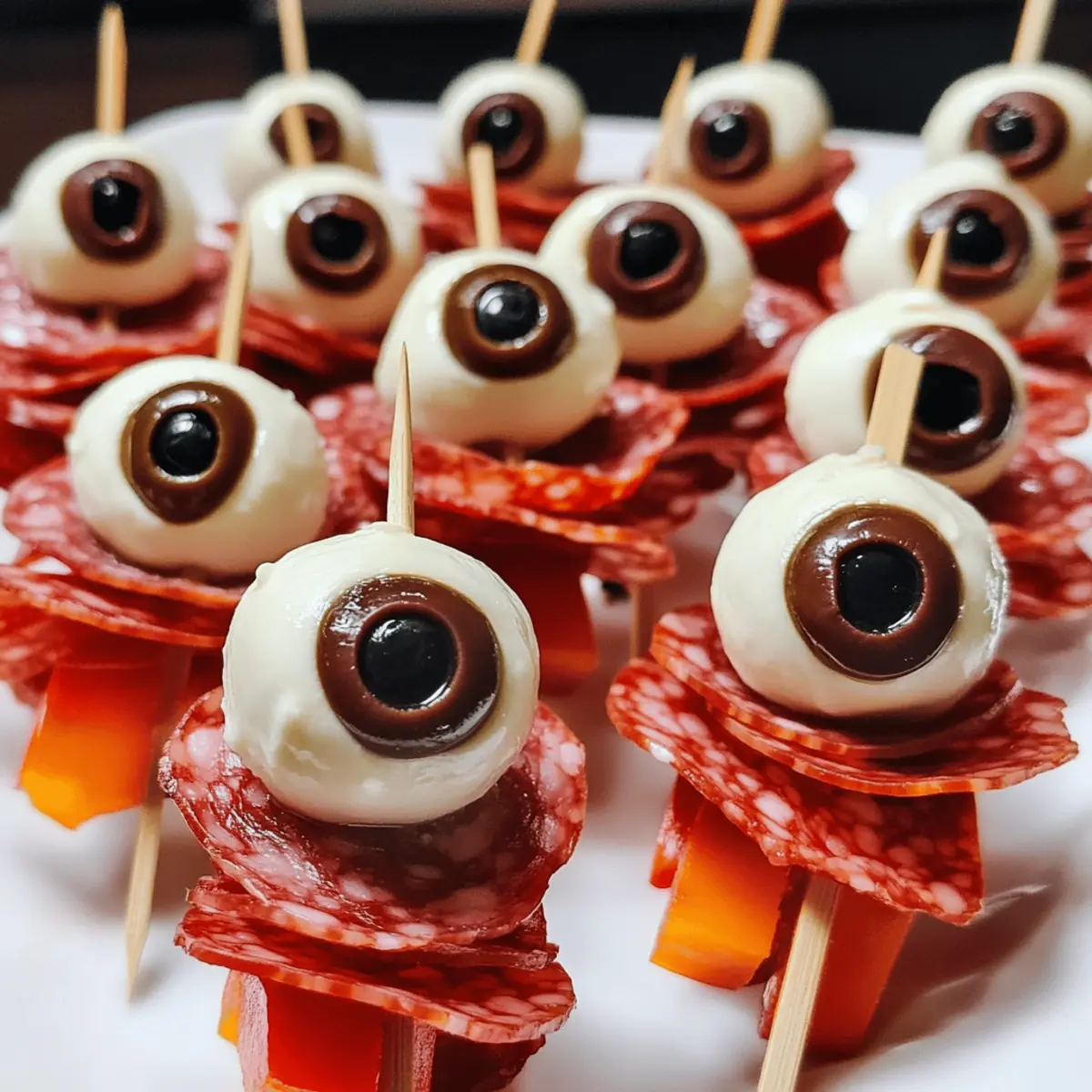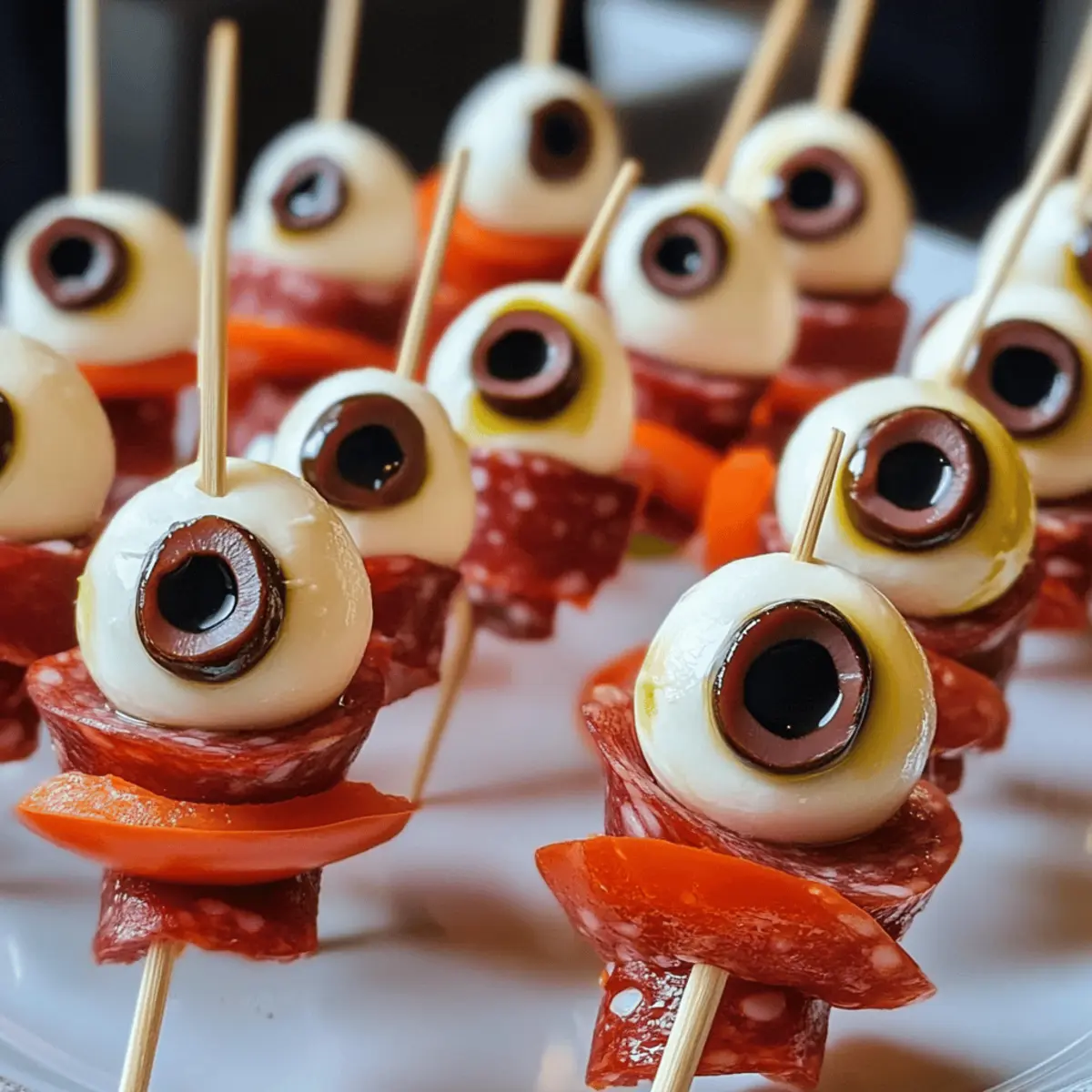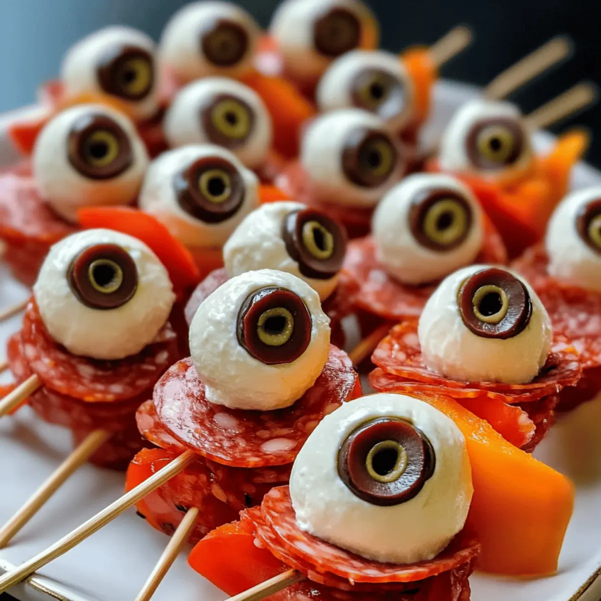Es ist kaum zu fassen, dass das diesjährige Halloween schon vor der Tür steht! Wenn ihr nach einer schnellen und unterhaltsamen Idee sucht, um eure Gäste zu beeindrucken, dann sind meine Spießigen Salami-Augen genau das Richtige für euch. Diese kleinen, skurrilen Häppchen bestehen aus cremigen Mozzarella-Kugeln, würziger Salami und salzigen Oliven – eine Fusion, die nicht nur zum Schmunzeln anregt, sondern auch blitzschnell zubereitet ist. Und das Beste: Sie sind perfekt für Kinder und Erwachsene gleichermaßen, sodass sie auf jeder Halloween-Party im Nu verschwinden werden. Seid ihr bereit, eure eigenen kleinen Augen-Schocker zu kreieren und euren Gästen ein schaurig-festes Erlebnis zu bieten? Warum sind Spießige Salami-Augen besonders? Kreativität auf dem Teller: Diese kleinen Kunstwerke sind nicht nur schmackhaft, sondern auch ein echter Hingucker auf jeder Halloween-Party. Schnelle Zubereitung: In kürzester Zeit kreiert ihr ein unterhaltsames Snack-Erlebnis, das Kinder und Erwachsene begeistert. Vielseitige Zutaten: Ihr könnt die Zutaten problemlos variieren, beispielsweise mit Spiesige Salami Augen. Köstlicher Geschmack: Die Kombination aus cremigem Mozzarella, würziger Salami und herzhaften Oliven sorgt für einen reichhaltigen und befriedigenden Biss. Perfekt zum Teilen: Ideal für Buffets oder als Party-Snack – diese Häppchen werden garantiert schnell vergriffen! Spießige Salami-Augen Zutaten Hier sind die Zutaten, um eure Spießigen Salami-Augen zubereiten zu können: Für die Spieße Mozzarella-Kugeln – Die cremige Basis, perfekt für die “Augen”. Ihr könnt auch Mozzarella-Perlen verwenden, wenn ihr eine kleinere Variante bevorzugt. Rote Paprika – Verleiht dem Gericht eine lebendige Farbe, die an Blut erinnert. Alternativ könnt ihr getrocknete Chili verwenden, um einen scharfen Kick hinzuzufügen. Kalamata-Oliven – Sie bilden die “Pupillen” der Augen, bieten einen salzigen Kontrast. Eine gute Alternative sind grüne Oliven oder kleine Kapern für eine andere Optik. Salami-Stäbchen – Fügt würzigen Geschmack hinzu und dient zum Zusammenbauen der Spieße. Vorzugsweise bereits in Scheiben geschnitten für eine einfachere Handhabung. Diese Zutaten machen eure Spießigen Salami-Augen zu einem unvergesslichen und schaurig-schönen Genuss, der auf jeder Halloween-Feier für Aufsehen sorgen wird! Schritt-für-Schritt-Anleitung für Spießige Salami-Augen Step 1: Mozzarella vorbereiten Nehmt die Mozzarella-Kugeln und schneidet mit einem kleinen Messer vorsichtig kleine Einkerbungen in die Oberfläche, um die Form von “Augen” zu kreieren. Lasst sie anschließend für etwa 5 Minuten bei Raumtemperatur stehen, damit sie die Aromen besser aufnehmen können und dieKonsistenz angenehm cremig bleibt. Step 2: Augen füllen Hackt die Kalamata-Oliven fein und füllt die Einkerbungen in den Mozzarella-Kugeln mit den Olivenstückchen. Diese kleinen “Pupillen” verleihen euren Spießigen Salami-Augen einen schaurigen Look. Nehmt euch dafür etwa 3–5 Minuten Zeit, um eine gleichmäßige Füllung zu gewährleisten. Step 3: Salami schneiden Während die Mozzarella-Augen ruhen, schneidet die Salami in Stücke von etwa 2 cm Länge und 0,5 cm Dicke. Diese Stücke bilden die Basis eurer Spieße und sorgen für einen würzigen Geschmack. Dieser Schritt dauert nur ungefähr 5 Minuten. Step 4: Paprika schneiden Nehmt die rote Paprika und schneidet sie in kleine Keile, etwa 2 cm groß. Diese Keile dienen als dekorative Elemente zwischen den Spießigen Salami-Augen und sorgen für einen lebhaften Farbtupfer. Dieser Schritt dauert ungefähr 5 Minuten. Step 5: Spieße zusammenbauen Steckt auf jeden Spieß zunächst ein Stück rote Paprika, gefolgt von einem Stück Salami, einer Mozzarella-Kugel mit Olive und einem weiteren Stück Salami. Stabilisiert das Ganze mit einem weiteren Stück Mozzarella am Ende des Spießes. Nehmt euch dafür etwa 10–15 Minuten Zeit, um eine schöne Anordnung zu kreieren. Step 6: Kühlen und servieren Legt die fertig assemblierten Spieße auf ein Halloween-Tablett und lasst sie für mindestens 30 Minuten im Kühlschrank kühlen. Dies intensiviert den schaurigen Effekt der Spießigen Salami-Augen. Serviert sie schließlich kühl für maximalen Genuss und einen gruseligen Blickfang auf eurem Buffet! Aufbewahrung und Einfrieren von Spießigen Salami-Augen Raumtemperatur:: Spießige Salami-Augen sollten nicht länger als 1–2 Stunden bei Raumtemperatur stehen, um die Frische und Sicherheit der Zutaten zu gewährleisten. Kühlschrank:: Bewahrt die Spieße in einem luftdichten Behälter auf, um sie bis zu 3 Tage frisch zu halten. Kühlen ist entscheidend, damit die Zutaten nicht austrocknen. Einfrieren:: Diese Spieße können nicht gut eingefroren werden, da die Mozzarella-Kugeln ihre Konsistenz verlieren. Es wird empfohlen, sie frisch zu genießen. Wiederaufwärmen:: Um die Spieße zu servieren, lasst sie vor dem Genuss für etwa 10 Minuten bei Raumtemperatur stehen. Dies härtet den perfekten Geschmack der Spießigen Salami-Augen hervor. Tipps für die besten Spießigen Salami-Augen Optimale Zutatenwahl: Achte darauf, frische Mozzarella-Kugeln zu wählen; sie geben den Augen die beste Textur und Geschmack. Scharfe Akzente: Wenn du einen zusätzlichen Kick möchtest, füge frische Chili-Scheiben zwischen die Zutaten ein, um deine Spießigen Salami-Augen aufzupeppen. Ästhetische Anordnung: Variiere die Anordnung der Zutaten auf dem Spieß, um einen spannenderen und attraktiveren Look zu kreieren. Vorbereitung: Bereite die Spieße einige Stunden im Voraus zu und lagere sie im Kühlschrank. So folgen sie einer optimalen Kühlung für den besten Geschmack. Abwechslung möglich: Experimentiere mit verschiedenen Käsesorten oder Olivenarten, um deinen Spießigen Salami-Augen eine persönliche Note zu verleihen. Was passt zu Spießigen Salami-Augen? Diese schaurigen Snacks sind der perfekte Anlass, um eine fröhliche und einladende Festtafel zu 