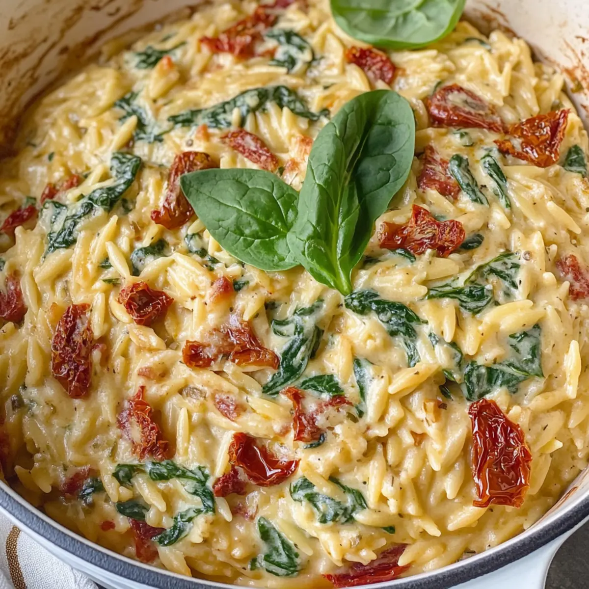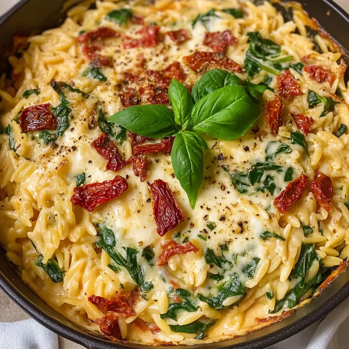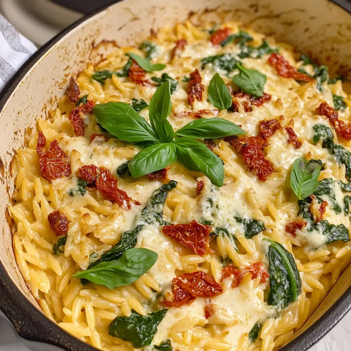Wenn der Alltag euch mal wieder stresse und ihr nach einem köstlichen und unkomplizierten Abendessen sucht, dann ist dieser Spinat getrocknete Tomate Orzo Auflauf genau das Richtige für euch! In nur einem einzigen Topf vereinen sich cremiger Frischkäse mit Kräutern, saftige sonnengetrocknete Tomaten und frischer Spinat zu einem herzhaften Gericht, das nicht nur den Gaumen erfreut, sondern auch das Muttergeräusch der Küche minimiert. Die Zubereitung ist so unkompliziert, dass ihr mehr Zeit für die schönen Dinge im Leben habt – entspannen und genießen! Außerdem ist dieses Rezept perfekt für fleischfreie Tage und liefert eine geballte Portion an Geschmack und Nährstoffen. Bereit, diese köstliche Kombination auszuprobieren und eure Liebsten zu begeistern? Lasst uns loslegen! Warum ist dieser Auflauf so besonders? Einfachheit: In nur einem Topf zubereitet, spart dieser Spinat getrocknete Tomate Orzo Auflauf nicht nur Zeit, sondern auch Mühe beim Abwasch. Reichhaltiger Geschmack: Die Kombination aus cremigem Frischkäse und herzhaften, sonnengetrockneten Tomaten sorgt für ein Geschmackserlebnis, das jeden begeistert. Vielfalt: Ihr könnt das Rezept nach euren Wünschen abwandeln, indem ihr Gemüse oder Proteinquellen hinzufügt, um neue Aromen zu entdecken. Gesundheit: Mit frischem Spinat und nahrhaftem Orzo liefert dieses Gericht wichtige Nährstoffe, die euch rundum gut fühlen lassen. Familienfreundlich: Perfekt für ein schnelles Abendessen, das selbst die wählerischsten Esser überzeugt. Wenn ihr noch weitere einfache Rezepte sucht, schaut euch unseren Schnellen Kräuter-Risotto oder Leckere Gemüse-Pasta an! Zutaten für den Spinat getrocknete Tomate Orzo Auflauf Für die Füllung Frischkäse mit Kräutern – sorgt für Cremigkeit und Geschmack; ihr könnt alternativ Ziegenkäse, Feta oder Boursin verwenden. Rohes Orzo – dient als Hauptkohlenhydrat und nimmt die Aromen auf; kann durch jede kleine Pasta oder Arborio-Reis ersetzt werden für eine risottartige Konsistenz. Sonnengetrocknete Tomaten – bringen eine süßliche, würzige Note; verwendet am besten ein Glas in Öl für optimalen Geschmack. Öl von den sonnengetrockneten Tomaten – fügt Reichhaltigkeit hinzu und verbessert den Geschmack. Gemüsebrühe – sorgt für Feuchtigkeit und Tiefe; kann für eine nicht-vegetarische Variante durch Hühnerbrühe ersetzt werden. Knoblauchpulver/frischer Knoblauch – für ein aromatisches Aroma; frische Zehen ergeben einen intensiveren Geschmack. Getrockneter Basilikum und Oregano – bringen kräutrige Noten; frische Kräuter können ebenfalls verwendet werden. Salz und Pfeffer – essentiell zum Würzen; nach Belieben anpassen. Geriebener Parmesan – sorgt für Umami und Cremigkeit; Alternativen sind Asiago oder Pecorino Romano. Spinat – bietet Frische und Nährstoffe; tiefgekühlter Spinat kann verwendet werden, sollte dann aufgetaut und abgetropft werden. Schritt-für-Schritt-Anleitung für den Spinat getrocknete Tomate Orzo Auflauf Step 1: Ofen vorheizen Heizt den Ofen auf 220 °C (425 °F) vor. So sorgt ihr dafür, dass euer Spinat getrocknete Tomate Orzo Auflauf gleichmäßig und perfekt gegart wird. Während der Ofen vorheizt, bereitete die backofenfeste Auflaufform vor, in der ihr die Zutaten vermengen werdet. Step 2: Frischkäse platzieren Gebt den Frischkäse mit Kräutern in die Mitte der Auflaufform. Dies wird das cremige Element eures Auflaufs und sorgt für Geschmack und Konsistenz. Umgebt den Frischkäse mit dem rohen Orzo, den sonnengetrockneten Tomaten sowie etwas von dem Öl und den Gewürzen. Step 3: Brühe hinzfügen Gießt die Gemüsebrühe über die Mischung in der Auflaufform. Die Brühe sorgt dafür, dass das Orzo während des Backens die Aromen aufsaugt und schön gar wird. Mischt alles leicht mit einem Löffel, damit sich die Zutaten gut verteilen, und stellt sicher, dass der Frischkäse nicht zerdrückt wird. Step 4: Backen Deckt die Auflaufform mit Alufolie ab und backt sie im vorgeheizten Ofen für 30 bis 40 Minuten. In der Mitte der Backzeit kurz umrühren, damit alle Zutaten gleichmäßig garen. Der Auflauf ist fertig, wenn das Orzo fast gekocht und die Flüssigkeit größtenteils aufgenommen ist. Step 5: Spinat und Parmesan hinzufügen Nehmt die Auflaufform aus dem Ofen und rührt den geriebenen Parmesan sowie den frischen Spinat unter die Mischung. Der Spinat wird schnell welken und eine herrliche Frische hinzufügen. Deckt die Form wieder ab und stellt sie für weitere 5 bis 10 Minuten in den Ofen. Step 6: Abschmecken und servieren Nachdem der Spinat getrocknete Tomate Orzo Auflauf aus dem Ofen kommt, schmeckt ihn ab und passt die Gewürze nach Bedarf an. Lasst ihn kurz ruhen, damit sich die Aromen setzen können, bevor ihr ihn serviert. Der Auflauf sollte goldbraun und cremig sein und ist perfekt für ein schnelles, schmackhaftes Abendessen. Variationen und Alternativen für den Spinat getrocknete Tomate Orzo Auflauf Gestalte diesen köstlichen Spinat getrocknete Tomate Orzo Auflauf ganz nach deinem Geschmack und lass deiner Kreativität freien Lauf! Vegetarisch: Ersetze die Hühnchenstücke durch Kichererbsen oder Tofu für eine proteinreiche, fleischfreie Variante. Dies bringt nicht nur Vielfalt, sondern auch eine schöne Textur. Andere Pasta: Tausche das Orzo gegen kleine Pasta wie Penne oder Fusilli aus. Du erhältst eine völlig neue Konsistenz und ein anderes Geschmackserlebnis. Zugabe von Proteinen: Füge gekochte Garnelen oder Hähnchenstücke zum Auflauf hinzu, um ihn noch herzherziger zu gestalten. So wird dein Gericht noch sättigender. Leicht schärfer: Gebe eine Prise Cayennepfeffer oder rote Paprikaflocken hinzu, um einen würzigen Kick zu verleihen. Diese kleine Veränderung kann das Geschmacksprofil enorm bereichern. Frisches Gemüse: Integriere zusätzliches Gemüse wie Zucchini, Brokkoli oder Erbsen. Sie sorgen nicht nur für Farbe, sondern auch für einen Geschmacks-Boost! Frischkäse-Variationen: Experimentiere