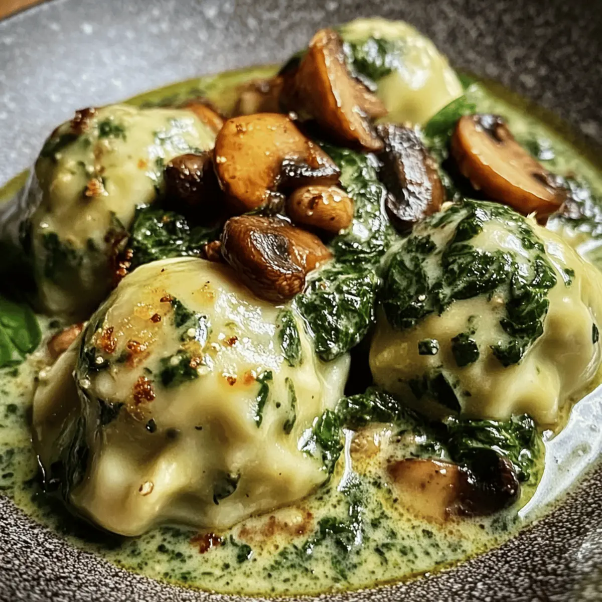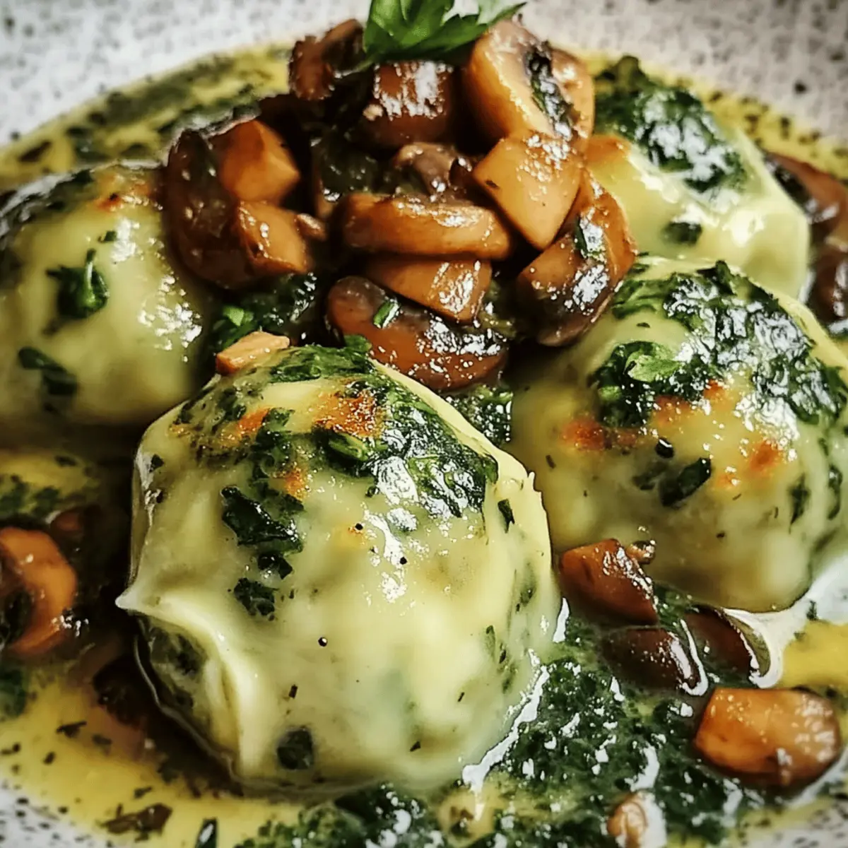 Während ich in meiner Küche stand und den verführerischen Duft von frisch gebratenen Champignons wahrnahm, erfüllte mich die Vorfreude auf ein Gericht, das ein Stück Heimat auf den Teller bringt: Spinatknödel mit Pilzragout. Diese vegetarischen Köstlichkeiten sind nicht nur eine wärmende Umarmung an kalten Tagen, sondern lassen sich auch schnell zubereiten – ideal, wenn der Hunger groß ist und die Zeit drängt. Die Kombination aus zartem Spinat und cremigem Ragout macht diese Spezialität zu einem absoluten Hit, der selbst die anspruchsvollsten Gaumen begeistert. Wer kann da widerstehen? Lass uns gemeinsam dieses Komfortessen entdecken und die Küche in ein kleines Stück Deutschland verwandeln! Warum Spinatknödel mit Pilzragout lieben? Vielfältige Aromen: Die Kombination aus frischem Spinat und erdigen Champignons sorgt für ein Geschmackserlebnis, das dich auf eine kulinarische Reise nach Deutschland mitnimmt. Schnelle Zubereitung: In nur wenigen Schritten kannst du ein schmackhaftes Gericht zaubern – perfekt für alle, die wenig Zeit haben. Vegetarischer Genuss: Diese Spinatknödel sind ein wahrer Genuss für Vegetarier und bieten eine gesunde, nahrhafte Mahlzeit. Ideale Komfortnahrung: Sie sind nicht nur schmackhaft, sondern auch sättigend – ganz ohne Fast Food! Probiere dazu einen erfrischenden Salat, um noch mehr Frische auf den Teller zu bringen. Alle lieben es: Egal ob für einen gemütlichen Abend mit Freunden oder ein unkompliziertes Familienessen – Spinatknödel mit Pilzragout kommen immer gut an! Spinatknödel mit Pilzragout Zutaten • Einfache und klare Zutatenliste, um dir bei deinem kulinarischen Abenteuer zu helfen. Für die Spinatknödel Frischer Spinat – sorgt für Geschmack und Feuchtigkeit; gefrorener Spinat kann ebenfalls verwendet werden (auftauen und abtropfen lassen). Altes Weißbrot – gibt den Knödeln Struktur; alternativ kann knuspriges Brot oder glutenfreies Brot verwendet werden. Olivenöl – zum Anbraten, verstärkt den Geschmack; Butter kann für ein reichhaltigeres Aroma verwendet werden. Zwiebel – fügt Süße und Tiefe hinzu; Schalotten sind eine gute Alternativen. Eier – binden den Teig; keine Ersatzmöglichkeiten für die Bindung empfohlen. Parmesan – verleiht einen herzhaften Reichtum; für eine vegane Option kann Nährhefe verwendet werden. Mehl – hilft, die richtige Textur zu erreichen; glutenfreies Mehl ist ebenfalls machbar. Muskatnuss – sorgt für ein warmes, aromatisches Aroma; kann bei Empfindlichkeit weggelassen werden. Salz und Pfeffer – Würzen, um den Geschmack zu verbessern; nach persönlichem Geschmack anpassen. Für das Pilzragout Champignons (Pilze) – Hauptbestandteil des Ragouts, bietet erdige Aromen; Shiitake-Pilze sind auch eine gute Alternative. Gemüsebrühe – verleiht dem Ragout Tiefe; Hühnerbrühe kann für eine nicht-vegetarische Option verwendet werden. Sahne – sorgt für Reichhaltigkeit und Cremigkeit der Sauce; Kokoscreme ist eine vegane Variante. Thymian – gibt eine Kräuternote und verbessert den Geschmack; Oregano oder Rosmarin sind ebenfalls möglich. Schritt-für-Schritt-Anleitung für Spinatknödel mit Pilzragout Step 1: Spinat vorbereiten Erhitze in einem großen Topf einen Spritzer Wasser und füge den frischen Spinat hinzu. Lasse ihn bei mittlerer Hitze etwa 3-5 Minuten dünsten, bis er vollständig zusammengefallen ist. Danach nimm den Topf vom Herd, drücke den Spinat gut aus und hacke ihn grob. Der vorbereitete Spinat ist nun bereit, in die Spinatknödel eingefügt zu werden. Step 2: Brot einweichen Schneide das alte Weißbrot in kleine Stücke und lege es in eine Schüssel. Übergieße das Brot mit kaltem Wasser und lasse es für etwa 10 Minuten einweichen, bis es weich und gut durchtränkt ist. Danach drücke überschüssiges Wasser aus und halte das eingeweichte Brot bereit, um es mit den anderen Zutaten zu mischen. Step 3: Zwiebeln anbraten Erhitze in einer Pfanne 2 Esslöffel Olivenöl bei mittlerer Hitze. Schneide die Zwiebel in kleine Würfel und brate sie etwa 5-7 Minuten lang an, bis sie glasig und leicht goldbraun sind. Dies verleiht den Spinatknödeln einen intensiven Geschmack. Sobald die Zwiebeln fertig sind, nimm sie vom Herd und lasse sie etwas abkühlen. Step 4: Zutaten mischen In einer großen Schüssel vereine das eingeweichte Brot, den gehackten Spinat, die angebratenen Zwiebeln, 2 Eier, geriebenen Parmesan, Mehl, Muskatnuss, Salz und Pfeffer. Mische die Zutaten gründlich mit den Händen oder einem Holzlöffel, bis eine glatte Masse entsteht. Forme anschließend kleine Knödel aus der Mischung, die etwa golfballgroß sein sollten. Step 5: Knödel kochen Bringe in einem großen Topf ausreichend Wasser zum Sieden und salze es nach Geschmack. Sobald das Wasser kocht, gib die Spinatknödel vorsichtig hinein. Koche die Knödel etwa 15 Minuten lang oder bis sie an die Wasseroberfläche steigen und fest aussehen. Achte darauf, die Knödel vorsichtig zu behandeln, um sie nicht zu zerbrechen. Step 6: Pilzragout zubereiten Während die Knödel kochen, schneide die Champignons und eine weitere Zwiebel in Scheiben. Erhitze in einer großen Pfanne 2 Esslöffel Olivenöl und brate die Champignons und Zwiebeln bei mittlerer Hitze für etwa 5-7 Minuten an, bis sie goldbraun sind und ihr Wasser abgegeben haben. Füge dann schnell 1-2 gehackte Knoblauchzehen hinzu und brate sie kurz mit. Step 7: Ragout vollenden Gieße 300 ml Gemüsebrühe in die Pfanne zu den Pilzen und lasse die Mischung für etwa 10 Minutenköcheln, um die Aromen zu vereinen. Rühre dann 100 ml Sahne und eine Prise Thymian ein. Lasse das Ragout bei niedriger Hitze noch einige Minuten köcheln und schmecke es mit Salz und Pfeffer ab, bis die gewünschte Würze erreicht ist. Step 8: Servieren Die fertigen Spinatknödel mit Pilzragout anrichten, indem du die Knödel auf Tellern platzierst und großzügig mit dem cremigen Pilzragout übergießt. Genieße die Kombination von zarten Knödeln und dem ar