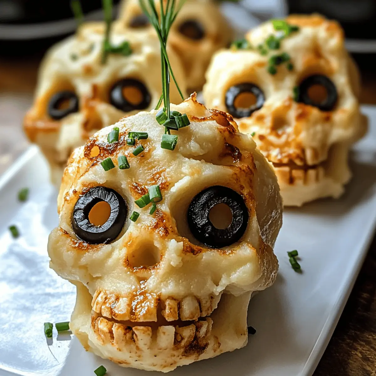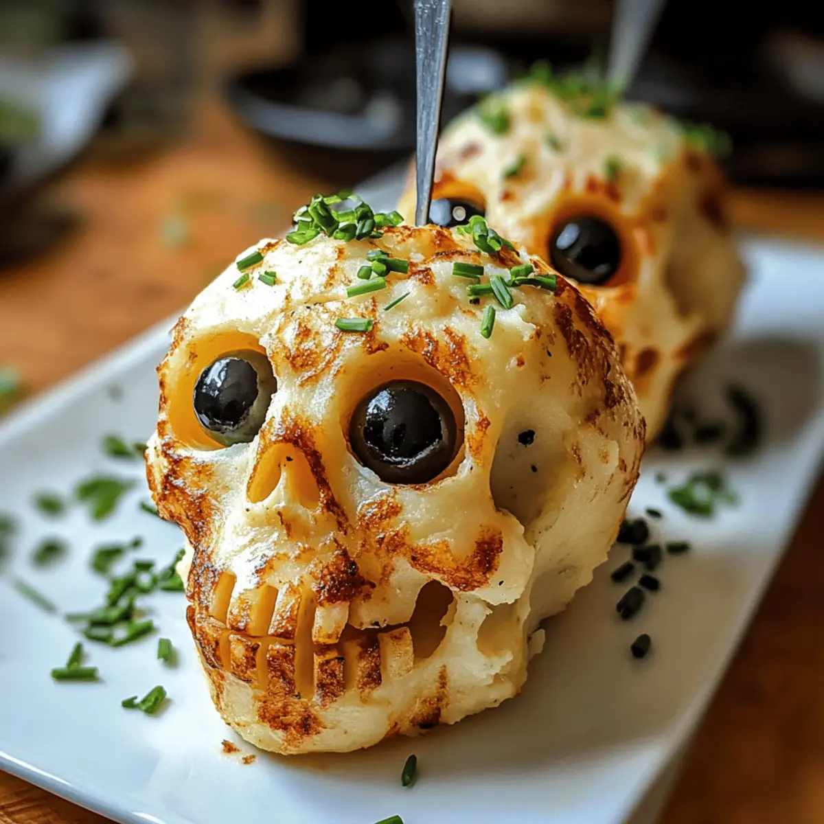 Nach dem Anschneiden einer perfekt gebackenen Kartoffel aus dem Ofen wird der fesselnde Duft von cremigen, pürierten Kartoffeln freigesetzt, der sofort Kindheitserinnerungen und festliche Freude weckt. Mit Halloween vor der Tür freue ich mich, Ihnen meine neueste Kreation vorzustellen: die spooky skull kartoffeln. Diese aufregende Variante klassischer, cremiger Kartoffeln verwandelt ein vertrautes Gericht in eine gruselige Attraktion, perfekt für jede Halloween-Feier. Sie sind nicht nur ein echter Hingucker auf dem Tisch, sondern ermöglichen auch kreative Anpassungen – von den Geschmäckern bis zur Dekoration. Wer könnte schon widerstehen an solch einer schaurig-schönen Leckerei? Lassen Sie uns gemeinsam diese köstlichen Schädel-Kartoffeln zubereiten und Ihren Gästen ein unvergessliches Erlebnis bieten! Warum sind spooky skull kartoffeln ein Muss? Einzigartig in der Präsentation: Diese spooky skull kartoffeln verleihen Ihrer Halloween-Feier einen unvergesslichen Touch, da sie sowohl geschmacklich als auch optisch beeindrucken. Kreative Anpassungsmöglichkeiten: Ob mit Knoblauch oder Käse, Ihrer Fantasie sind keine Grenzen gesetzt, wenn es um die Aromen geht. Ein echter Publikumsmagnet: Gäste aller Altersgruppen werden von diesen gruseligen Kartoffeln begeistert sein und sie werden in kürzester Zeit verschwinden! Einfach zuzubereiten: Die klare Anleitung macht es leicht, auch für Anfänger in der Küche köstliche Ergebnisse zu erzielen. Zeitersparnis: Bereiten Sie die Kartoffeln im Voraus vor – sie können ideal für stressfreie Feiern umgesetzt werden. Wenn Sie nach weiteren Inspirationen suchen, sehen Sie sich auch meine anderen Halloween-Rezepte an! Zutaten für spooky skull kartoffeln • Tauchen Sie ein in die Welt der schaurigen Aromen mit diesen köstlichen Zutaten, die Ihre spooky skull kartoffeln zum Leben erwecken! Für die Kartoffelmischung Große Russet-Kartoffeln – sorgen für die perfekte Konsistenz und den reichen Geschmack. Schlagsahne – macht die Kartoffeln extra cremig; für eine leichtere Variante kann Milch verwendet werden. Butter – verbessert den Geschmack; verwenden Sie ungesalzene für optimale Würze. Salz und Pfeffer – unverzichtbar für den richtigen Geschmack; nach Belieben anpassen. Für die Dekoration Schwarze Oliven – ideal für die Gestaltung von Augen oder anderen Gesichtsmerkmalen der Skelette. Frische Schnittlauch oder Frühlingszwiebeln – bringen Farbe und einen milden Geschmack; optische Bereicherung! Tipps für die Zubereitung Packen Sie die Kartoffelmischung fest in die Formen, damit sie beim Backen nicht auseinanderfallen. Experimentieren Sie mit zusätzlichen Aromen wie Knoblauch oder Käse, um Ihre eigenständigen spooky skull kartoffeln zu kreieren! Schritt-für-Schritt-Anleitung für spooky skull kartoffeln Step 1: Kartoffeln vorbereiten Schälen Sie die großen Russet-Kartoffeln und schneiden Sie sie in etwa 5 cm große Stücke. Geben Sie die Kartoffeln in einen großen Topf mit kochendem Salzwasser und kochen Sie sie 15-20 Minuten lang, bis sie mit einer Gabel leicht durchstochen werden können. Achten Sie darauf, die Kartoffeln nicht zu lange zu kochen, damit sie nicht matschig werden. Step 2: Pürieren Nachdem die Kartoffeln gar sind, lassen Sie sie gut abtropfen und geben Sie sie zurück in den Topf. Fügen Sie die Schlagsahne, die geschmolzene Butter, Salz und Pfeffer hinzu. Mit einem Kartoffelstampfer oder einem Handmixer pürieren Sie die Mischung, bis sie glatt und cremig ist. Vergewissern Sie sich, dass keine Klumpen zurückbleiben, um die perfekte Basis für Ihre spooky skull kartoffeln zu erhalten. Step 3: In Schädel formen Um die spooky skull kartoffeln zu formen, verwenden Sie eine Schädel-Backform oder formen Sie die Kartoffelmasse mit den Händen. Achten Sie darauf, die Mischung fest in die Form zu drücken, um sicherzustellen, dass sie beim Backen ihre Form behält. Legen Sie die geformten Kartoffelschädel auf ein mit Backpapier ausgelegtes Backblech. Step 4: Backen Heizen Sie den Ofen auf 190°C vor. Backen Sie die geformten Kartoffeln 15-20 Minuten lang, bis die Oberseite goldbraun und knusprig ist. Behalten Sie die Kartoffeln im Auge, da die Backzeit je nach Ofen variieren kann. Sie sollten eine appetitliche, goldene Kruste haben. Step 5: Dekorieren Nehmen Sie die Backbleche aus dem Ofen und lassen Sie die spooky skull kartoffeln kurz abkühlen. Dekorieren Sie die Schädel mit Scheiben von schwarzen Oliven für die Augen und streuen Sie frische Schnittlauch- oder Frühlingszwiebelstücke darüber. Diese geringen Details verleihen Ihren Kartoffeln eine gespenstische Erscheinung und das besondere Etwas! Lagerungstipps für spooky skull kartoffeln Raumtemperatur:: Servieren Sie die spooky skull kartoffeln sofort nach dem Backen, um die optimale Textur und Frische zu genießen. Kühlschrank:: Bewahren Sie übrig gebliebene Kartoffeln in einem luftdichten Behälter auf – diese sind bis zu 3 Tage haltbar. Tiefkühler:: Für längere Lagerung können Sie die geformten, ungebackenen kartoffeln einfrieren. Wickeln Sie sie in Frischhaltefolie und lagern Sie sie bis zu 2 Monate im Gefrierfach. Wiederaufwärmen:: Zum Aufwärmen die Kartoffeln im Ofen bei 180°C für etwa 15-20 Minuten erwärmen, um die Knusprigkeit zu erhalten. Alternativ können Sie die spooky skull kartoffeln auch in der Mikrowelle bei mittlerer Hitze für 2-3 Minuten aufwärmen. Was passt gut zu spooky skull kartoffeln? Die Kombination von Aromen und Texturen kann ein unvergleichliches Festmahl kreieren, das Ihre Gäste begeistert. Kürbissuppe: Die süße und cremige Kürbissuppe bildet einen perfekten Kontrast zu den herzhaften, schaurigen Kartoffeln und bringt festliche Aromen auf den Tisch. Blattsalat mit Nüssen: Ein erfrischender Salat mit knackigen Nüssen und einem leichten Dressing sorgt für eine tolle Textur und Ausgewogenheit. Gegrillte Würstchen: Diese herzhaften Begleiter harmonieren ausgezeichnet mit den cremigen und