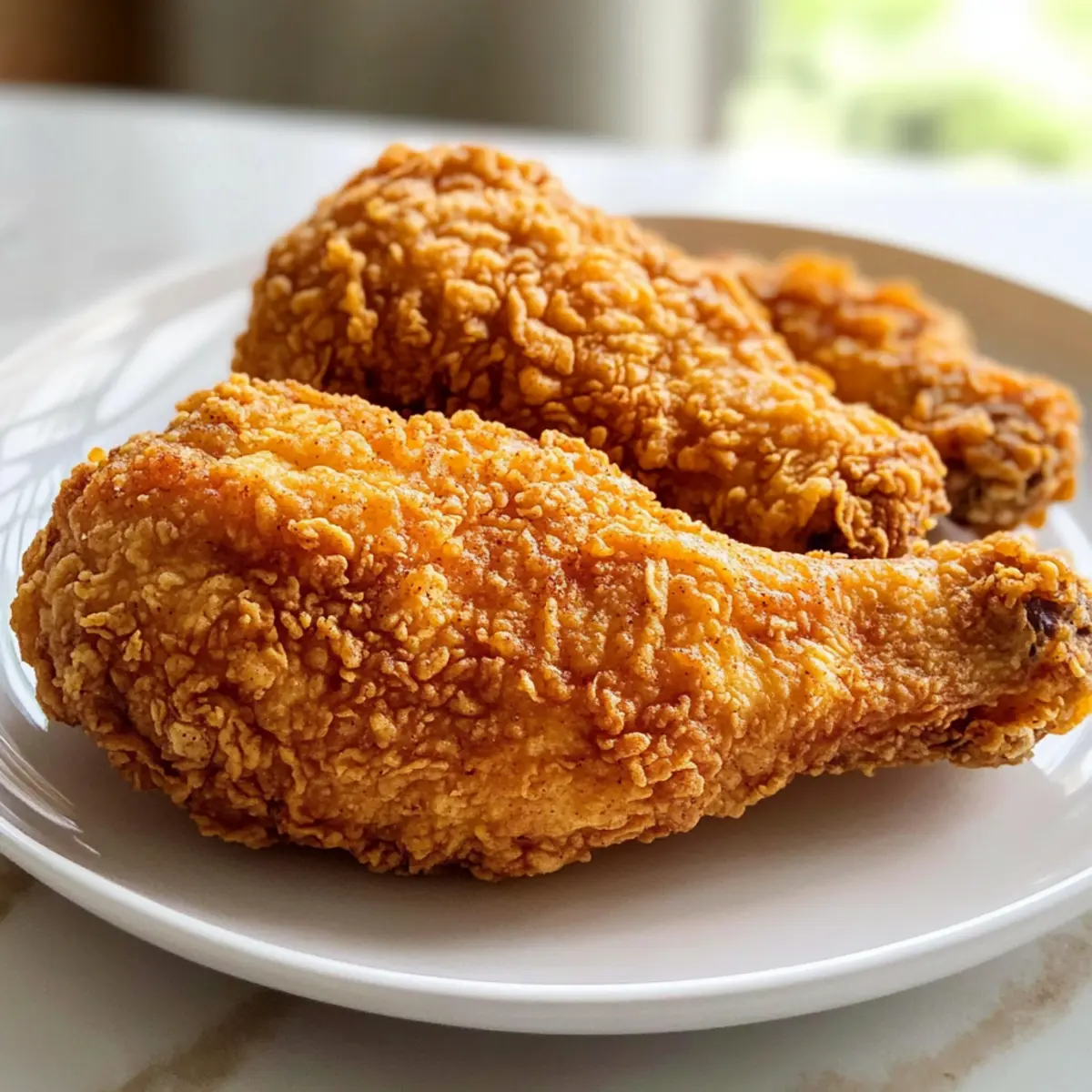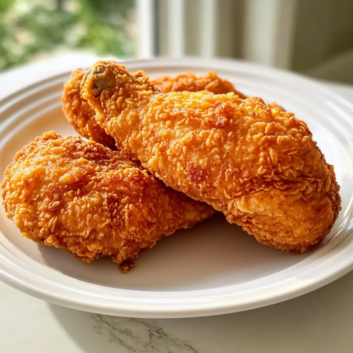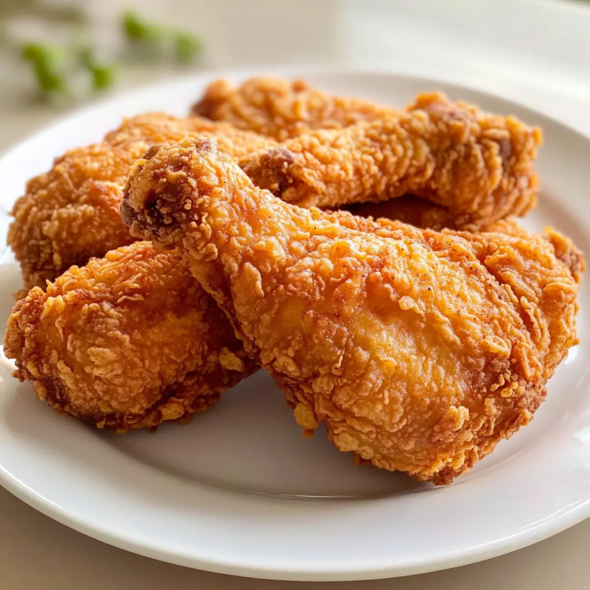 Bevor ich ein Stück des knusprigen, goldbraunen Hähnchens abbeisse, kann ich das aufregende Zischen in der Pfanne förmlich hören. Mein Südliches frittierte Hähnchen Rezept ist mehr als nur ein Gericht – es ist eine Liebeserklärung an die herzliche südliche Küche und eine Einladung, gemeinsam am Tisch zu genießen. Saftig und zart im Inneren, kombiniert mit einer perfekt knusprigen Kruste, ist dieses Rezept ganz einfach zu Hause nachzukochen und eignet sich hervorragend für Familienfeiern oder ein gemütliches Abendessen mit Freunden. Mit minimalem Aufwand zaubern Sie eine Speise, die garantiert alle begeistern wird. Neugierig, wie Sie Ihr eigenes Stück des Südens auf den Tisch bringen können? Warum werden Sie dieses Rezept lieben? Einfachheit: Die Zubereitung ist unkompliziert und erfordert keine besonderen Kochkünste. Jeder kann im Handumdrehen ein meisterhaftes Hähnchen zaubern. Knuspriger Genuss: Die Kombination aus einer perfekten Mehldecke und dem saftigen Inneren sorgt für ein Geschmackserlebnis, das das Herz jeder Südstaatenküche höher schlagen lässt. Vielseitigkeit: Ob als Hauptgericht mit Beilagen wie Kürbis-Hackfleisch-Pfanne mit Feta oder in Kombination mit frischen Olivenöl- und Meersalzbrot, die Möglichkeiten sind endlos. Zeitsparend: Mit einer Marinierzeit von nur einer Stunde und einer schnellen Zubereitung ist es der perfekte Begleiter für ein stressfreies Abendessen. Familienfreundlich: Kinder und Erwachsene werden gleichermaßen begeistert sein — dieser Klassiker bringt alle zusammen! Südliches frittierte Hähnchen Zutaten • Hier sind die notwendigen Zutaten für das perfekte Rezept, das alle in Ihren Bann ziehen wird! Für das Hähnchen • Hähnchenteile – 4–6 Stück (Beine, Oberschenkel oder Brust); wählen Sie Knochen-in für mehr Geschmack. • Buttermilch – 1 Tasse; dient als Marinade, um das Hähnchen saftig zu halten. Regelmäßige Milch mit einem Spritzer Essig kann als Ersatz verwendet werden. • Eier – 2 Stück; sorgen für Bindung des Teigs. Für eine vegane Variante kann ein Ei-Ersatz verwendet werden. Für die Kruste • Mehl – 2 Tassen; für die knusprige Beschichtung. Kann bei Bedarf durch glutenfreies Mehl ersetzt werden. • Paprika – 1 Teelöffel; fügt Farbe und milde Süße hinzu. Geräucherte Paprika kann zusätzlichen Geschmack verleihen. • Knoblauchpulver – ½ Teelöffel; verleiht Geschmack. Kann durch frischen, gehackten Knoblauch ersetzt werden. • Zwiebelpulver – ½ Teelöffel; bietet herzhafte Noten. Kann weggelassen werden, wenn nicht verfügbar. • Salz – 1 Teelöffel; verstärkt den gesamten Geschmack. Verwenden Sie Meersalz für ein reineres Aroma. • Pfeffer – ½ Teelöffel; sorgt für grundlegende Würze. Frisch gemahlener Pfeffer wird bevorzugt für maximalen Geschmack. • Cayennepfeffer – optional; fügt Schärfe hinzu. Passen Sie es nach Ihrem persönlichen Geschmack an. Für das Frittieren • Pflanzenöl – 2–3 Tassen zum Frittieren; entscheidend für die Zubereitung. Verwenden Sie Raps- oder Erdnussöl, aber vermeiden Sie Olivenöl wegen des niedrigen Rauchpunkts. Genießen Sie das Kochen und die Vorfreude auf ein köstliches, selbstgemachtes südliches frittierte Hähnchen Rezept! Schritt-für-Schritt-Anleitung für das Südliches frittierte Hähnchen Rezept Step 1: Hähnchen marinieren Legen Sie die Hähnchenteile in eine große Schüssel und gießen Sie die Buttermilch darüber. Stellen Sie sicher, dass sie vollständig bedeckt sind, und lassen Sie das Hähnchen mindestens 1 Stunde im Kühlschrank marinieren. Diese Marinierung sorgt dafür, dass das Hühnchen saftig bleibt und die Aromen gut durchdringen. Step 2: Mehlmischung vorbereiten In einer separaten großen Schüssel vermengen Sie das Mehl mit Paprika, Knoblauchpulver, Zwiebelpulver, Salz und frisch gemahlenem Pfeffer. Rühren Sie die Mischung gut um, bis alle Zutaten gleichmäßig verteilt sind. Diese Gewürzmischung wird den Hähnchenteilen eine knusprige, geschmackvolle Kruste geben. Step 3: Hähnchen panieren Nehmen Sie die Hähnchenteile aus der Buttermilch und lassen Sie sie kurz abtropfen. Wälzen Sie jedes Stück sorgfältig in der vorbereiteten Mehlmischung und drücken Sie leicht an, um sicherzustellen, dass die Kruste gut haftet. Legen Sie die panierten Hähnchenteile auf einen Teller, während Sie das Öl erhitzen. Step 4: Öl erhitzen Erhitzen Sie in einer großen Pfanne genug Pflanzenöl, sodass der Boden gut bedeckt ist, bei mittelhoher Temperatur. Ein gutes Indiz dafür, dass das Öl heiß genug ist, ist, wenn ein kleiner Löffel der Mehlmischung sofort zu brutzeln beginnt, wenn Sie ihn ins Öl geben. Dies sollte etwa 5–7 Minuten dauern. Step 5: Hähnchen frittieren Sobald das Öl heiß ist, legen Sie vorsichtig die panierten Hähnchenteile in die Pfanne. Frittieren Sie sie für 10–12 Minuten auf jeder Seite, bis sie goldbraun und knusprig sind. Überprüfen Sie mit einem Fleischthermometer, ob die Innentemperatur mindestens 75 °C (165 °F) erreicht hat, um sicherzustellen, dass das Hähnchen durchgegart ist. Step 6: Abtropfen und servieren Entfernen Sie die Hähnchenteile vorsichtig aus dem Öl und lassen Sie sie auf Küchenpapier oder einem Kuchengitter abtropfen, um überschüssiges Fett zu entfernen. Servieren Sie Ihr köstliches Südliches frittierte Hähnchen sofort für das beste Geschmackserlebnis und die perfekte Knusprigkeit – es wird garantiert ein Hit am Tisch sein! Expertentipps für Südliches frittierte Hähnchen Rezept • Panade perfekt anbringen: Achten Sie darauf, das Hähnchen nach dem Marinieren gut abtropfen zu lassen, damit die Panade besser haftet und knusprig wird. • Öltemperatur prüfen: Verwenden Sie ein Thermometer oder den „Brutzeltest“, um sicherzustellen, dass das Öl heiß genug ist. Zu niedrige Temperaturen machen die Panade fettig. • Nicht überfüllen: Frittieren Sie das Hähnchen in kleinen Mengen, um die Öltemperatur beizubehalten und ein g