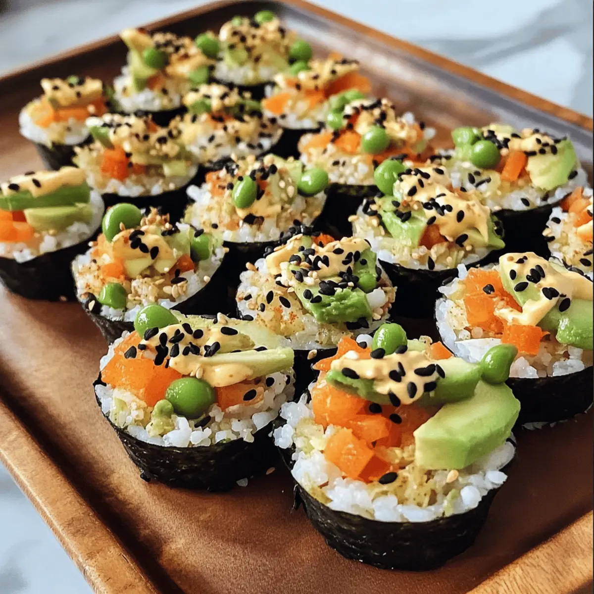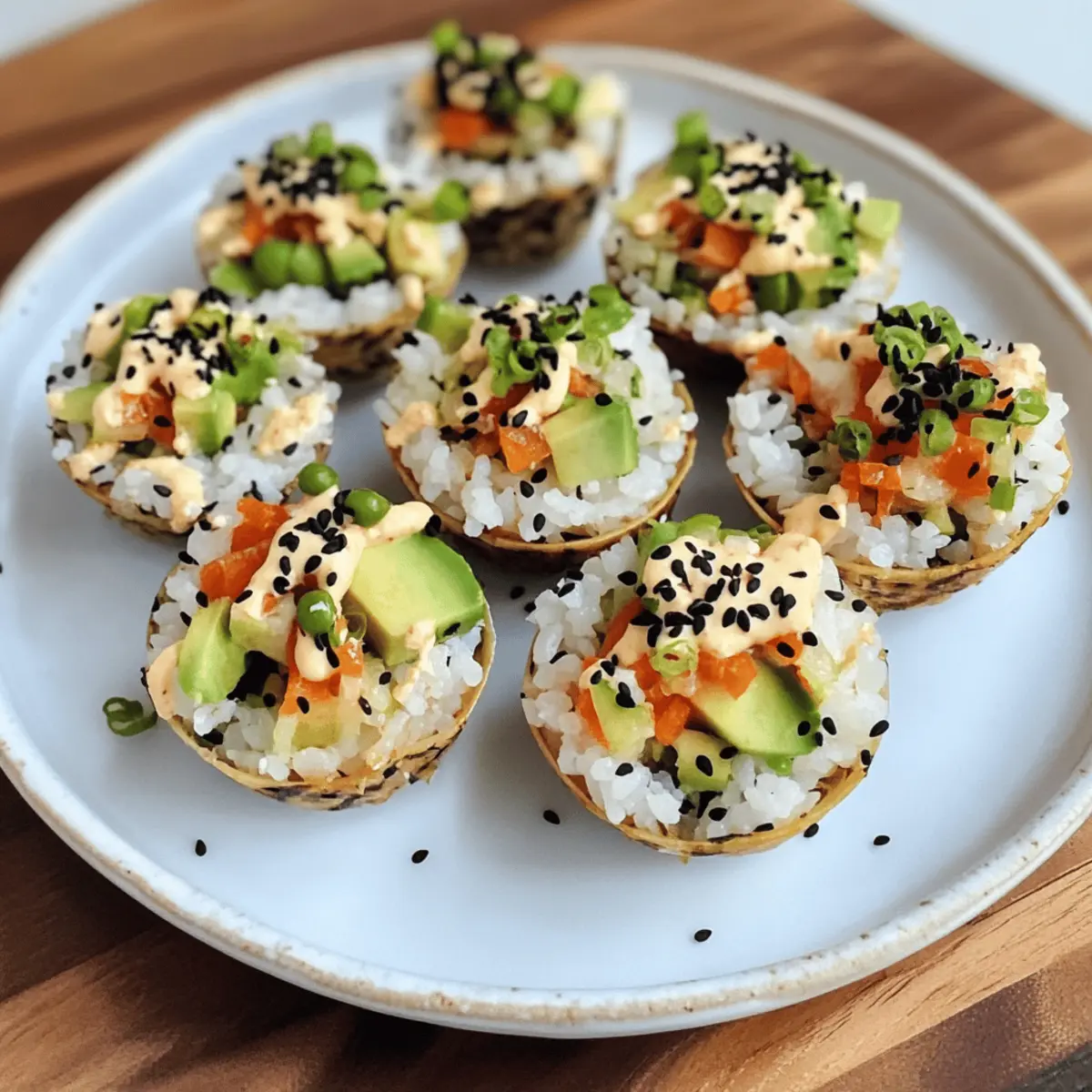 • Frische Kräuter: Verfeinere die Füllung mit frischen Kräutern wie Koriander oder Minze, um den Geschmack zu beleben. Das bringt ein zusätzliches Aroma in deine Sushi-Tassen.