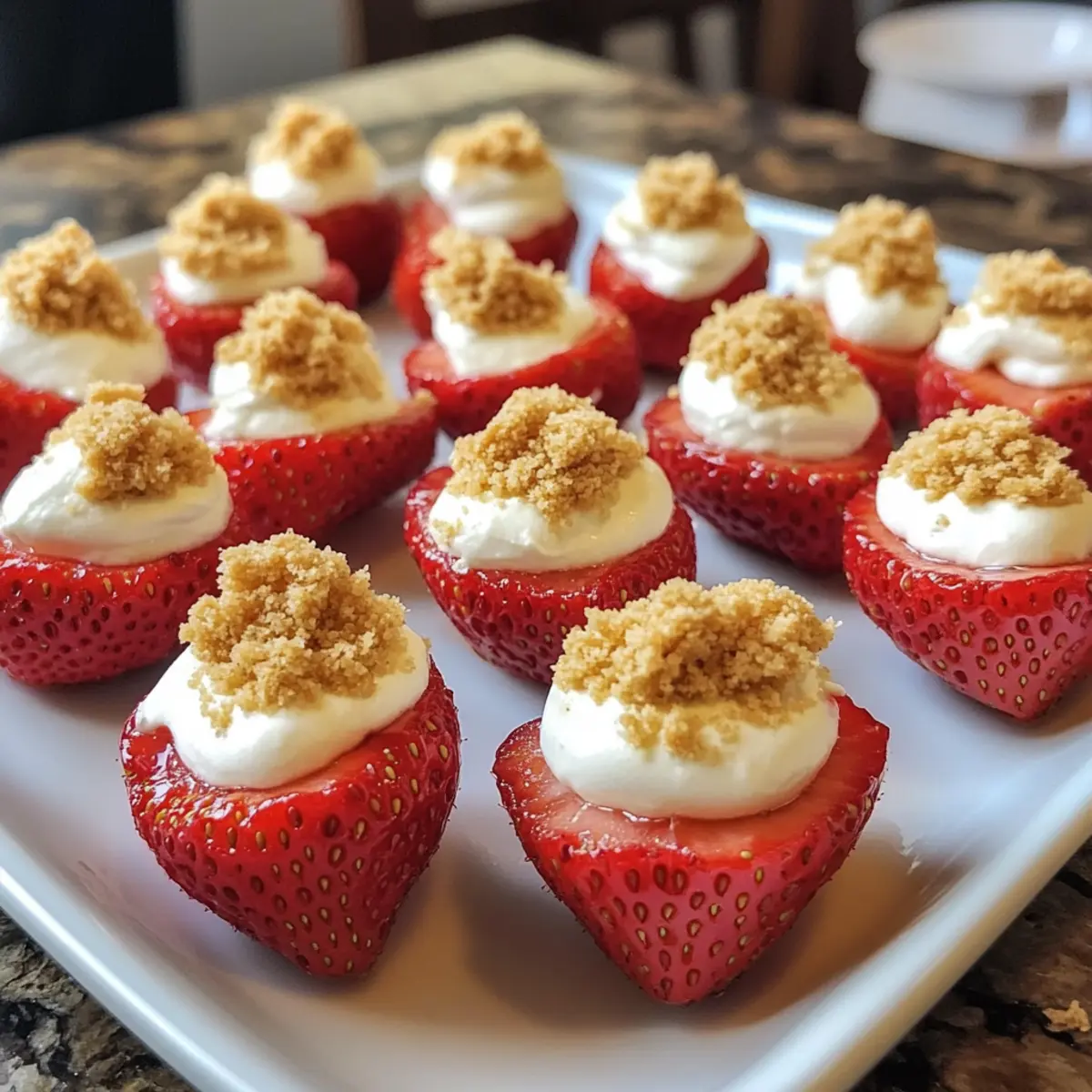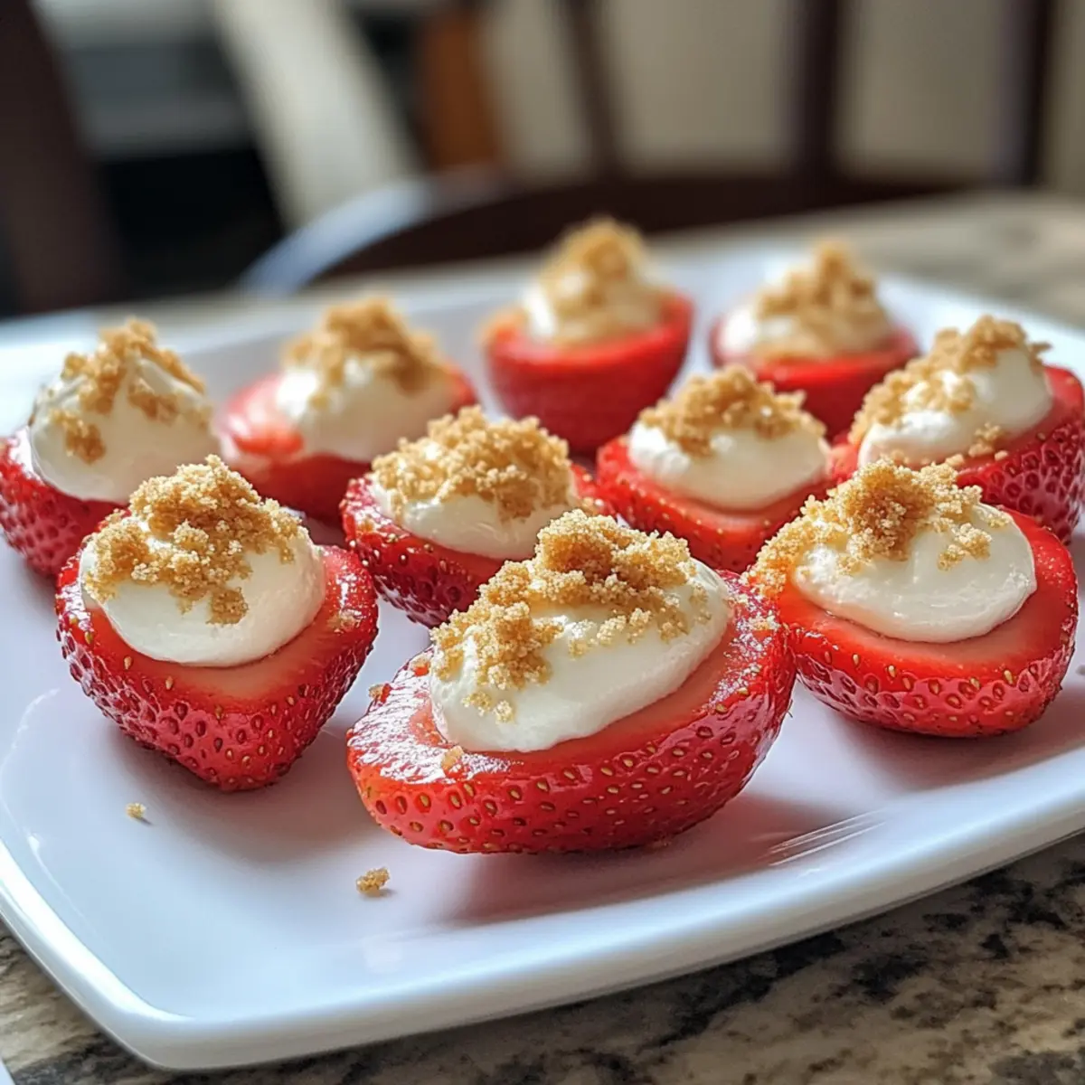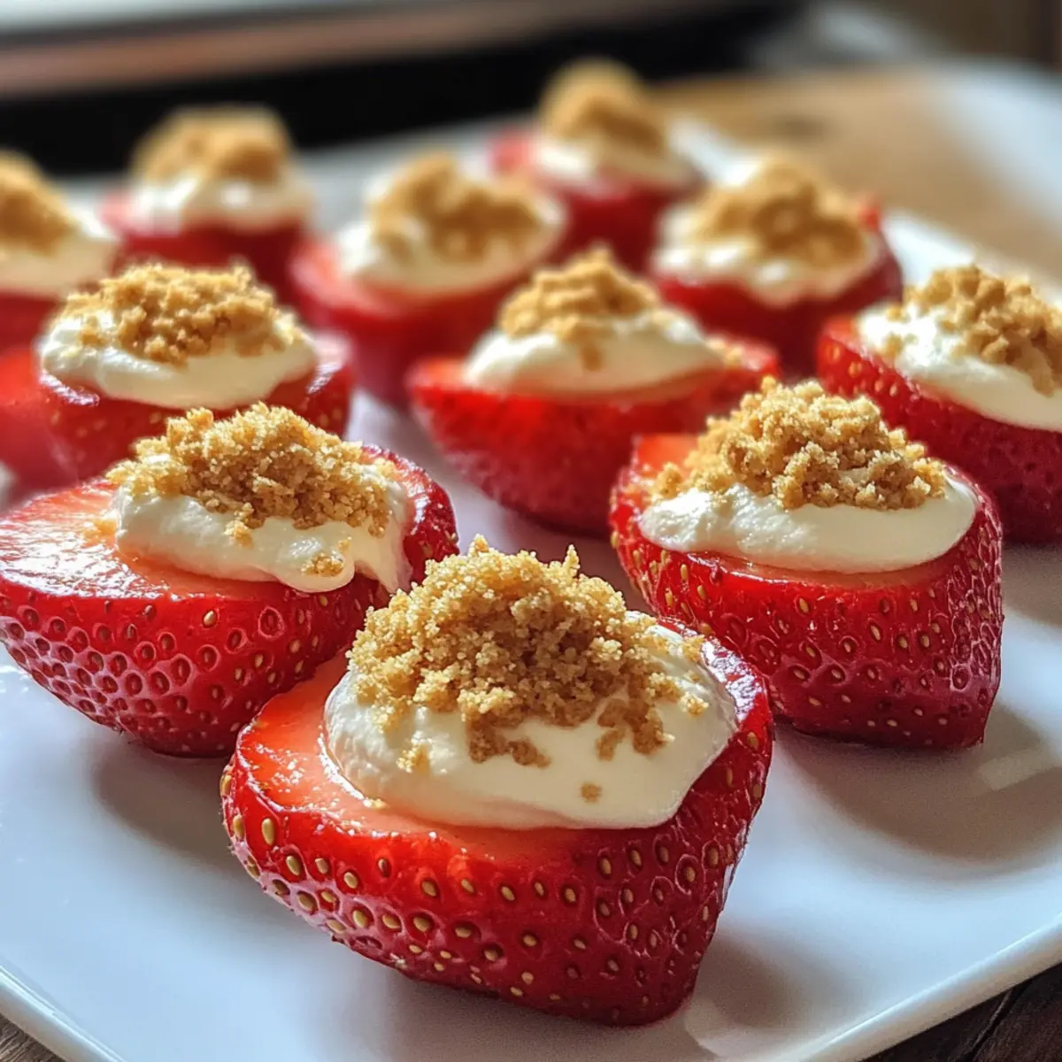Bei meinem letzten Besuch auf einer Sommerparty kam ich plötzlich in den Genuss eines ganz besonderen Snacks: Teuflische Erdbeeren mit einer himmlischen Käsekuchenfüllung! Diese verführerischen kleinen Leckerbissen sind nicht nur ein wahrer Blickfang, sie zaubern auch ein Lächeln auf jedes Gesicht. Die Kombination aus süßen, saftigen Erdbeeren, fluffiger Käsekuchen-Creme und einem knackigen Keks-Topping macht sie zu einem perfekten Partyfood. Außerdem sind sie im Handumdrehen zubereitet und eignen sich hervorragend als Fingerfood – ideal für gesellige Runden oder ein sommerliches Picknick. Und das Beste? Sie sind leicht anpassbar für eine kohlenhydratarme Variante! Also, seid ihr bereit, eure Gäste mit diesen köstlichen Teuflischen Erdbeeren zu überraschen? Warum sind Teuflische Erdbeeren besonders? Unwiderstehlich lecker! Diese Teuflischen Erdbeeren kombinieren die Süße reifer Erdbeeren mit einer fluffigen Käsekuchenfüllung, die einfach im Mund zergeht. Einfach zubereiten! In nur wenigen Schritten könnt ihr diese himmlischen Häppchen kreieren, was sie ideal für spontane Partys macht. Vielfältig anpassbar! Mit einfachen Substitutionen können sie auch kohlenhydratarm zubereitet werden – perfekt für alle, die auf ihre Ernährung achten. Ein Blickfang! Diese auffälligen Leckerbissen sorgen garantiert für Gespräche und bewundernde Blicke auf jedem Tisch! Einfache Lagerung! Für mehr Flexibilität könnt ihr die Füllung schon am Vortag vorbereiten und dann am Tag der Party einfach füllen. Verpasst nicht die Gelegenheit, diese Teuflischen Erdbeeren mit Cheesecake-Füllung in euer Repertoire aufzunehmen! Teuflische Erdbeeren Zutaten Für die Füllung Große Erdbeeren – Wählt frische, reife Erdbeeren für den besten Geschmack und eine schöne Präsentation. Schlagsahne – Diese bringt die Leichtigkeit und Cremigkeit, die für die Käsekuchenfüllung notwendig ist; für eine leichtere Variante kann auch fettreduzierte Sahne verwendet werden. Frischkäse – Der Hauptbestandteil der Füllung, sorgt für die charakteristische Cremigkeit; stellt sicher, dass er weich ist, um das Mischen zu erleichtern. Sauerrahm – Verstärkt die Cremigkeit und sorgt für eine angenehme Säure; kann bei Bedarf durch griechischen Joghurt ersetzt werden. Zucker – Süßt die Füllung; für eine kohlenhydratarme Variante einfach einen entsprechenden Süßstoff verwenden. Vanilleextrakt – Gibt der Füllung ein wunderbares Aroma; verwendet stets reinen Vanilleextrakt für das beste Ergebnis. Frischer Zitronensaft (optional) – Bringt eine frische Note und gleicht die Süße aus; lasst ihn weg, wenn ihr eine mildere Füllung bevorzugt. Für das Topping Graham-Cracker-Brösel – Sorgt für einen crunchy Akzent obendrauf; alternativ können gehackte Nüsse für eine kohlenhydratarme Variante verwendet werden. Schritt-für-Schritt-Anleitung für Teuflische Erdbeeren mit Cheesecake-Füllung Step 1: Erdbeeren vorbereiten Schneidet die Stiele der großen Erdbeeren ab und halbiert jede Erdbeere sorgfältig. Um die Stabilität zu gewährleisten, schneidet die Rückseite jeder Erdbeere leicht an. Mit einem Melonenausstecher höhlt ihr vorsichtig einen kleinen Teil der Erdbeeren aus, sodass genug Platz für die köstliche Füllung bleibt. Diese Vorbereitungen sorgen dafür, dass die Teuflischen Erdbeeren gleichmäßig gefüllt werden können. Step 2: Sahne schlagen In einer großen Schüssel die Schlagsahne mit einem Handmixer schlagen, bis sich steife Spitzen bilden – das dauert etwa 5 Minuten. Achtet darauf, dass die Schlagsahne kühl ist, um die beste Textur zu erreichen. Diese cremige Basis wird später mit der Käsekuchenfüllung kombiniert und sorgt für die luftige Leichtigkeit, die die Teuflischen Erdbeeren besonders macht. Step 3: Füllung mischen In einer anderen Schüssel den weichgemachten Frischkäse, Sauerrahm, Zucker, Vanilleextrakt und optionalen Zitronensaft miteinander verrühren. Mit einem Handmixer gut durchmixen, bis die Mischung schön glatt und cremig ist. Diese Füllung wird die Hauptattraktion eurer Teuflischen Erdbeeren bilden und sorgt für den köstlichen Cheesecake-Geschmack. Step 4: Zutaten kombinieren Sobald die Füllung gut vermischt ist, die geschlagene Sahne vorsichtig unterheben. Nutzt dazu einen Spatel und faltet die Sahne langsam unter die Frischkäse-Mischung, bis alles gleichmäßig verteilt und cremig ist. Achte darauf, dass die leichte Textur der Sahne erhalten bleibt, um die perfekte Füllung für die Erdbeeren zu kreieren. Step 5: Füllung spritzen Füllt die cremige Käsekuchenmischung in einen Spritzbeutel mit einer Sterntülle. Füllt jede Erdbeerhälfte großzügig mit der Füllung – die Mischung sollte über den Rand hinausragen für einen ansprechenden Look. Diese Teuflischen Erdbeeren werden das Auge anziehen und den Appetit anregen, während ihr sie zubereitet. Step 6: Garnieren Sobald alle Erdbeeren gefüllt sind, mit Graham-Cracker-Bröseln großzügig bestreuen. Diese sorgen nicht nur für einen knusprigen Kontrast zur cremigen Füllung, sondern geben den Teuflischen Erdbeeren auch einen zusätzlichen Geschmacksakzent. Der letzte Schliff macht eure Teuflischen Erdbeeren zu einem echten Hingucker. Step 7: Servieren und genießen Arrangiert die fertigen Teuflischen Erdbeeren auf einem schönen Servierteller oder einer Platter. Diese Leckerbissen sollten kühl serviert werden, um ihre Frische zu bewahren. Ideal für Sommerpartys oder besondere Anlässe – bereit, eure Gäste mit diesen köstlichen Teuflischen Erdbeeren zu begeistern! Aufbewahrungstipps für Teuflische Erdbeeren Raumtemperatur: Diese Teuflischen Erdbeeren sollten nicht bei Raumtemperatur gelagert werden, um ihre Frische und Konsistenz zu bewahren. Kühlschrank: Bewahrt die gefüllten Erdbeeren in einem luftdichten Behälter auf und verbraucht sie innerhalb von 24 Stunden für besten Geschmack und Textur. Vorbereitung: Bereitet die Käsekuchenfüllung im Voraus vor und 