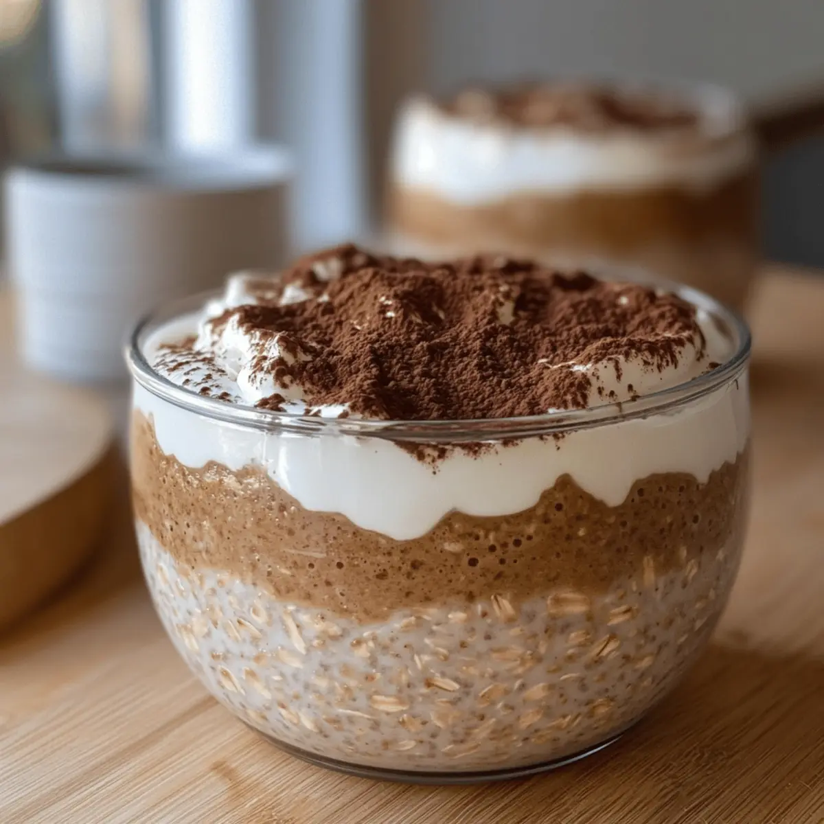 In einem kleinen Café in Rom bestellte ich einmal das berühmte Tiramisu und war sofort verzaubert von der Kombination aus feinem Kaffee und cremigem Mascarpone. Diese Aromen haben mich so inspiriert, dass ich sie in eine ganz neue Frühstücksrichtung lenkte: die Tiramisu Übernacht Haferflocken. Diese schnelle und gleichzeitig gesunde Frühstücksoption vereint die köstlichen Elemente des klassischen Desserts, während sie sich perfekt für hektische Morgen eignet. Mit einer herrlichen Textur und dem zusätzlichen Bonus, dass sie im Voraus zubereitet werden kann, wird dieses Rezept schnell zu deinem Lieblingsstart in den Tag. Bist du bereit, deine Morgen mit dieser süßen und zugleich nährenden Kreation zu bereichern? Warum wirst du dieses Rezept lieben? Einfachheit: Der gesamte Prozess ist kinderleicht und benötigt nur grundlegende Kochkenntnisse, um ein wunderbares Ergebnis zu erzielen. Vielseitigkeit: Mit nur wenigen Zutaten kannst du die Tiramisu Übernacht Haferflocken nach deinem Geschmack anpassen – sei es mit verschiedenen Milchalternativen oder Toppings wie frischen Beeren. Gesunde Süße: Der natürliche Geschmack des Ahornsirups, ergänzt durch die cremige Joghurt-Schicht, sorgt für eine perfekte Balance, die deine Geschmacksknospen begeistern wird. Zeitsparend: Dafür, dass du so viel Geschmack bekommst, ist die Zubereitung äußerst schnell; bereite alles am Vorabend vor, und dein Frühstück ist bereit! Kaffeegenuss: Der starke Kaffee verleiht diesen Haferflocken die Tiramisu-Note, die du liebst; du kannst sogar auf entkoffeinierten Kaffee umsteigen, wenn du das möchtest. Klassiker neu interpretiert: Diese leckeren Haferflocken sind eine gesunde und schmackhafte Version eines klassischen Desserts, die sowohl am Morgen als auch zum Snack begeistert. Gönne dir dieses schnelle Frühstück, das dir die Aromen des italienischen Tiramisu direkt nach Hause bringt! Tiramisu Übernacht Haferflocken Zutaten • Stell sicher, dass du alle notwendigen Zutaten hast, um dieses köstliche Frühstück zuzubereiten! Für die Haferflocken Zarte Haferflocken – bilden die ideale Grundlage für eine nahrhafte und cremige Textur. Verwende am besten kernige oder große Haferflocken. Chiasamen – wirken als Verdickungsmittel und liefern zusätzlich Omega-3-Fettsäuren für deine Gesundheit. Kakaopulver – sorgt für den reichen Schokoladengeschmack, der die Tiramisu-Note verstärkt; achte darauf, dass es klumpenfrei ist. Espresso oder starker Kaffee – unverzichtbar für das authentische Aroma; kannst auch entdecafetierten Kaffee oder Kräuterkaffee verwenden, wenn du es bevorzugst. Für die Creme Milch – sorgt für die gewünschte Cremigkeit. Du kannst entweder Kuhmilch oder pflanzliche Alternativen nutzen, je nach Vorliebe. Ahornsirup – verleiht eine natürliche Süße; kann durch Honig oder Agavendicksaft ersetzt werden, wenn gewünscht. Joghurt – bietet eine cremige Schicht, die dem traditionellen Mascarpone entspricht; wähle ungesüßten für den besten Geschmack. Zimtpulver – steigert die Geschmacksvielfalt; optional je nach persönlichen Vorlieben. Mit diesen Zutaten bist du bestens ausgestattet, um deine Tiramisu Übernacht Haferflocken zu kreieren und dich auf einen großartigen Morgen einzustellen! Schritt-für-Schritt-Anleitung für Tiramisu Übernacht Haferflocken Step 1: Haferflocken vorbereiten In einer mittelgroßen Schüssel vermischst du die zarten Haferflocken, Chiasamen und Kakaopulver gut miteinander. Achte darauf, dass alles gleichmäßig verteilt ist, um eine perfekte Grundlage für deine Tiramisu Übernacht Haferflocken zu schaffen. Verwende einen Schneebesen oder einen Löffel, um Klumpen zu vermeiden. Step 2: Flüssige Zutaten einarbeiten Füge langsam die Milch, den Espresso und den Ahornsirup hinzu, während du kontinuierlich rührst, um eine homogene Mischung zu gewährleisten. Lasse die Mischung anschließend für etwa 30 Minuten ruhen, damit die Chiasamen die Flüssigkeit aufnehmen können und eine gelartige Konsistenz entsteht. Rühre danach nochmal gut durch, um eventuelle Klumpen zu entfernen. Step 3: Joghurtcreme herstellen In einer separaten kleinen Schüssel mischst du den Joghurt mit etwas Ahornsirup für die Süße. Diese cremige Mischung wird dann gleichmäßig über die Haferflocken gegeben, sodass eine köstliche Schicht entsteht, die an das Mascarpone in traditionellem Tiramisu erinnert. Dies verleiht deiner Tiramisu Übernacht Haferflocken eine besonders feine Textur. Step 4: Schokoladenschicht hinzufügen Kombiniere das Zimtpulver mit dem verbleibenden Kakaopulver und siebe diese Mischung über die Joghurt-Schicht. Diese Taktik sorgt nicht nur für ein saftiges, visualisiertes Finish, sondern intensiviert auch den Schokoladengeschmack deiner Haferflocken. Achte darauf, alles gleichmäßig zu verteilen, damit jeder Bissen köstlich wird. Step 5: Kühlen und ziehen lassen Decke die Schüssel mit Klarsichtfolie ab und stelle sie für mindestens 4 Stunden, besser über Nacht, in den Kühlschrank. Durch das Kühlen können sich die Aromen wunderbar entfalten, und die Haferflocken erreichen die perfekte Konsistenz. Am nächsten Morgen wird das Frühstück dann direkt zum Genuss bereit sein. Step 6: Servieren und genießen Vor dem Servieren kannst du die Tiramisu Übernacht Haferflocken nach Belieben mit frischen Beeren oder Nüssen toppen. Serviere die Haferflocken in einem klaren Glas, um die schönen Schichten zu zeigen. Du wirst die Kombination aus cremigen, schokoladigen und kaffeeartigen Aromen lieben und dein Morgen wird gleich mit einem leckeren Akzent beginnen! Was passt zu Tiramisu Übernacht Haferflocken? Genieße ein harmonisches Frühstück, das deine Sinne verwöhnt und deinen Tag aufhellt. Frische Beeren: Die Säure der Beeren ergänzt die Süße der Haferflocken und bringt eine erfrischende Note dazu. Die Kombination von Aromen wird deine Geschmacksnerven beleben. Nüsse: Ein Topping aus gehackten Mandeln oder Walnüsse