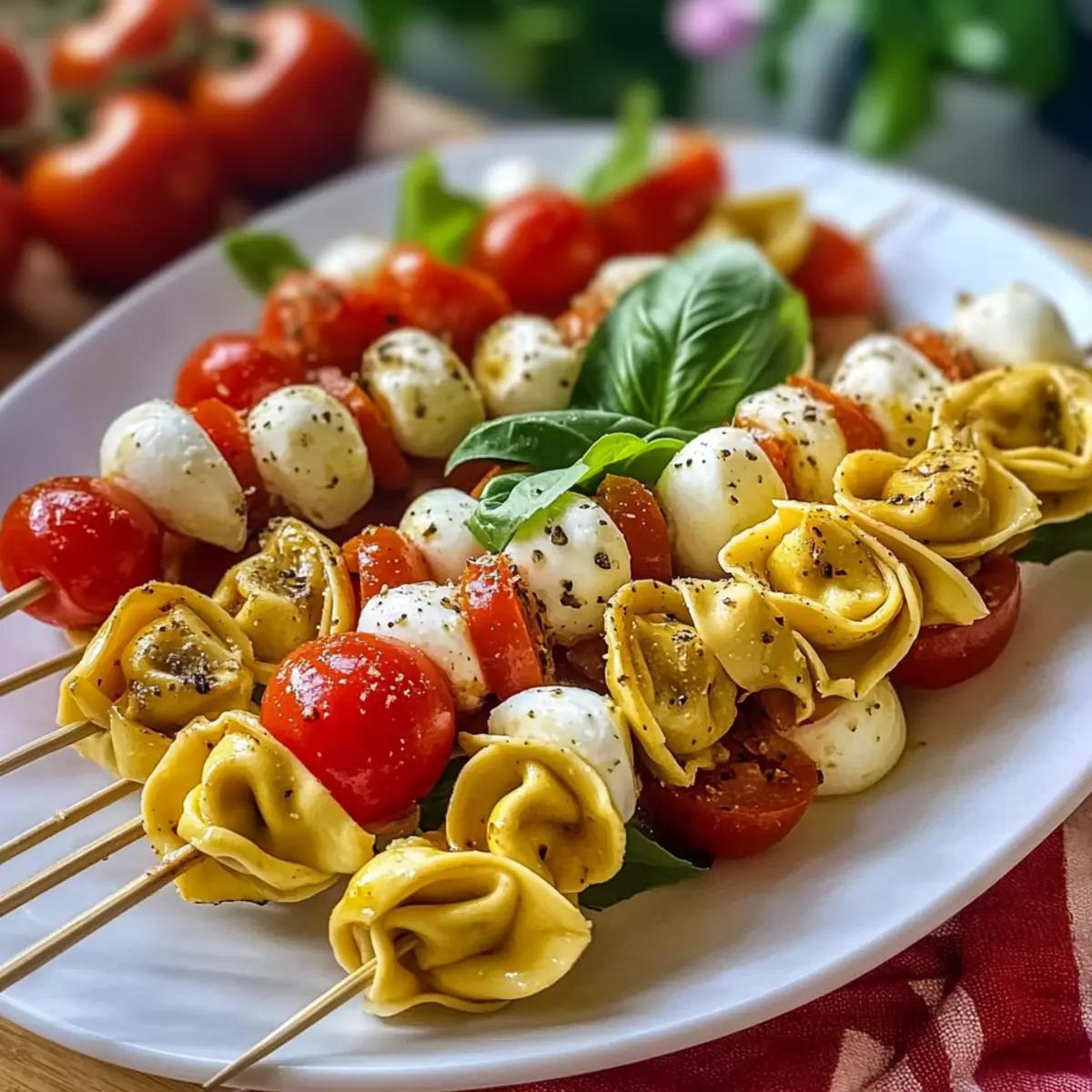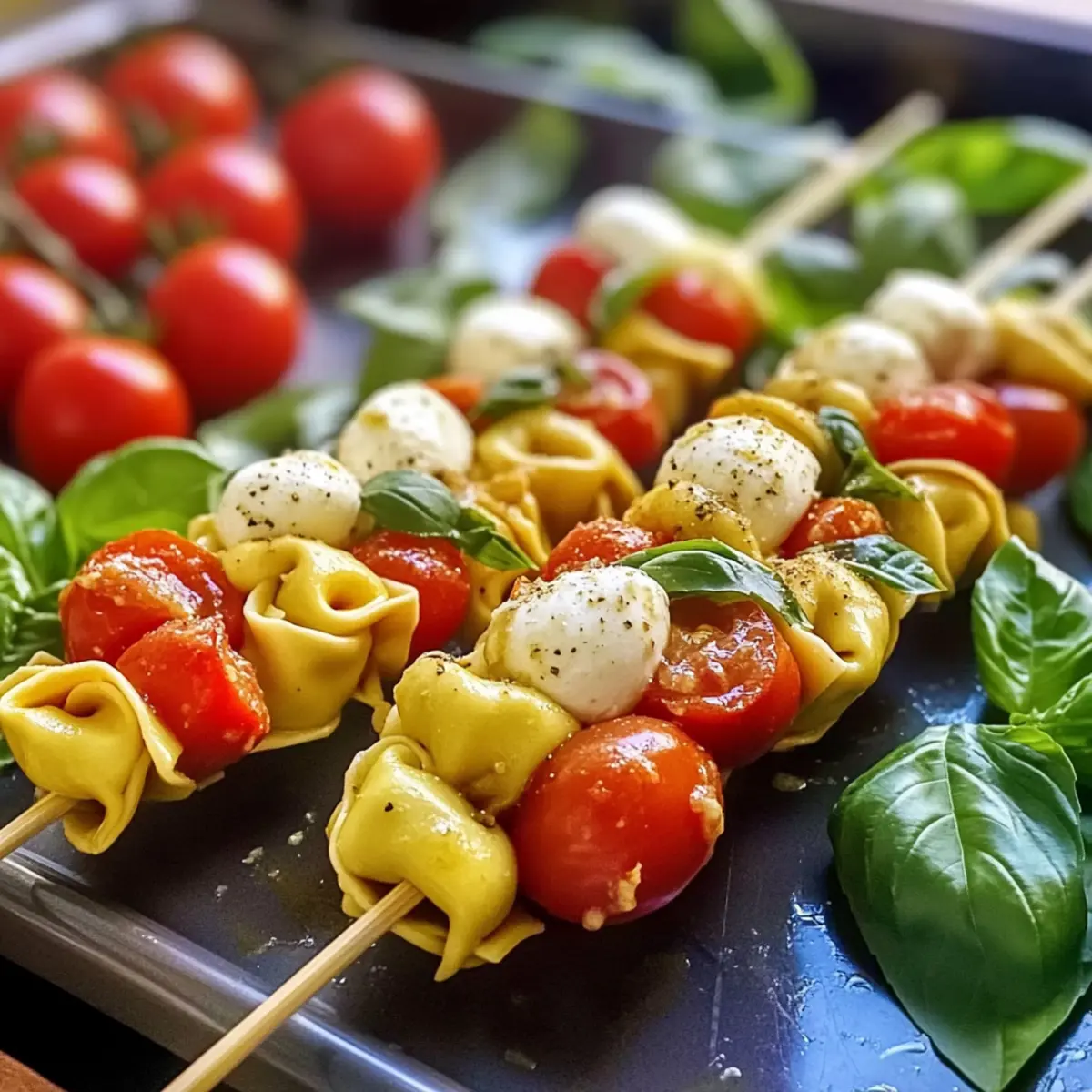 Die Sonne scheint, und der Duft mediterraner Aromen zieht durch die Luft – perfekte Voraussetzungen für ein entspanntes Picknick oder eine fröhliche Gartenparty! Ich präsentiere Ihnen heute meine Tortellini Spieße Tomate-Mozzarella, die frische Zutaten und herzhaften Geschmack auf eine ganz neue Art vereinen. Mit dieser schnell zubereiteten Köstlichkeit sind Sie der Star bei jedem Anlass. Die Kombination aus knackigen Tomaten, cremigem Mozzarella und zarten Tortellini bringt nicht nur Farbe auf Ihren Tisch, sondern schmeckt auch einfach himmlisch. Ob als Fingerfood für Gäste oder als leichter Snack für sich selbst – diese Spieße sind ein wahrer Genuss und lassen sich sogar vegan zubereiten! Neugierig auf das Rezept? Lassen Sie uns gemeinsam in die mediterrane Küche eintauchen! Warum sind Tortellini Spieße so beliebt? Einfachheit pur: Die Zubereitung dieser Tortellini Spieße ist kinderleicht und benötigt nur wenige Zutaten. Frischen Geschmack erhalten Sie durch die Kombination von Tomaten, Basilikum und Mozzarella. Vielseitigkeit in der Küche: Diese Spieße sind perfekt für jede Gelegenheit, ob als Snack oder auf einem Buffet. Schnell und unkompliziert: In weniger als 30 Minuten sind sie fertig und bereit zum Genuss! Veganer Genuss: Mit einfachen Anpassungen können Sie diese Spieße ganz leicht vegan zubereiten und jedem Geschmack gerecht werden. Diese Tortellini Spieße sind nicht nur lecker, sondern auch ein Highlight auf jedem Tisch! Tortellini Spieße Tomate-Mozzarella Zutaten • Für die Spieße: Tortellini – 400 g, der herzhaft schmeckende Hauptbestandteil; achten Sie auf Käse- oder Spinatfüllungen für den besten Geschmack. Mini-Tomaten – 250 g, für eine frische und farbenfrohe Komponente; wählen Sie verschiedene Farben für mehr visuelle Attraktivität. Mini-Mozzarella – 250 g, bringt Cremigkeit und Geschmack; für vegane Varianten eignen sich pflanzliche Alternativen. Frisches Basilikum – zur Garnierung und für zusätzlichen aromatischen Geschmack; frische Blätter machen den Unterschied! • Für das Dressing: Basilikumpesto – 50 g, verleiht den Spießen eine besondere Geschmacksnote; kann durch veganes Pesto ersetzt werden. • Benötigtes Zubehör: Holzspieße oder Zahnstocher – zum Anrichten der Zutaten; vor dem Gebrauch einweichen, um ein Brechen zu vermeiden. Mit diesen Zutaten sind Sie bestens ausgestattet, um die köstlichen Tortellini Spieße Tomate-Mozzarella zuzubereiten – ein wahrer Genuss für jede Gelegenheit! Schritt-für-Schritt-Anleitung für Tortellini Spieße Tomate-Mozzarella Step 1: Tortellini kochen Die Tortellini in einem großen Topf mit leicht gesalzenem Wasser gemäß der Packungsanweisung für etwa 5-7 Minuten kochen, bis sie al dente sind. Achten Sie darauf, die Tortellini gelegentlich umzurühren, damit sie gleichmäßig garen. Nach dem Kochen abgießen und die Tortellini auf einem Teller ausbreiten, um sie abkühlen zu lassen. Step 2: Mit Pesto mischen Die leicht abgekühlten Tortellini in eine große Schüssel geben und mit 50 g Basilikumpesto gründlich vermengen. Stellen Sie sicher, dass alle Tortellini gut mit dem Pesto überzogen sind. Für intensiveren Geschmack empfiehlt es sich, die Schüssel abgedeckt für 1-2 Stunden im Kühlschrank zu marinieren, damit die Aromen gut einziehen können. Step 3: Zutaten vorbereiten Während die Tortellini ziehen, die Mini-Tomaten unter fließendem Wasser abspülen und gründlich abtrocknen. Anschließend den Mini-Mozzarella aus der Packung nehmen, abtropfen lassen und kurz abtrocknen. Die frischen Basilikumblätter abzupfen und zur Seite legen, um später als Garnitur zu dienen. Step 4: Aufspießen Jetzt kommt der kreative Teil: Nehmen Sie die eingelegten Tortellini und die vorbereiteten Zutaten. Beginnen Sie, abwechselnd eine Tortellini, einen Mini-Mozzarella, ein Basilikumblatt und eine Mini-Tomate auf einen Holzspieß oder Zahnstocher zu stecken. Wiederholen Sie diesen Vorgang, bis alle Zutaten aufgebraucht sind und die Spieße schön bunt und appetitlich aussehen. Step 5: Anrichten Die Tortellini Spieße Tomate-Mozzarella auf einem großen, schönen Teller arrangieren. Um das Anrichten zu vervollständigen, können Sie die Spieße nach Belieben mit Balsamico-Creme oder zusätzlichem Pesto servieren. Damit erhalten Ihre Spieße nicht nur einen hübschen Look, sondern auch eine köstliche Möglichkeit zum Dippen, die jedem Gericht einen zusätzlichen Geschmackskick verleiht. Lagerungstipps für Tortellini Spieße Tomate-Mozzarella Kühlschrank: Bewahren Sie die Tortellini Spieße in einem luftdichten Behälter für bis zu 24 Stunden auf, damit die Aromen gut durchziehen können. Anrichten: Wenn Sie die Spieße anrichten, tun dies direkt vor dem Servieren, um die Frische der Zutaten zu genießen. Wiedereinfrieren: Sollten Sie Reste haben, können Sie die Spieße in einer speziellen Gefrierbox bis zu 2 Monate einlagern. Vor dem Essen sollten sie vollständig aufgetaut und vorsichtig erhitzt werden. Wiederehitzen: Wenn Sie die Spieße aufwärmen möchten, verwenden Sie eine Pfanne bei mittlerer Hitze und erhitzen Sie sie vorsichtig, um die Frische der Zutaten zu bewahren. Expert Tips für Tortellini Spieße • Vorbereitung ist der Schlüssel: Bereiten Sie die Tortellini Spieße mehrere Stunden im Voraus vor, damit die Aromen richtig durchziehen können. • Farbenfrohes Arrangement: Verwenden Sie Mini-Tomaten in verschiedenen Farben, um die Tortellini Spieße ansprechender und appetitlicher zu gestalten. • Locker aufspießen: Achten Sie darauf, die Zutaten nicht zu fest zusammenzustecken, damit die Spieße beim Essen leichter handhabbar sind. • Vegan leicht gemacht: Ersetzen Sie die Tortellini und Mozzarella durch vegane Varianten, um eine köstliche, pflanzenbasierte Option zu kreieren. • Dips variieren: Bieten Sie verschiedene Dips wie Balsamico-Creme oder Knoblauch-Dip an, um den Tortellini Spießen eine zusätzliche Geschmacksdimension zu verleihen. Tortellin