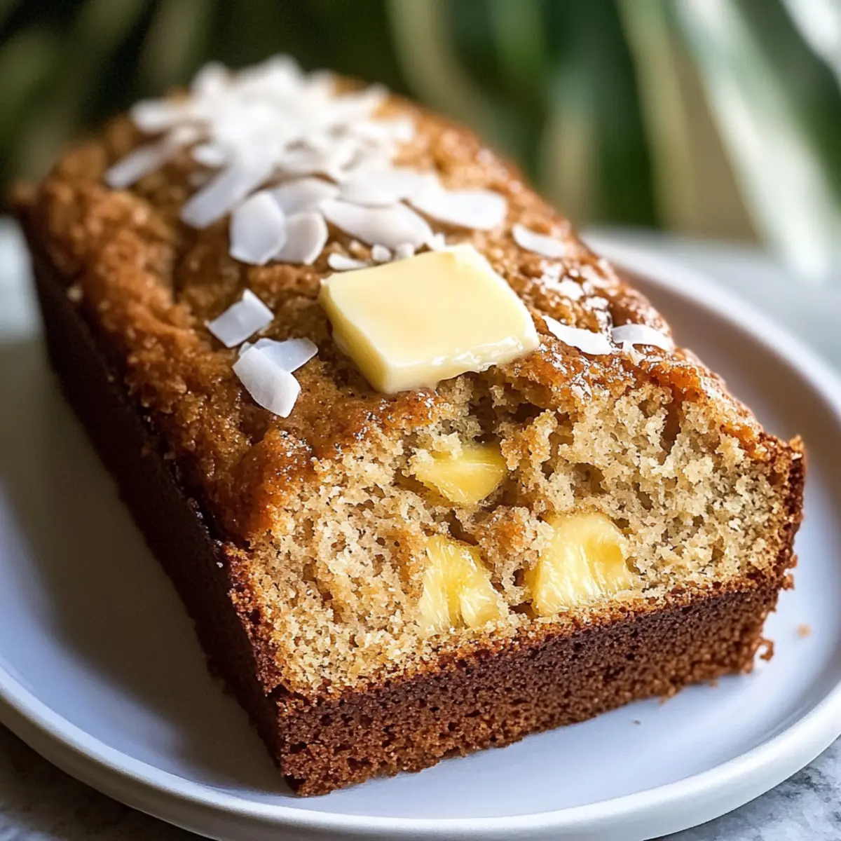 Tropisches hawaiianisches Bananenbrot mit Kokosnuss und Ananas