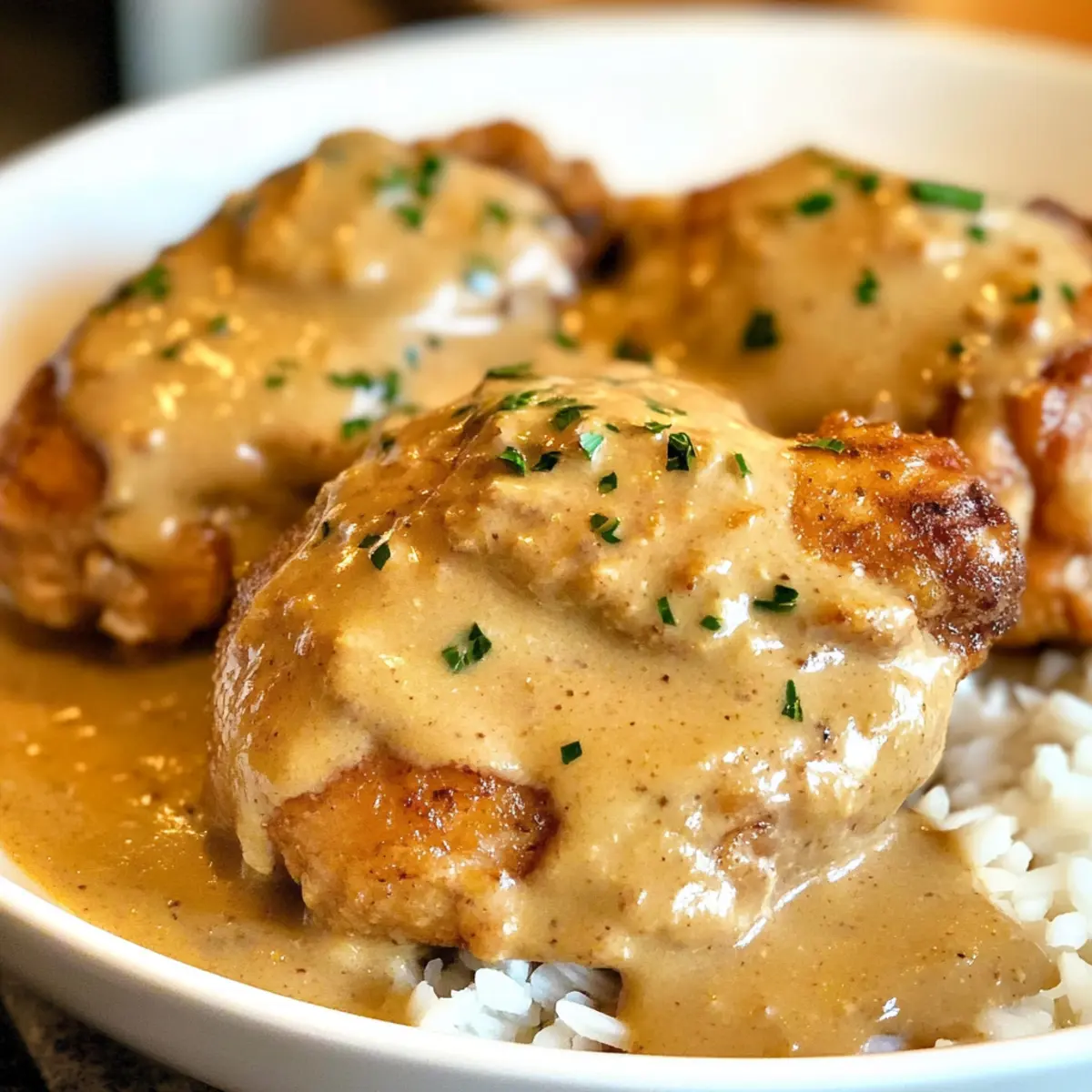 „Kann ich dir von einem perfekten Abendessen erzählen?“ fragte mein Freund, während er an einem Stück Brötchen knabberte. An diesem Tisch, umgeben von Freunden und guter Laune, träumte ich von Überbackenes Hähnchen, der köstlichen Hausmannskost, die immer einen Platz in meinem Herzen hat. Mit zartem, saftigem Hähnchen, das in einer cremigen, würzigen Soße badet, ist dieses Gericht weit mehr als nur ein schnelles Abendessen – es ist ein Gericht, das Erinnerungen weckt und Familien zusammenbringt. Und das Beste daran? Es ist unkompliziert und benötigt nur eine Pfanne! Egal, ob für hektische Wochentage oder gemütliche Sonntagstreffen, dieses Rezept ist ein wahrer Genuss für alle, die homemade-Küche lieben. Bist du bereit, diese köstliche Kreation selbst auszuprobieren? Warum wirst du dieses Rezept lieben? Einfachheit: Die Zubereitung ist kinderleicht und benötigt nur eine Pfanne, perfekt für hektische Abende. Würzige Cremigkeit: Die Kombination aus zartem Hähnchen und einer reichhaltigen, cremigen Soße macht jeden Bissen zu einem Genuss. Familienfreundlich: Dieses Gericht bringt Jung und Alt zusammen und sorgt für strahlende Gesichter am Tisch. Vielfältig: Ob mit selbstgemachtem Brot oder Kürbis-Spätzle, es lässt sich wunderbar variieren! Zeitersparnis: Schnelle Zubereitung ohne lange Wartezeiten – ideal für einen köstlichen Feierabend. Komfort auf jedem Teller: Überbackenes Hähnchen ist die Definition von Gemütlichkeit und wird deine Gäste begeistern! Überbackenes Hähnchen Zutaten Für das Hähnchen Hähnchenbrust – Zart und saftig; ideal für die cremige Soße. Olivenöl – Verleiht beim Anbraten eine goldene Farbe; kann auch durch Pflanzenöl ersetzt werden. Koscheres Salz – Hebt die Aromen hervor; ein Hauch mehr sorgt für Geschmack. Schwarzer Pfeffer – Fügt eine milde Schärfe hinzu; alternativ kannst du weißen Pfeffer verwenden. Für die Soße Sahne – Macht die Soße cremig und reichhaltig; kann durch Milch ersetzt werden, für eine leichtere Version. Frischkäse – Verleiht der Soße eine tolle Konsistenz; eignet sich auch gut für Variationen mit Kräutern. Knoblauchpulver – Gibt der Soße Tiefe und Geschmack; frischer Knoblauch ist ebenfalls möglich. Zwiebelpulver – Für einen feinen Zwiebelgeschmack; frische Zwiebeln benötigen etwas längere Kochzeit. Paprika – Sorgt für eine schöne Farbe und leicht rauchige Note; geräuchertes Paprikapulver kann ebenfalls verwendet werden. Für die Käsekruste Geriebener Käse – Schmelzender Käse sorgt für die köstliche Kruste; eine Mischung aus verschiedenen Käsesorten erhöht den Geschmack. Semmelbrösel – Für einen knackigen Belag; kann durch glutenfreie Brösel ersetzt werden, um allergikerfreundlich zu sein. Optional Frische Kräuter – Petersilie oder Schnittlauch sorgen für einen frischen Kick bei der Präsentation; kannst du nach Belieben hinzufügen. Dieses Überbackenes Hähnchen Rezept wird deine Liebsten begeistern und ist die perfekte Hausmannskost für gemütliche Zusammenkünfte! Step-by-Step Instructions für Überbackenes Hähnchen Step 1: Hähnchen vorbereiten Nehme die Hähnchenbrust aus dem Kühlschrank und lasse sie 30 Minuten bei Zimmertemperatur ruhen. Dies hilft, dass das Überbackenes Hähnchen gleichmäßiger gart. Heize den Ofen auf 180°C vor, während du die anderen Zutaten vorbereitest. Step 2: Panade vorbereiten Mische in einer großen Schüssel das Koscheres Salz, den schwarzen Pfeffer, das Knoblauchpulver, das Zwiebelpulver und die Paprika. Füge die Hähnchenbrust hinzu und wende sie, bis sie gleichmäßig in der Gewürzmischung bedeckt ist. Diese Panade sorgt für zusätzlichen Geschmack und eine schöne Kruste. Step 3: Hähnchen anbraten Erhitze in einer großen Pfanne 2 Esslöffel Olivenöl bei mittlerer bis hoher Hitze. Lege die gewürzte Hähnchenbrust in die Pfanne und brate sie 5 bis 7 Minuten pro Seite an, bis sie goldbraun ist. Dies gibt dem Überbackenes Hähnchen eine köstliche Basis und verhindert, dass es trocken wird. Step 4: Soße zubereiten Nehme das angebratene Hähnchen aus der Pfanne und stelle es beiseite. Füge bei Bedarf etwas mehr Olivenöl hinzu und rühre 2 Esslöffel Mehl ein. Koche es 1 bis 2 Minuten, bis es leicht bräunlich wird, und gieße dann die Sahne unter Rühren hinzu, um Klumpen zu vermeiden. Step 5: Käsekruste erstellen Füge 200g Frischkäse und ggf. frische Kräuter zur Soße hinzu und rühre weiter, bis alles gut kombiniert ist. In der Zwischenzeit die Hähnchenbrust wieder in die Pfanne legen und mit einer großzügigen Menge geriebenem Käse und Semmelbröseln bedecken. Step 6: Überbacken im Ofen Decke die Pfanne mit einem Deckel ab oder verwende Aluminiumfolie, um die Feuchtigkeit zu halten. Stelle die Pfanne in den vorgeheizten Ofen und lasse das Überbackenes Hähnchen 20 bis 25 Minuten backen, bis der Käse geschmolzen und die Oberfläche goldbraun ist. Step 7: Servieren und genießen Sobald das Überbackenes Hähnchen fertig ist, nimm es aus dem Ofen und lasse es kurz ruhen. Serviere es heiß mit Beilagen wie Kartoffelpüree oder gedämpftem Gemüse und genieße die köstliche Kombination aus saftigem Hähnchen und cremiger Soße! Lagerungstipps für Überbackenes Hähnchen Raumtemperatur:: Überbackenes Hähnchen sollte nicht länger als 2 Stunden bei Raumtemperatur stehen gelassen werden, um die Lebensmittelsicherheit zu gewährleisten. Kühlschrank:: Bewahre Reste in einem luftdichten Behälter im Kühlschrank auf, wo sie bis zu 3 Tage frisch bleiben. Einfrieren:: Für eine längere Haltbarkeit kannst du Überbackenes Hähnchen portionsweise einfrieren; es hält sich bis zu 2 Monate. Verpacke es gut in Folie oder einem Gefrierbeutel. Wiedererwärmung:: Die Reste sollten bei 180°C im Ofen für 20 Minuten oder in der Mikrowelle für etwa 3-5 Minuten erwärmt werden, bis sie durchgehend heiß sind. Meal Prep für Überbackenes Hähnchen Überbackenes Hähnchen eignet sich hervorragend f