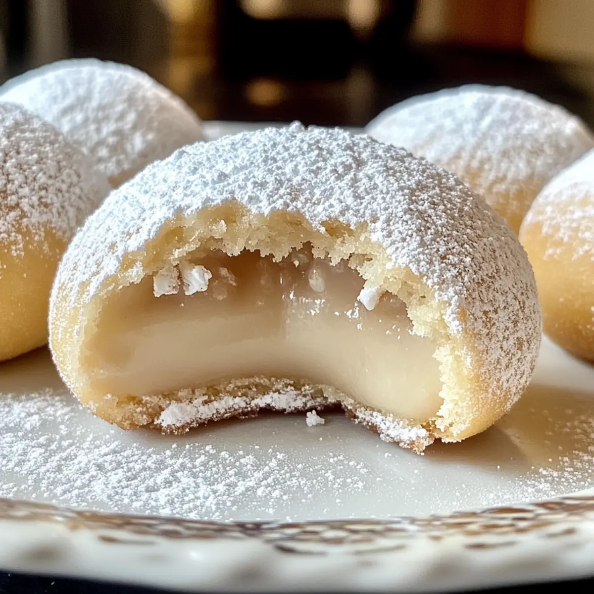 Wenn ich an die Feiertage denke, kommen mir sofort Bilder von duftenden Plätzchen und fröhlicher Stimmung in den Sinn. Diese Vanillekipferl-Kugeln mit Marzipan und Nougat bringen genau dieses festliche Gefühl in Ihre Küche. Sie sind nicht nur ein wahrer Gaumenschmaus, sondern auch unglaublich vielseitig – perfekt für alle, die beim Backen gerne experimentieren und ihre ganz eigenen Variationen kreieren möchten. Ob als süßes Naschwerk für die Familie oder als liebevolles Geschenk für Freunde, diese Kugeln sind immer ein Hit! Leicht vorzubereiten und ideal, um im Voraus gebacken zu werden, machen sie jede Weihnachtsfeier zu einem besonderen Erlebnis. Wer kann da schon widerstehen? Lassen Sie uns gemeinsam in die Welt der Vanillekipferl-Kugeln eintauchen! Warum sind diese Vanillekipferl-Kugeln besonders? Festliche Freude: Diese Vanillekipferl-Kugeln mit Marzipan und Nougat bringen nicht nur süßen Genuss, sondern auch festliche Stimmung in Ihr Zuhause. Vielseitigkeit pur: Sie können verschiedene Nüsse oder Füllungen verwenden, um jedes Mal eine neue Version zu kreieren, die Ihre Lieben begeistert. Einfaches Rezept: Mit nur wenigen, leicht erhältlichen Zutaten und einfachen Schritten gelingt dieses Rezept auch Anfängern mühelos. Ideal zum Verschenken: Diese kleinen Köstlichkeiten eignen sich hervorragend als liebevolles Geschenk – perfekt für die Weihnachtszeit! Zeitersparnis: Sie lassen sich im Voraus zubereiten und können in einem luftdichten Behälter bis zu einer Woche lang aufbewahrt werden. So haben Sie immer eine süße Überraschung parat! Vanillekipferl-Kugeln Zutaten Diese köstlichen Vanillekipferl-Kugeln mit Marzipan und Nougat werden Ihre Familie und Freunde begeistern! Für den Teig Butter – Fügt Reichtum und Textur hinzu. Alternativen: Pflanzliche Butter für vegane Varianten. Zucker – Süßt den Teig und hebt die Aromen hervor. Vanilleschote – Dient als Geschmacksgeber und Aromaquelle für eine festliche Note. Eigelb – Bindemittel, sorgt für eine seidige Textur. Gemahlene Mandeln – Fördert die Zartheit. Alternativen: Haselnüsse oder Walnüsse. Mehl – Gibt Struktur und Stabilität für die Kugeln. Backpulver – Lockerungsmittel, das für die perfekt fluffigen Kugeln sorgt. Für die Füllung Nuss-Nougat – Köstliche Füllung, die der Kugel eine schokoladige Überraschung verleiht. Marzipan – Süße Füllung, die für einen einzigartigen Geschmack sorgt. Für die Oberfläche Zucker und Puderzucker – Ideale Mischung für die Oberflächenbeschichtung und den letzten Schliff. Schritt-für-Schritt-Anleitung für Vanillekipferl-Kugeln mit Marzipan und Nougat Step 1: Teig vorbereiten Die Butter, den Zucker und das Mark einer Vanilleschote in einer großen Schüssel schaumig schlagen, bis die Masse luftig und hell ist. Dies kann etwa 5 Minuten dauern. Füge anschließend die Eigelbe hinzu und verrühre alles gut, bis eine homogene Masse entsteht. Dies bildet die Basis für deine köstlichen Vanillekipferl-Kugeln. Step 2: Trockene Zutaten hinzufügen In einer separaten Schüssel die gemahlenen Mandeln, das Mehl und das Backpulver gut vermischen. Gib diese Mischung nach und nach zu der Butter-Ei-Masse und knete alles mit den Händen zu einem glatten, leicht klebrigen Teig. Achte darauf, dass der Teig nicht zu fest wird, um zarte Kugeln zu gewährleisten. Step 3: Teig ruhen lassen Wickle den Teig in Klarsichtfolie und lege ihn für etwa 30 Minuten in den Kühlschrank. Dies hilft, den Teig zu festigen und erleichtert das Formen der Kugeln später. Während der Kühlzeit kannst du die Vorbereitungen für die Füllungen treffen und den Ofen auf 160°C vorheizen. Step 4: Füllungen vorbereiten Schneide den Nuss-Nougat in kleine Stücke (etwa 1 cm groß) und forme das Marzipan ebenso in gleich große Stücke. Diese werden die süße Überraschung in deinen Vanillekipferl-Kugeln sein. Stelle sicher, dass die Stücke gleichmäßig sind, damit sie beim Backen gleichmäßig garen. Step 5: Kugeln formen Teile den gekühlten Teig in gleich große Portionen und forme jede Portion zu einer kleinen Kugel. Drücke mit dem Daumen eine Mulde in die Mitte jeder Kugel und fülle sie mit einem Stück Nuss-Nougat sowie einem Marzipanstück. Schließe die Kugel sorgfältig, sodass die Füllung gut eingepackt ist. Step 6: Backen Lege die geformten Kugeln auf ein mit Backpapier ausgelegtes Backblech und achte darauf, genügend Abstand zwischen ihnen zu lassen. Backe die Vanillekipferl-Kugeln für etwa 18 Minuten im vorgeheizten Ofen, bis sie goldbraun sind. Achte darauf, dass sie leicht fest, aber nicht zu hart werden. Step 7: Zuckern und Abkühlen Nimm die Kugeln aus dem Ofen und lasse sie kurz abkühlen, bevor du sie in eine Mischung aus Zucker und Puderzucker wälzt. Diese Verzierung verleiht den Vanillekipferl-Kugeln nicht nur einen süßen Geschmack, sondern auch ein schönes Aussehen. Lasse sie auf einem Gitterrost vollständig abkühlen, bevor du sie servierst oder aufbewahrst. Tipps für die besten Vanillekipferl-Kugeln • Feuchte Hände: Verwende leicht angefeuchtete Hände, um das Formen der Vanillekipferl-Kugeln zu erleichtern und ein Kleben zu verhindern. • Teigkonsistenz: Achte darauf, dass der Teig nicht zu fest wird. Ein leicht klebriger Teig sorgt für zarte Kugeln mit einer angenehmen Textur. • Genügend Abstand: Platziere die Kugeln mit ausreichend Abstand auf dem Backblech, damit sie beim Backen gleichmäßig garen und nicht zusammenkleben. • Backzeit im Blick: Überwache die Backzeit sorgfältig; die Kugeln sollten goldbraun sein, aber nicht zu hart werden, um die perfekte Zartheit zu erreichen. • Zuckern nach dem Backen: Wälze die abgekühlten Kugeln in Zucker und Puderzucker für einen köstlichen und ansprechenden Look. Vanillekipferl-Kugeln Variationen Lassen Sie Ihrer Kreativität freien Lauf und passen Sie dieses köstliche Rezept nach Ihrem Geschmack an! Nuss-Variationen: Ersetzen Sie die gemahlenen Mandeln durch Haselnüsse oder