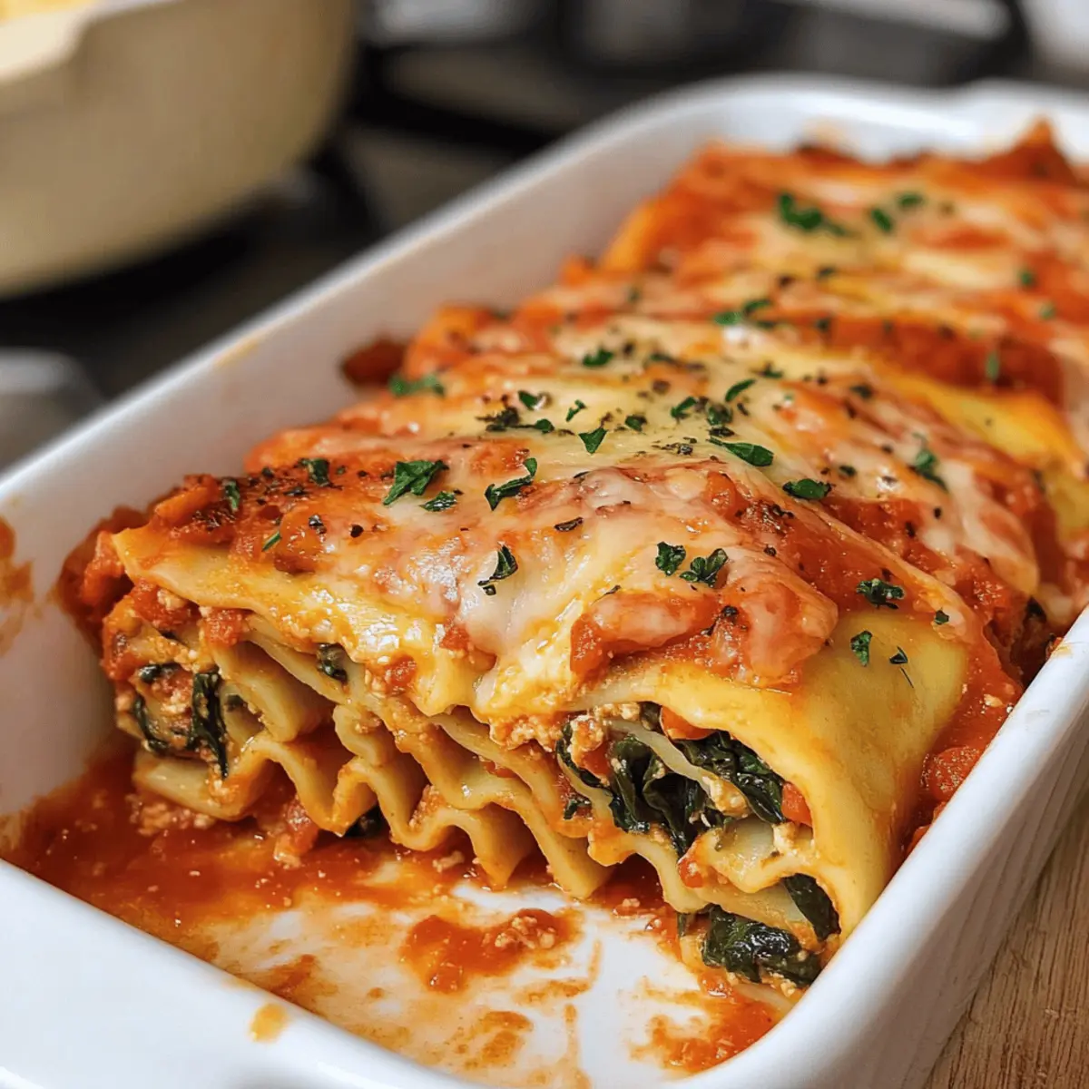 Während ich in meiner Küche stehe und den köstlichen Duft von frisch gekochter Marinara Sauce einatme, bekomme ich sofort Lust auf ein herzhaftes, aber dennoch leichtes Gericht. Diese Veganen Lasagne Rollen sind eine perfekte Möglichkeit, ein geschmackvolles, fleischfreies Wochenende zu feiern. Mit einer unwiderstehlichen Füllung aus cremigem Hummus, frischem Spinat und saftigen Pilzen sind diese Lasagne Rollen nicht nur schnell zubereitet, sondern auch ein echter Publikumsmagnet. Ideal für alle, die auf der Suche nach einer gesunden und nahrhaften Mahlzeit sind, diese leckeren Rollen bieten die perfekte Balance zwischen Genuss und Wohlbefinden. Seid ihr bereit, die italienische Küche auf pflanzliche Weise zu entdecken? Warum sind diese Lasagne Rollen einzigartig? Einzigartiger Genuss: Die Vegane Lasagne Rollen kombinieren frische Zutaten und köstliche Aromen, die jeden Gaumen erfreuen. Schnell und einfach: Dank der klaren Anweisungen gelingt dieses Gericht auch Anfängern mühelos. Vielseitigkeit: Ob mit verschiedenen Gemüsesorten oder Gewürzen – jeder kann die Füllung nach seinem Geschmack anpassen. Nachhaltiger Genuss: Genieße eine vollwertige Mahlzeit, die nicht nur gesund ist, sondern auch eine tolle Option für eure nächste gesellige Runde darstellt. Harmonische Textur: Die Kombination aus cremigem Hummus und zartem Teig sorgt für ein unwiderstehliches Mundgefühl, das an traditionelle italienische Lasagne erinnert. Diese Vegane Lasagne Rollen bieten eine köstliche Möglichkeit, pflanzliche Küche zu genießen, ohne auf Geschmack verzichten zu müssen! Vegane Lasagne Rollen Zutaten • Entdecke die köstlichen Zutaten für deine Veganen Lasagne Rollen. Für die Füllung Öl – Ideal zum Anbraten der Gemüse, kann durch Gemüsebrühe ersetzt werden, um die Kalorien zu reduzieren. Zwiebel – Sorgt für Süße und Tiefe im Geschmack; alternativen wie Schalotten sind möglich. Knoblauch – Verleiht ein aromatisches Flair; sowohl frischer als auch pulverisierter Knoblauch sind verwendbar. Champignons – Fügen Umami und Textur hinzu; Zucchini oder Paprika sind gute Alternativen, falls dir Pilze nicht zusagen. Sojasoße – Verstärkt die herzhaften Noten; benutze Tamari für eine glutenfreie Variante. Frischer Spinat – Bringt Farbe und Nährstoffe; gefrorenen Spinat verwenden und gut abtropfen lassen. Hummus – Dient als cremige Füllung; kannst du gekauft oder selbstgemacht verwenden, füge extra Gewürze für mehr Geschmack hinzu. Gemahlenen Kreuzkümmel – Optional; bringt Wärme und Tiefe, kann aber durch geräucherte Paprika ersetzt oder weggelassen werden. Paprika – Für eine süße Note und Farbe; jede bevorzugte Gewürzmischung ist als Ersatz möglich. Zitronensaft – Bringt Helligkeit in die Füllung; Essig ist auch eine gute Alternative. Für die Lasagne Rollen Lasagne-Nudeln – Halten die Rollen zusammen; verwende normale oder glutenfreie Nudeln. Marinara Sauce – Dient als Basis für die Schichten; deine Lieblings-Tomatensauce kann verwendet werden. Veganer Käse – Für das Topping; kann aus dem Geschäft oder hausgemacht sein. Gewürze Salz und Pfeffer – Verbessern die Gesamtgeschmack; nach persönlichem Geschmack anpassen. Diese Veganen Lasagne Rollen bieten nicht nur eine Fülle an Aromen, sondern sind auch eine großartige Möglichkeit, eine gesunde Mahlzeit zu genießen! Schritt-für-Schritt-Anleitung für Vegane Lasagne Rollen Step 1: Nudeln kochen Bring in einem großen Topf gesalzenes Wasser zum Kochen und füge die Lasagne-Nudeln hinzu. Koche sie gemäß den Anweisungen auf der Verpackung, bis sie al dente sind. Dies dauert in der Regel etwa 8–10 Minuten. Nachdem die Nudeln fertig sind, gieße sie ab und lasse sie kurz abkühlen, damit sie nicht zusammenkleben. Step 2: Marinara-Basis vorbereiten Verteile ein Drittel der Marinara Sauce gleichmäßig auf dem Boden einer Auflaufform. Diese Schicht dient als Basis für deine Veganen Lasagne Rollen und sorgt dafür, dass sie beim Backen nicht ankleben. Setze die Form zur Seite, während du die Füllung vorbereitest. Step 3: Gemüse sautieren Erhitze in einer Pfanne bei mittlerer Hitze etwas Öl. Füge die gewürfelte Zwiebel, gehackten Knoblauch und die geschnittenen Champignons hinzu und sauté alles für etwa 4 Minuten, bis das Gemüse weich ist und duftend wirkt. Dann füge den frischen Spinat und die Sojasauce hinzu und koche für weitere 30–60 Sekunden, bis der Spinat verwelkt ist. Step 4: Füllung mischen Nehme die Pfanne vom Herd und füge den Hummus zur Gemüse-Mischung hinzu. Mische alles gut durch, bis die Füllung cremig und gleichmäßig ist. Schmecke die Mischung mit optionalen Gewürzen wie Kreuzkümmel oder Paprika ab, um den Geschmack zu intensivieren. Step 5: Rollen zusammensetzen Lass die Nudeln etwas abkühlen und lege sie auf eine saubere Arbeitsfläche aus. Verteile gleichmäßig die Hummus-Gemüse-Mischung auf jeder Nudel und rolle sie von einer kurzen Seite her fest auf. Lege die gefüllten Rollen mit der Nahtseite nach unten in die vorbereitete Auflaufform. Step 6: Überbacken und servieren Gieße die restliche Marinara Sauce über die Lasagne Rollen und streue den veganen Käse gleichmäßig darüber. Backe die Auflaufform in einem vorgeheizten Ofen bei 180°C (356°F) für 20–25 Minuten, bis der Käse vollständig geschmolzen und die Rollen heiß sind. Lass die Veganen Lasagne Rollen kurz abkühlen, bevor du sie servierst. Tipps für die besten Veganen Lasagne Rollen Nudeln nicht kleben lassen: Füge beim Kochen der Lasagne-Nudeln etwas Öl ins Wasser hinzu oder trenne die gekochten Nudeln sofort nach dem Abgießen. So bleiben sie schön getrennt. Füllung perfekt abstimmen: Achte darauf, dass die Hummus-Füllung nicht zu flüssig ist, um ein Auslaufen zu verhindern. Verwende gegebenenfalls einen Verdicker oder passe die Hummus-Menge an. Frische Kräuter nutzen: Für zusätzlichen Geschmack kannst du frische Kräuter wie Basilikum oder Oregano zur Füllung