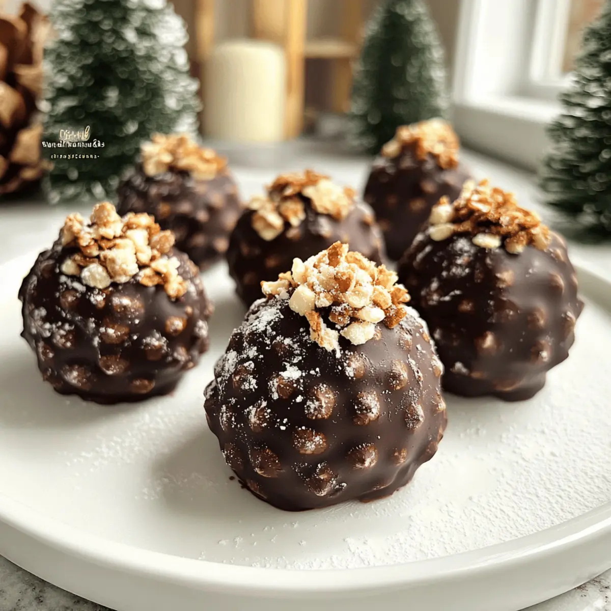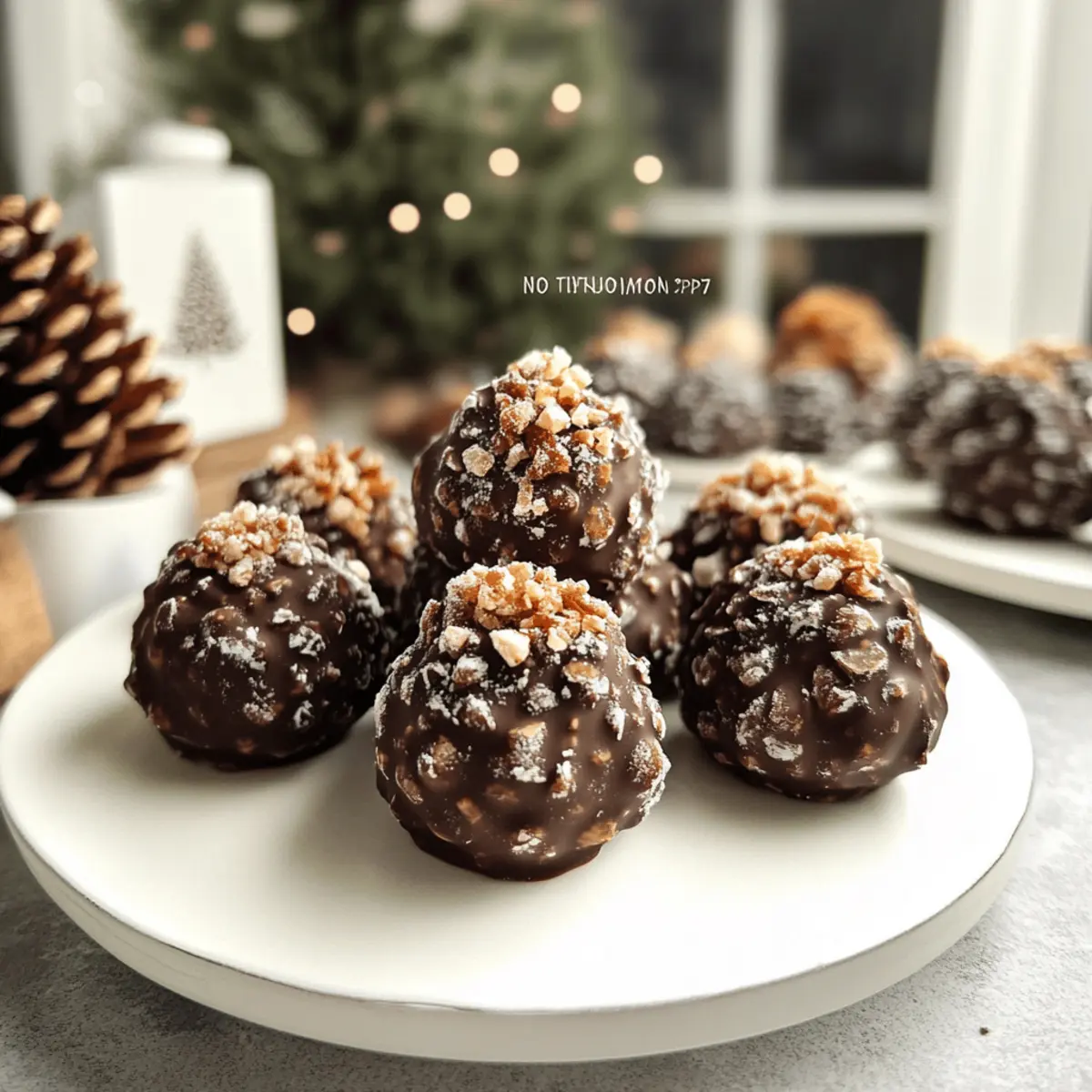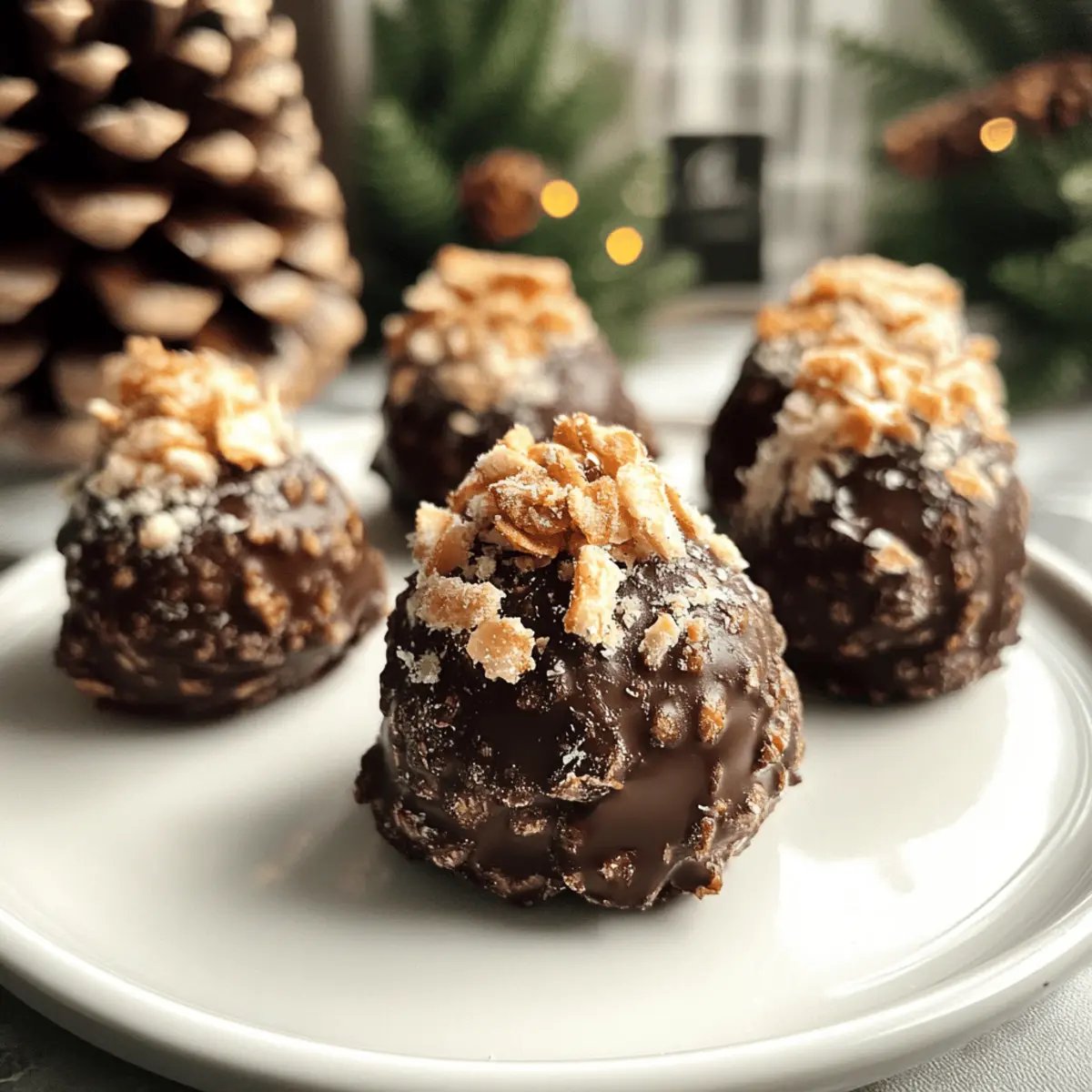 Der köstliche Duft von Schokolade und Weihnachten liegt in der Luft, während ich meine Küche in ein Fest der Aromen verwandle. Diese vegane Tannenzapfentrüffel sind nicht nur ein absoluter Hingucker, sie sind auch so einfach zubereitet – perfekt für alle unter euch, die in der hektischen Vorweihnachtszeit nach einer schnellen und köstlichen Leckerei suchen. Mit nur fünf einfachen Zutaten sind diese keine gebackenen Leckerbissen nicht nur vegan, sondern auch glutenfrei und zaubern ein Lächeln auf jedes Gesicht. Egal, ob ihr sie für ein festliches Zusammenkommen oder als essbares Geschenk zubereitet, sie sind der ideale Genuss, um die Weihnachtsstimmung zu verbreiten. Seid ihr bereit, euer eigenes kleines Meisterwerk zu kreieren? Warum sind diese Trüffel so besonders? Einfachheit: Mit nur fünf Zutaten ist die Zubereitung ein Kinderspiel und benötigt keine besonderen Backfähigkeiten. Festlicher Genuss: Diese Trüffel sind nicht nur lecker, sondern auch ein echter Hingucker auf jedem Tisch. Vielseitigkeit: Du kannst die Rezeptur ganz nach deinen Vorlieben anpassen, sei es mit verschiedenen Keksen oder Aromen. Köstlicher Geschmack: Die Kombination aus cremiger Füllung und knackiger Schokoladenschicht wird dich und deine Gäste begeistern! Perfekt für Geschenke: Verpacke die Trüffel in eine hübsche Geschenkverpackung und zaubere jedem ein Lächeln ins Gesicht – ideal für deinen nächsten Festtagsbesuch oder als süße Aufmerksamkeit! Entdecke auch unsere Tipps zu für weitere vegane Köstlichkeiten! Vegane Tannenzapfentrüffel Zutaten • Diese köstlichen Trüffel sind nicht nur einfach zuzubereiten, sie sind auch vollständig vegan und glutenfrei! Für die Basis Schokoladenkekse – sorgen für die Süße und die Struktur; veganer Bourbon-Kekse können ebenfalls verwendet werden. Veganer Frischkäse – verleiht Cremigkeit; als Alternative kann Cashew- oder Kokoscreme verwendet werden. Kakaopulver – intensiviert den Schokoladengeschmack; achte darauf, dass es ungesüßt ist, um das beste Ergebnis zu erzielen. Für die Hülle Dunkle Schokolade (vegan) – die Schicht, die für den reichhaltigen Geschmack sorgt; jede vegane Schokoladentafel funktioniert hier. Für die Dekoration Vegane Cornflakes – sorgen für die Struktur und das Aussehen der Tannenzapfen; glutenfreie Cornflakes sind ebenfalls möglich. Verwöhne dich selbst und deine Lieben mit diesen festlichen, veganen Tannenzapfentrüffeln! Schritt-für-Schritt-Anleitung für Vegane Tannenzapfentrüffel Step 1: Backblech vorbereiten Lege ein Backblech mit Backpapier aus, um die fertigen Trüffel leicht abheben zu können. Stelle sicher, dass das Papier gut haftet, damit die Trüffel beim Kühlen nicht haften bleiben. Dieser Schritt kostet nur wenige Minuten und ist entscheidend für eine einfache Verarbeitung. Step 2: Kekse zerbröseln Zerkleinere die Schokoladenkekse entweder in einer Küchenmaschine zu feinen Krümeln oder gib sie in einen Gefrierbeutel und nutze einen Nudelholz, um sie zu zerdrücken. Achte darauf, dass die Krümel sehr fein sind, damit sie sich gut mit den anderen Zutaten vermischen. Dies dauert etwa 5 Minuten. Step 3: Zutaten vermengen Gib die Keksbrösel in eine große Rührschüssel und füge den veganen Frischkäse sowie das Kakaopulver hinzu. Mische die Zutaten gründlich mit einem Löffel oder der Hand, bis eine gleichmäßige, klebrige Masse entsteht, die Form annimmt. Dies sollte ungefähr 3-5 Minuten dauern. Step 4: Trüffel formen Nimm etwa 20 g der Mischung und forme sie zu kleinen Kugeln. Drücke die oberen Teile leicht zusammen, um die ovale Pinecone-Form zu kreieren. Lege die geformten Trüffel auf das Backblech und achte darauf, genügend Platz zwischen ihnen zu lassen, damit sie nicht zusammenkleben. Step 5: Cornflakes anbringen Drücke vorsichtig die veganen Cornflakes rund um die Trüffel, beginnend von der Basis nach oben. Nutze kleinere Flakes für die Oberseite, um das Aussehen eines echten Tannenzapfens zu imitieren. Dies gibt den Trüffeln die gewünschte Textur und dauert etwa 10 Minuten. Step 6: Trüffel kühlen Stelle das Backblech mit den geformten Trüffeln in das Gefrierfach und lasse sie für etwa 25 Minuten fester werden. Achte darauf, dass sie gut durchgekühlt sind, bevor du sie in Schokolade tauchst, damit die Cornflakes haften bleiben. Step 7: Schokolade schmelzen Bring die vegane dunkle Schokolade in einer Schüssel über einem Wasserbad oder in der Mikrowelle in kurzen Intervallen (20 Sekunden) zum Schmelzen. Rühre die Schokolade regelmäßig um, bis sie vollständig flüssig und glatt ist. Dies sollte insgesamt etwa 5 Minuten in Anspruch nehmen. Step 8: Trüffel eintauchen Nimm jede gekühlte Trüffel und tauche sie vollständig in die geschmolzene Schokolade, lasse überschüssige Schokolade abtropfen. Platziere die getauchten Trüffel auf das vorbereitete Backblech zurück und achte darauf, dass sie gut abgesetzt sind. Step 9: Eintrocknen lassen Lasse die Schokolade an den Trüffeln für 5-10 Minuten im Gefrierfach fest werden, bis sie eine feste Schicht hat. Dies sorgt dafür, dass die Trüffel ihre Form behalten und die Schokolade gut hält. Step 10: Staubzucker bestäuben Bestäube die fertigen veganen Tannenzapfentrüffel leicht mit Puderzucker, um den Schnee-Look zu schaffen. Dies sieht nicht nur festlich aus, sondern bringt auch eine süße Note in jedes Bisschen. Bereite sie vor dem Servieren vor, um sicherzustellen, dass sie frisch aussehen. Was passt gut zu Veganen Tannenzapfentrüffeln? Die perfekte Ergänzung zu diesen köstlichen Trüffeln schafft ein harmonisches Geschmackserlebnis, das deine Festtagsfeier bereichert. Cremige Vanilleeis: Schmilzt sanft und bietet eine süße Frische, die zu den schokoladigen Aromen der Trüffel hervorragend harmoniert. Ein heißer Kaffee dazu rundet das Dessert grandios ab. Obstsalat: Fruchtige Frische bringt Abwechslung und Leichtigkeit ins Spiel, perfekt um auch den süßen traditionellen Aromen eine ge