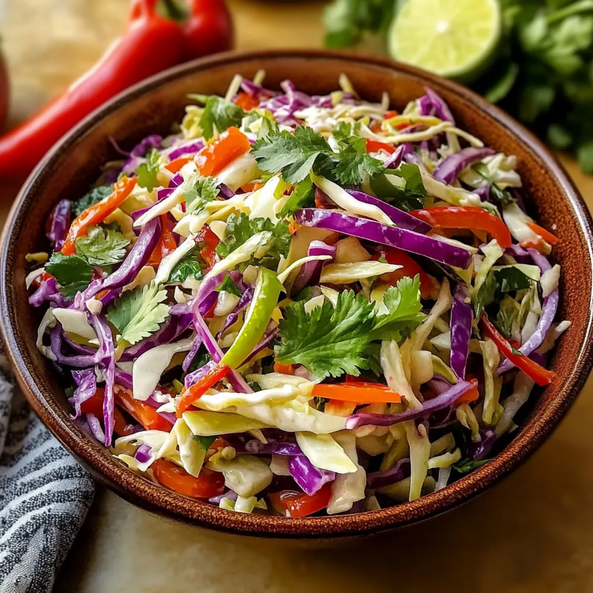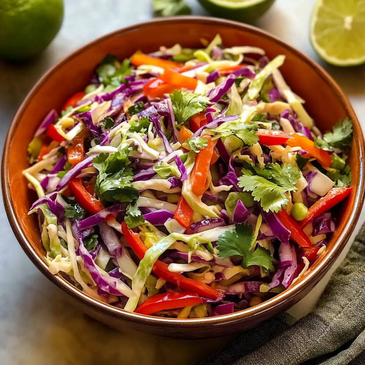 Ein frischer und knackiger veganer mexikanischer Krautsalat mit Koriander-Limetten-Dressing, perfekt für eure nächste Grillparty.