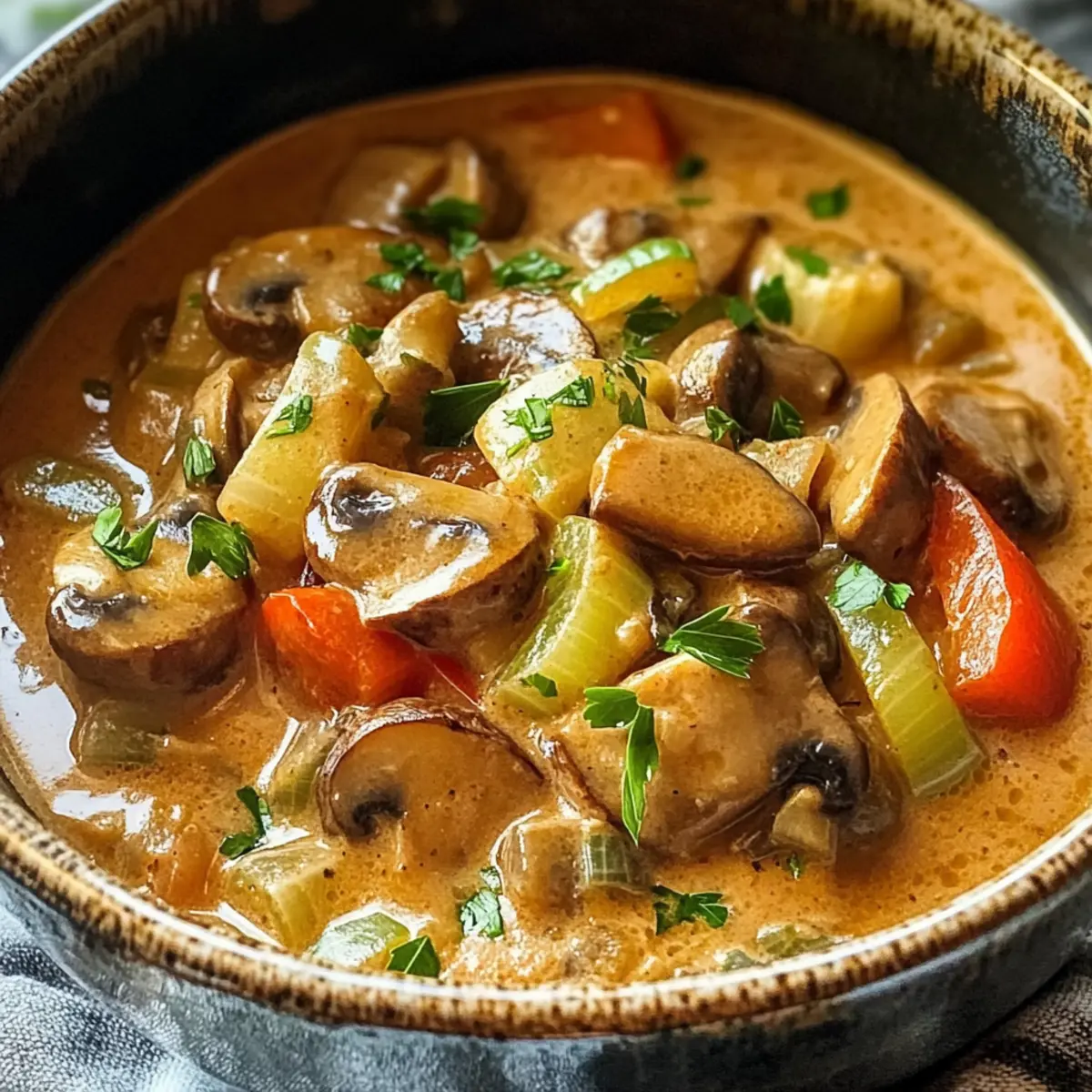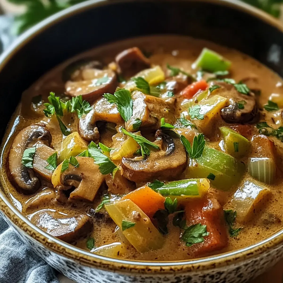Während ich in meiner Küche stehe und die zarten Aromen von Lauch und Pilzen aufsteige, kann ich nicht anders, als an das gemütliche Abendessen mit meiner Familie zu denken. Unser Hauptdarsteller heute ist das Vegane Lauch-Pilz-Gulasch – ein Gericht, das nicht nur die Herzen, sondern auch die Mägen erfüllt. Jeder Löffel dieses herzlichen Eintopfs ist eine Umarmung für die Seele, vollgepackt mit frisch geschnittenem Gemüse und einer cremigen, pflanzlichen Sauce, die leicht zubereitet werden kann. Perfekt für alle, die das hektische Fast Food hinter sich lassen und stattdessen etwas Gesundes und Beruhigendes suchen. Wer könnte da schon widerstehen? Bist du bereit, in die Welt des veganen Komforts einzutauchen? Warum ist dieses Gulasch so besonders? Herzhaftes Veganes Lauch-Pilz-Gulasch ist der Inbegriff von Komfortessen, das selbst die wählerischsten Esser erfreut. Einfach zuzubereiten benötigt es nur grundlegende Kochkenntnisse, was es ideal für Familienabende macht. Reiche Aromen aus frischen Zutaten wie Lauch und Pilzen verleihen dem Gericht einen vollmundigen Geschmack, der sowohl sättigend als auch gesund ist. Vielseitig einsetzbar kann es leicht an deine Vorlieben angepasst werden, etwa durch das Hinzufügen anderer Gemüsesorten oder das Variieren der Kräuter. Zeitersparnis ist ein weiterer Pluspunkt – in kurzer Zeit hast du ein köstliches Gericht, das die ganze Familie am Tisch versammelt. Die cremige Konsistenz wird alle begeistern und das Gulasch zum neuen Lieblingsgericht machen! Veganes Lauch-Pilz-Gulasch Zutaten • Perfekt für dein nächstes Familienessen! Für das Gemüse Lauch – bringt einen milden, süßen Zwiebelgeschmack und sollte gut gewaschen werden, um den Schmutz zu entfernen. Champignons – verleihen Umami-Tiefe; dünn geschnitten garen sie schneller, andere Pilzsorten wie Shiitake können verwendet werden. Zwiebeln – unverzichtbar für die Geschmacksbasis; gerne mit Schalotten für einen süßeren Geschmack ersetzen. Knoblauch – sorgt für eine aromatische Fülle; frischer Knoblauch verbessert den Geschmack, aber auch Knoblauchpulver ist eine schnelle Lösung. Karotten – bringen natürliche Süße und Farbe; können durch andere Wurzelgemüse wie Pastinaken ersetzt werden. Paprika – sorgt für Knackigkeit und Süße; jede Farbe ist geeignet; Zucchini kann auch eine gute Alternative sein. Für die Basis Gemüsebrühe – bildet die flüssige Grundlage; wähle eine natriumarme Variante für einen ausgewogenen Geschmack; selbstgemachte Brühe hebt den Geschmack. Pflanzliche Sahne (z.B. Hafer- oder Sojasahne) – sorgt für Cremigkeit ohne Milchprodukte; Kokosmilch kann verwendet werden, verändert aber den Geschmack. Olivenöl – nützlich zum Anbraten; Avocadoöl ist eine gute Alternative. Für die Würze Tomatenmark – verstärkt die Reichhaltigkeit und Tiefe des Geschmacks; kann für eine leichtere Variante weggelassen werden. Paprikapulver – verleiht Farbe und milde Schärfe; geräuchertes Paprikapulver gibt zusätzlichen Charakter. Getrockneter Thymian und Oregano – bieten herzhafte Noten; frische Kräuter können verwendet werden, aber die Mengen anpassen. Salz und Pfeffer – wichtig für die Würze; nach dem Geschmack anpassen, je nach Brühe und verwendetem Tomatenmark. Frische Petersilie – für die Garnierung und einen frischen Abschluss; kann durch Schnittlauch oder Koriander ersetzt werden. Schritt-für-Schritt-Anleitung für Veganes Lauch-Pilz-Gulasch Step 1: Gemüse vorbereiten Zuerst die Lauch gründlich waschen, um Sand zwischen den Schichten zu entfernen, und in dünne Ringe schneiden. Anschließend die Zwiebeln, Karotten und Paprika würfeln sowie den Knoblauch fein hacken. Ein scharfes Küchenmesser erleichtert dir die Arbeit und sorgt dafür, dass alle Gemüsestücke gleichmäßig geschnitten sind. Step 2: Pilze vorbereiten Die Champignons in gleichmäßige Scheiben schneiden, um eine konsistente Garzeit sicherzustellen. Je dünner du die Pilze schneidest, desto schneller garen sie und entfalten ihren köstlichen Umami-Geschmack. Achte darauf, die geschnittenen Pilze auf einem Teller zu platzieren, um sie später einfach zur Hand zu haben. Step 3: Basis anbraten In einem großen Topf das Olivenöl bei mittlerer Hitze erhitzen. Füge die gewürfelten Zwiebeln und den gehackten Knoblauch hinzu und brate sie etwa 3-5 Minuten an, bis sie weich und leicht translucent sind. Dies bildet die aromatische Grundlage für dein Veganes Lauch-Pilz-Gulasch. Step 4: Gemüse hinzufügen Nun die vorbereiteten Karotten, Lauch und Paprika zu den Zwiebeln in den Topf geben. Rühre die Mischung gut um und lass die Gemüse für etwa 5-7 Minuten anbraten, bis sie weich werden. Achte darauf, dass die Gemüse gleichmäßig garen und nicht anbrennen, indem du sie regelmäßig umrührst. Step 5: Pilze einarbeiten Füge die vorbereiteten Champignons in den Topf und koche sie für weitere 5 Minuten, bis sie ihre Flüssigkeit freigeben und weich werden. Achte darauf, dass sie zart, aber nicht matschig werden. Das ist entscheidend für die Textur deines Gulaschs. Step 6: Würzen Jetzt das Tomatenmark, Paprikapulver, Thymian und Oregano einrühren. Diese Gewürze verleihen deinem Veganen Lauch-Pilz-Gulasch eine kräftige Geschmackstiefe. Lass die Mischung gut durchziehen und koche sie für 2 Minuten, damit sich die Aromen entfalten können. Step 7: Flüssigkeiten kombinieren Gieße nun die Gemüsebrühe und die pflanzliche Sahne in den Topf. Erhöhe die Hitze, bis die Mischung zum Kochen kommt. Durch das Hinzufügen der Flüssigkeiten erhält dein Gulasch eine cremige und reichhaltige Konsistenz, die ideal für gemütliche Abende ist. Step 8: Simmern Die Hitze reduzieren, den Topf abdecken und etwa 15 Minuten köcheln lassen, bis das Gemüse zart ist. Gelegentlich umrühren, um ein Anbrennen zu verhindern. Achte darauf, dass die Aromen gut miteinander verschmelzen und das Gulasch eine dicke Konsistenz erreicht. Step 9: Servieren Das Vegane 