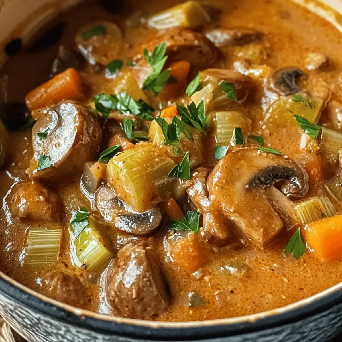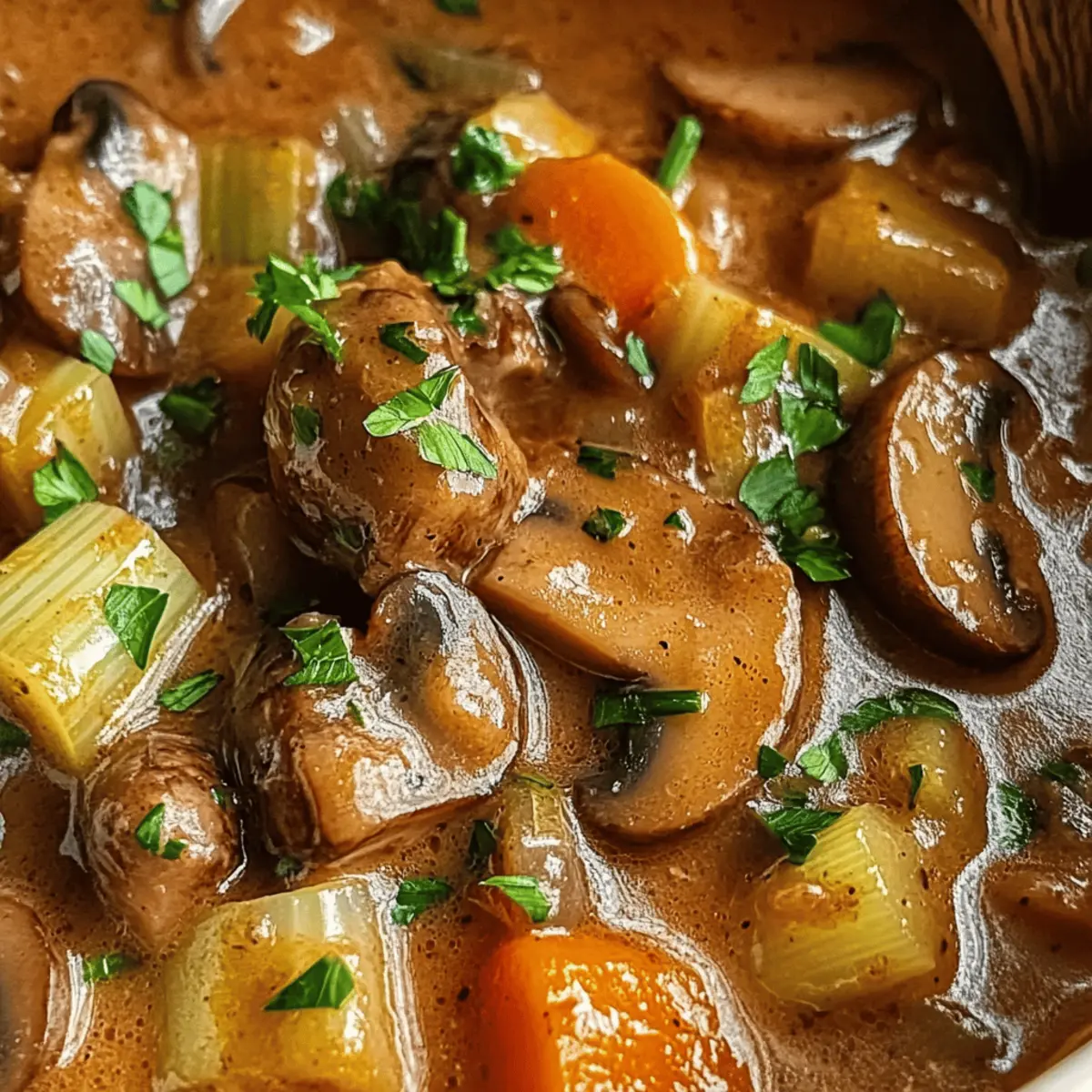 Ein satter Duft durchzog meine Küche, als ich zum ersten Mal mein Veganes Lauch-Pilz-Gulasch zubereitete. Dieses Gericht vereint zarte Lauchstücke und eine Mischung aus aromatischen Pilzen und ist perfekt für kalte Herbstabende. Mit jeder Löffel voll warmem, cremigem Eintopf komme ich nicht nur in den Genuss einer herzhaften Mahlzeit, sondern auch eines wahren Komfortfoods – ganz ohne tierische Produkte! Ob für ein gemütliches Abendessen mit Freunden oder einfach nur für mich selbst, dieses Gulasch ist eine köstliche, nahrhafte Wahl, die im Handumdrehen zubereitet ist. Neugierig, wie sich die verschiedenen Aromen zusammenfügen? Lass uns gleich gemeinsam in die Zubereitung eintauchen! Warum wirst du dieses Gulasch lieben? Wärme und Geborgenheit: Erlebe die Gemütlichkeit des kühlenden Herbstwetters mit einem Gericht, das sowohl sättigend als auch nahrhaft ist. Aromatische Vielfalt: Die Kombination aus Lauch und verschiedenen Pilzen verleiht diesem Gulasch einen tiefen, komplexen Geschmack. Einfache Zubereitung: Mit nur wenigen Schritten und einfachen Zutaten ist dieses Rezept schnell und unkompliziert nachzukochen. Vielseitigkeit: Ob mit frischem Brot oder über Reis serviert, es lässt sich vielfältig genießen. Crowd-Pleaser: Perfekt für gemütliche Abende mit Freunden oder für den eigenen Genuss – jeder wird von diesem veganen Komfortfood begeistert sein! Veganes Lauch-Pilz-Gulasch Zutaten Für das Gemüse: Lauch (Leek) – Verleiht eine milde Zwiebelnote; sowohl weiße als auch grüne Teile verwenden. Pilze (Mushrooms) – 400 g (z. B. Champignons oder Austernpilze); sorgen für einen herzhaften Umami-Geschmack. Zwiebeln (Onions) – Grundstein für den Geschmack; gelbe oder weiße Zwiebeln sorgen für eine angenehme Süße. Knoblauch (Garlic) – Macht das Gericht aromatisch; frisch ist am besten! Karotten (Carrots) – Bringen natürliche Süße und eine schöne Farbe ins Spiel; können durch Petersilienwurzeln ersetzt werden. Paprika (Bell Pepper) – Fügt Süße und Knackigkeit hinzu; jede Farbe ist möglich. Für die Brühe: Gemüsebrühe (Vegetable Broth) – Bildet die Basis des Eintopfs; wähle low-sodium für mehr Kontrolle über den Salzgehalt. Pflanzliche Sahne (Plant-Based Cream) – Sorgt für die cremige Konsistenz; ideal ist z.B. Hafer- oder Sojasahne. Für die Würze: Olivenöl (Olive Oil) – Zum Anbraten; leichtes Öl kann ebenfalls verwendet werden. Tomatenmark (Tomato Paste) – Bringt Tiefe und Reichhaltigkeit ins Gulasch; alternativ kann auch gehackte Tomaten verwendet werden. Paprikapulver (Paprika) – Fügt Wärme und Farbe hinzu; süßes Paprikapulver sorgt für mehr Tiefe. Thymian (Thyme) – Aromatische trockene Kräuter; frischer Thymian ist ebenfalls eine tolle Option. Oregano – Ein weiteres aromatisches Kraut, das gut harmoniert; eine italienische Kräutermischung kann auch verwendet werden. Salz und Pfeffer (Salt and Pepper) – Nach Geschmack; wichtig für das Gesamtaroma. Zum Garnieren: Frische Petersilie (Fresh Parsley) – Für eine frische Note und zur dekorativen Garnitur. Kreiere mit diesen Zutaten ein köstliches und herzhaftes veganes Lauch-Pilz-Gulasch, das nicht nur den Gaumen erfreut, sondern auch dein Herz erwärmt! Schritt-für-Schritt-Anleitung für Veganes Lauch-Pilz-Gulasch Step 1: Gemüse vorbereiten Schneide die Lauchstangen längs auf, wasche sie gründlich und schneide sie in Ringe. Würfle die Zwiebeln, den Knoblauch, die Karotten und den Paprika. Dies schafft eine solide Basis für das Vegane Lauch-Pilz-Gulasch und sorgt für einen ausgewogenen Geschmack. Step 2: Pilze schneiden Schneide die Pilze in die gewünschte Größe; das können Scheiben oder Stücke sein. Achte darauf, dass die Pilze gleichmäßig geschnitten sind, damit sie gleichmäßig garen. Der Umami-Geschmack der Pilze wird das Gulasch enorm bereichern. Step 3: Basis anbraten Erhitze in einem großen Topf 2 Esslöffel Olivenöl bei mittlerer Hitze. Füge die gewürfelten Zwiebeln und den gehackten Knoblauch hinzu und brate sie 3–4 Minuten lang an, bis sie durchscheinend sind. Dieser Schritt sorgt für ein intensives Aroma im Veganen Lauch-Pilz-Gulasch. Step 4: Gemüse kochen Gib die Karotten, den Lauch und den Paprika in den Topf und brate sie 5–7 Minuten lang mit, bis sie leicht weich sind. Achte darauf, regelmäßig umzurühren, damit nichts anbrennt. Diese Kombination wird die Aromen im Gulasch intensivieren. Step 5: Pilze hinzufügen Füge die geschnittenen Pilze in den Topf und lasse sie 5 Minuten mitgaren, bis sie beginnen, Flüssigkeit freizusetzen. Rühre alles gut um, damit sich die Aromen entfalten können und die Pilze zart werden. Step 6: Würzen Rühre das Tomatenmark, das Paprikapulver, den Thymian und den Oregano in das Gemüse. Lasse alles 2–3 Minuten köcheln, damit die Gewürze ihre Aromen entfalten können und sich gut mit den anderen Zutaten verbinden. Step 7: Flüssigkeiten hinzufügen Gieße die Gemüsebrühe und die pflanzliche Sahne in den Topf. Rühre alles gut durch und bringe es zum Kochen. Der Mix sollte gleichmäßig und cremig sein, was das Vegane Lauch-Pilz-Gulasch besonders köstlich macht. Step 8: Simmern Reduziere die Hitze und lasse das Gulasch 15 Minuten lang sanft köcheln, bis das Gemüse zart ist. Achte darauf, gelegentlich umzurühren, um ein Anbrennen zu verhindern. Schmecke das Gericht mit Salz und Pfeffer ab, um den Geschmack zu perfektionieren. Step 9: Servieren Verteile das Vegane Lauch-Pilz-Gulasch auf Schalen und garniere es mit frischer, gehackter Petersilie. Diese frische Note wird das Gericht abrunden und macht es zu einem einladenden Hauptgericht für ein gemütliches Essen. Aufbewahrungstipps für Veganes Lauch-Pilz-Gulasch Kühlschrank: Lagere das Gulasch in einem luftdichten Behälter und es hält sich bis zu 4 Tage frisch. Die Aromen können sich über Nacht intensivieren, was das Gericht noch leckerer macht. Tiefkühler: Das Vegane Lauch-Pilz-Gulasch kann bis zu 3 Monate eingefroren 