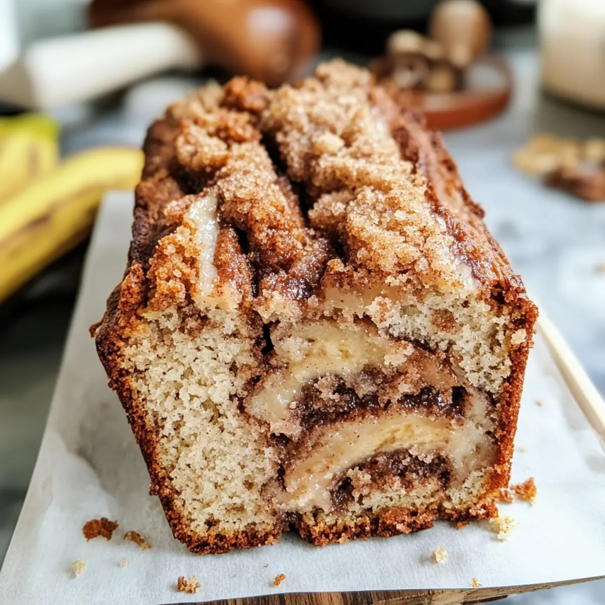 Veganes Zimt-Strudel-Bananenbrot mit Streuseln genießen