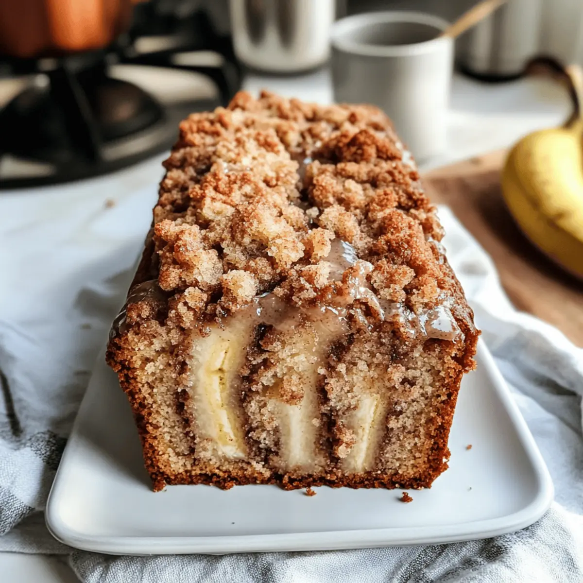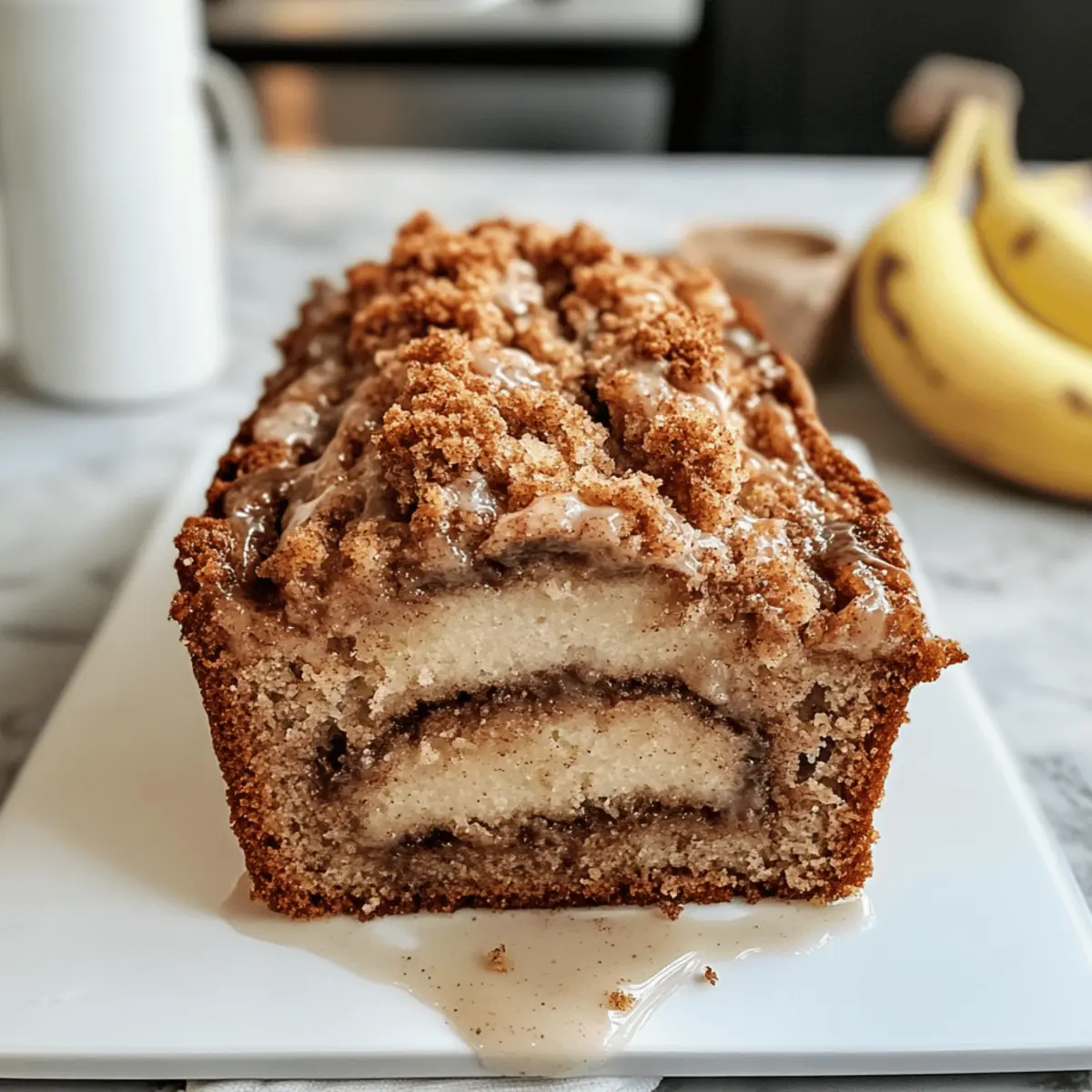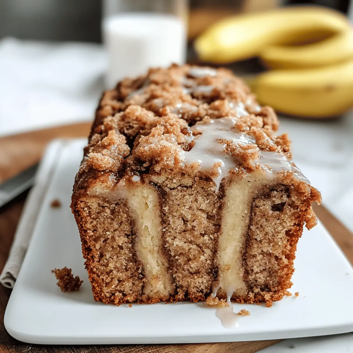Der köstliche Duft von Zimt, der durch die Wohnung zieht, erinnert mich sofort an die gemütlichen Herbst- und Wintertage. Heute möchte ich mit euch das Rezept für ein veganes Zimt-Strudel-Bananenbrot mit Streuseln teilen, das einfach zuzubereiten ist und gleichzeitig ein wahres Geschmackserlebnis bietet. In nur wenigen Schritten könnt ihr dieses feuchte Bananenbrot backen, das nicht nur perfekt als süßes Frühstück, sondern auch als Dessert geeignet ist. Mit seiner liebevollen Zimtschicht und dem knusprigen Streusel-Topping wird es garantiert zum neuen Liebling auf dem Kaffeetisch! Seid ihr bereit für ein Stück Gebäck, das den Komfort von Zuhause sprichwörtlich auf die Teller zaubert? Was macht dieses Rezept besonders? Einfachheit: Die Zubereitung ist denkbar unkompliziert und benötigt nur grundlegende Backkenntnisse. Perfekt für jeden, der ein schnelles Rezept für einen verführerischen Genuss sucht! Reiche Aromen: Die Kombination aus Zimt und reifen Bananen sorgt für ein unvergessliches Geschmackserlebnis, das im Herbst und Winter besonders gut ankommt. Vielseitigkeit: Ob zum Frühstück oder als Dessert, dieses vegane Zimt-Strudel-Bananenbrot mit Streuseln passt zu jedem Anlass und wird garantiert zum Hit bei Familie und Freunden. Wohlfühlfaktor: Der angenehme Duft, der beim Backen entsteht, bringt sofort eine Gemütlichkeit in die Küche, die jedem das Wasser im Mund zusammenlaufen lässt. Zeitersparnis: In weniger als einer Stunde ist das Brot gebacken und bereit, serviert zu werden. Ein perfektes Rezept für alle, die es eilig haben und dennoch nicht auf Genuss verzichten möchten! Entdeckt auch unsere Tipps für weitere leckere Variationen, die ihr mit diesem Rezept ausprobieren könnt, und macht aus jedem Bissen ein besonderes Erlebnis! Veganes Zimt-Strudel-Bananenbrot Zutaten Die perfekten Zutaten für dein Backvergnügen: Allzweckmehl – bildet die Grundlage; für eine glutenfreie Variante kann ein glutenfreies Mehlgemisch verwendet werden. Backpulver – sorgt für das Aufgehen des Brotes; achte darauf, dass es frisch ist für einen hohen Auftrieb. Salz – hebt den Geschmack hervor; verwende Meersalz für ein anderes Mineralprofil. Rapsöl – sorgt für Feuchtigkeit; kann durch geschmolzenes Kokosöl für einen besonderen Geschmack ersetzt werden. Pflanzenmilch – spendet zusätzliche Feuchtigkeit; wähle zwischen Mandel- oder Sojamilch je nach Vorliebe. Zucker – süßt das Brot; brauner Zucker kann für mehr Tiefe verwendet werden. Apfelessig – aktiviert das Backpulver und sorgt für eine schöne Konsistenz; kann durch Zitronensaft ersetzt werden. Vanilleextrakt – verstärkt den Geschmack; optional, aber empfohlen für ein aromatisches Ergebnis. Reife Bananen – liefern Feuchtigkeit und natürliche Süße; verwende 3 mittelgroße, sehr reife Bananen. Zimt-Zucker (Topping) – sorgt für die perfekte Balance aus Süße und Würze; ideal für den Zimt-Strudel-Effekt. Streusel-Topping – bringt eine knackige Textur; kann durch Haferflocken für eine gesündere Option ersetzt werden. Mit diesen hochwertigen Zutaten wird dein veganes Zimt-Strudel-Bananenbrot zum absoluten Genuss! Step-by-Step Instructions für Veganes Zimt-Strudel-Bananenbrot mit Streuseln Step 1: Ofen vorheizen und Backform vorbereiten Heize den Ofen auf 180°C vor und fette eine 20 cm große Kastenform leicht ein. So wird das vegane Zimt-Strudel-Bananenbrot beim Backen gleichmäßig gar und lässt sich später einfach aus der Form lösen. Achte darauf, dass die Form gut gefettet ist, damit das Brot nicht kleben bleibt. Step 2: Trockene Zutaten vermischen In einer großen Schüssel vermischst du das Allzweckmehl, das Backpulver und das Salz gründlich. Diese Mischung bildet die Basis des Teigs für dein veganes Zimt-Strudel-Bananenbrot. Stelle sicher, dass alle Klumpen entfernt sind, damit das Brot gleichmäßig aufgeht und fluffig wird. Step 3: Nasse Zutaten vermengen In einer separaten Schüssel verrührst du das Rapsöl, die Pflanzenmilch, den Zucker, den Apfelessig und optional den Vanilleextrakt. Diese feuchten Zutaten sorgen für die nötige Feuchtigkeit und den aromatischen Geschmack des Bananenbrotes. Rühre alles gut durch, bis eine homogene Masse entsteht. Step 4: Bananen hinzufügen und vermischen Die reifen Bananen zerdrückst du mit einer Gabel in einer kleinen Schüssel, bis sie eine cremige Konsistenz haben. Danach mischst du sie unter die feuchten Zutaten. Achte darauf, dass die Bananen schön reif sind, da sie für die süße und die feuchte Textur des veganen Zimt-Strudel-Bananenbrotes sorgen. Step 5: Trockene und nasse Zutaten kombinieren Gieße die feuchte Mischung in die Schüssel mit den trockenen Zutaten und falte alles vorsichtig zusammen. Mische nur so lange, bis gerade eben alles verbunden ist, um ein Übermischen zu vermeiden. Das sorgt dafür, dass dein Bananenbrot schön locker und leicht bleibt. Step 6: Teig in die Form schichten und Zimt-Zucker hinzufügen Gieße die erste Hälfte des Teigs in die vorbereitete Kastenform. Bestreue dies großzügig mit dem Zimt-Zucker, der die charakteristische Zimtschicht erzeugt. Diese Zimt-Zucker-Schicht wird später einen köstlichen, süßen Strudel-Effekt im Inneren des Bananenbrotes schaffen. Step 7: Restlichen Teig einfüllen und vermischen Füge die restliche Teigmischung hinzu und verwende eine Gabel, um den Teig sanft zu swirl-n, damit ein hübsches Marmormuster entsteht. Achte darauf, nicht zu viele Bewegungen zu machen, um die Zimt-Zucker-Schicht nicht vollständig zu vermischen, die den gewünschten Strudel-Effekt erzeugen soll. Step 8: Streuselschicht hinzufügen und backen Bereite die Streuseln vor und streue sie gleichmäßig auf die Oberseite des Teigs. Schiebe die Form dann in den vorgeheizten Ofen und backe das vegane Zimt-Strudel-Bananenbrot 50-70 Minuten lang. Es ist fertig, wenn ein Zahnstocher in die Mitte gesteckt, sauber herauskommt und das Brot eine goldbraune Farbe hat. Step 9: Abkühlen und Gl