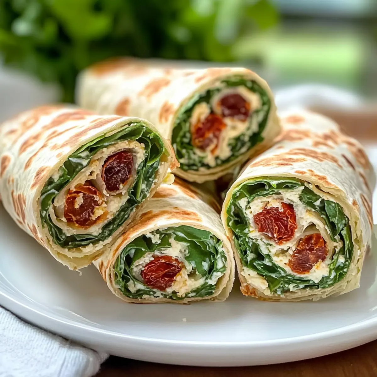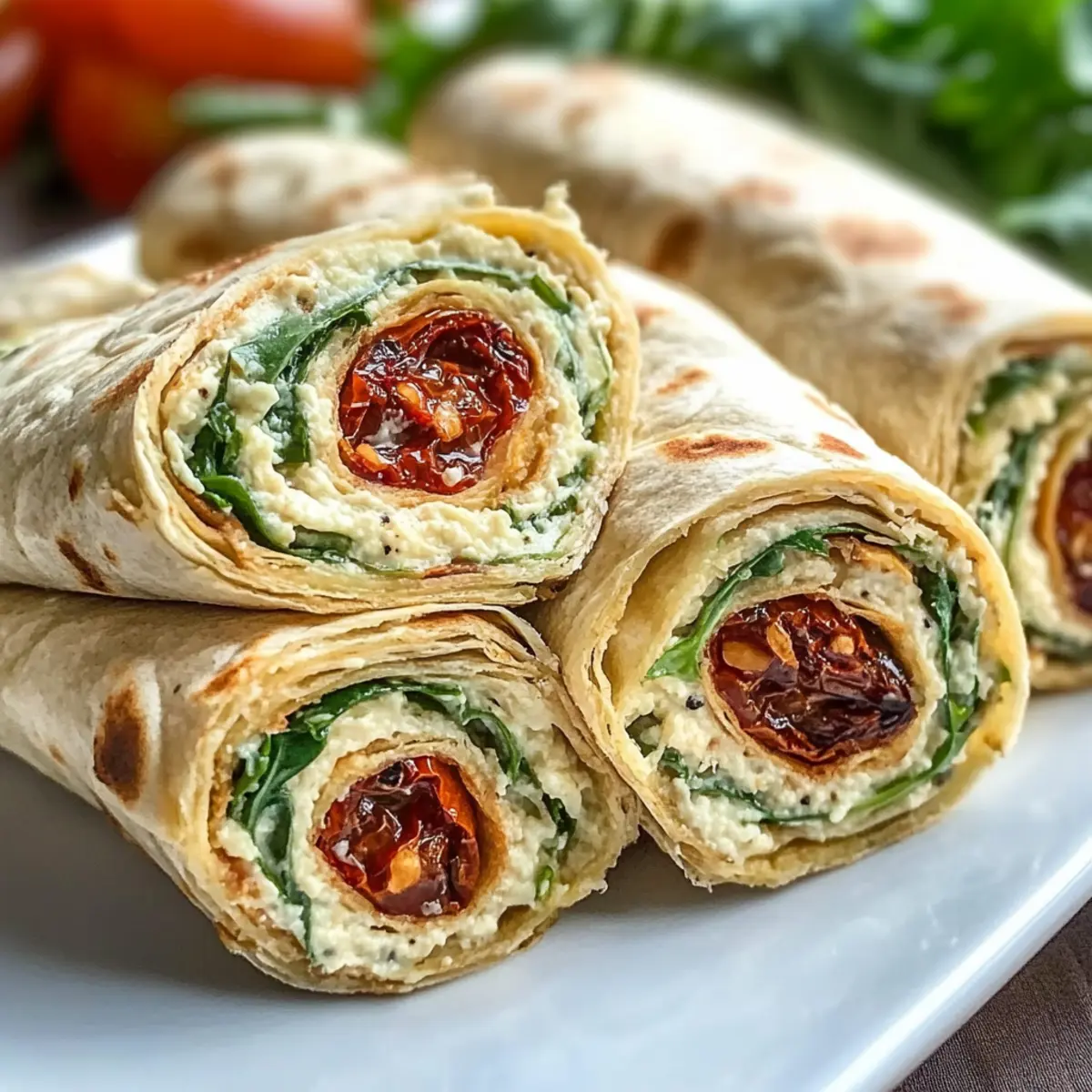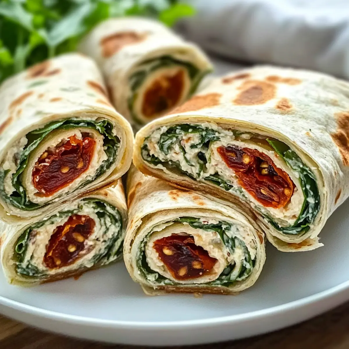 Wusstest du, dass ein einfaches Rezept das Herz eines jeden Buffets erobern kann? Diese cremigen vegetarischen Wrap Röllchen mit Rucola und Tomaten sind nicht nur ein Genuss für die Augen, sondern auch für die Sinne. Sie sind in nur 15 Minuten zubereitet und eignen sich perfekt als Fingerfood für Parties oder ein gemütliches Picknick. Die Kombination aus frisch, würzigem Rucola und den aromatischen, getrockneten Tomaten bringt eine spritzige Leichtigkeit auf den Tisch, die selbst Fast-Food-Fans umstimmen könnte. Diese Wraps sind nicht nur schnell zubereitet und glutenfrei, sondern auch ideal, um sie im Voraus vorzubereiten. Welche Überraschungen steckst du gerne in deine Wraps? Warum sind vegetarische Wraps so beliebt? Frische und Crunch: Unsere vegetarischen Wrap Röllchen mit Rucola und Tomaten sind eine wahre Geschmacksexplosion, die sowohl knackig als auch cremig daherkommt. Schnelle Zubereitung: In nur 15 Minuten zubereitet, sind sie die ideale Wahl für spontane Partys oder Snack-Momente. Vielseitigkeit: Mit der Möglichkeit, glutenfreie Tortillas oder verschiedene Füllungen zu verwenden, anpassen, versprechen sie Genuss für jeden. Gesunde Wahl: Reich an Vitaminen und Aromen, bieten sie einen gesunden Boost – perfekt für alle, die Fast Food hinter sich lassen wollen. Überzeuge dich selbst, warum diese Wraps der Star deines nächsten Buffets sein sollten! Vegetarische Wrap Röllchen Zutaten • Diese Zutaten sind die Basis für deine köstlichen vegetarischen Wrap Röllchen mit Rucola und Tomaten. Für die Füllung Rucola – sorgt für eine pfeffrige Frische; alternativ kann auch Spinat verwendet werden, wenn du es milder magst. Getrocknete Tomaten in Öl – verleihen den Wraps eine reichhaltige, würzige Tiefe; achte darauf, dass sie gut abgetropft sind. Frischkäse – sorgt für Cremigkeit und hält die Wraps zusammen; für eine vegane Option kann pflanzlicher Frischkäse verwendet werden. Knoblauchzehen – verstärken den Geschmack; weglassen, wenn du milde Aromen bevorzugst oder Kinder zu Tisch sind. Bio-Zitrone (Abrieb) – bringt Helligkeit und Frische; frischer Zitronensaft kann für einen zusätzlichen Citrus-Kick verwendet werden. Salz & Pfeffer – für die individuelle Geschmacksnote. Weizen-Tortillas – dienen als Basis der Wraps; glutenfreie Tortillas sind eine tolle Alternative für besondere Ernährungsbedürfnisse. Für die Garnitur (optional) Zusätzlicher Rucola – für die Garnitur; sorgt für einen frischen Touch und sieht ansprechend aus. Dips wie Hummus oder Joghurt – perfekt zum Servieren und ergänzen den Geschmack der Wraps. Diese Zutaten machen deine vegetarischen Wrap Röllchen mit Rucola und Tomaten zu einem perfekten Buffet-Highlight! Step-by-Step Instructions for Vegetarische Wrap Röllchen mit Rucola und Tomaten Step 1: Rucola vorbereiten Wasche den Rucola gründlich unter kaltem Wasser, um Schmutz und Rückstände zu entfernen. Entferne die dicken Stiele und schüttle das Wasser ab, dann hacke die Blätter grob. Gib den gehackten Rucola in eine große Rührschüssel – so wird er die Basis deiner leckeren vegetarischen Wrap Röllchen. Step 2: Tomaten schneiden Nimm die getrockneten Tomaten aus dem Öl und lasse sie gut abtropfen. Schneide die Tomaten in kleine Stücke und füge sie der Schüssel mit dem Rucola hinzu. Diese Kombination sorgt für eine geschmackvolle Füllung, die deinen Wrap Röllchen mit Rucola und Tomaten eine aromatische Note verleiht. Step 3: Füllung mischen Füge den weich gewordenen Frischkäse in die Schüssel hinzu. Drücke die Knoblauchzehen hinein und reibe die Schale der Bio-Zitrone darüber. Würze die Mischung mit einer Prise Salz und Pfeffer. Vermenge alles gründlich, bis eine cremige und gleichmäßige Füllung entsteht, die später perfekt auf die Tortillas gestrichen werden kann. Step 4: Wraps zusammenstellen Lege eine Weizen-Tortilla auf eine saubere Arbeitsfläche und verteile die Füllung gleichmäßig darauf. Achte darauf, einen Rand von etwa 2 cm zu lassen, damit die Füllung nicht beim Rollen herausquillt. Rolle die Tortilla nach dem Auftragen der Füllung straff auf und wickle sie in Frischhaltefolie. Lass die Wraps für mindestens 1 Stunde im Kühlschrank ruhen, damit sie fest werden. Step 5: Schneiden und servieren Nach der Kühlzeit entferne die Frischhaltefolie von den Wrap Röllchen. Nutze ein scharfes Messer, um jede Röllchen in etwa 8 gleichmäßige Stücke zu schneiden. Arrangiere die Stücke auf einer Servierplatte und garniere sie optional mit zusätzlichem Rucola. Serviere die vegetarischen Wrap Röllchen mit Rucola und Tomaten kalt, ideal für Buffets und Partys. Expert Tips für Vegetarische Wrap Röllchen Frische Zutaten: Verwende frische und hochwertige Zutaten für den besten Geschmack. Alte oder abgelaufene Produkte können das Aroma der vegetarischen Wrap Röllchen beeinträchtigen. Gleichmäßiger Aufstrich: Streiche die Füllung gleichmäßig auf die Tortilla, damit der Wrap beim Rollen nicht bricht. Ein Rand von etwa 2 cm hilft, die Füllung an Ort und Stelle zu halten. Kühlzeit beachten: Lass die Wraps nach dem Rollen mindestens 1 Stunde im Kühlschrank ruhen. So setzen sich die Aromen und die Wraps behalten ihre Form. Gesunde Alternativen: Experimentiere mit glutenfreien Tortillas oder füge verschiedene grünen wie Spinat hinzu, um die vegetarischen Wrap Röllchen nach deinem Geschmack anzupassen. Vorsicht beim Knoblauch: Achte beim Hinzufügen von Knoblauch darauf, ihn gut zu zerkleinern, um einen gleichmäßigen Geschmack zu erzielen. Alternativ kannst du ihn einfach weglassen, wenn du es milder magst. Lagerungstipps für Vegetarische Wrap Röllchen mit Rucola und Tomaten Kühlschrank: Bewahre die Wraps gut verpackt in Frischhaltefolie im Kühlschrank auf, um sie bis zu 2 Tage frisch zu halten. Achte darauf, dass sie luftdicht verpackt sind, um ein Austrocknen zu vermeiden. Tiefkühltruhe: Du kannst die vorbereiteten Wraps auch einfrieren. Wickel sie in Frisch