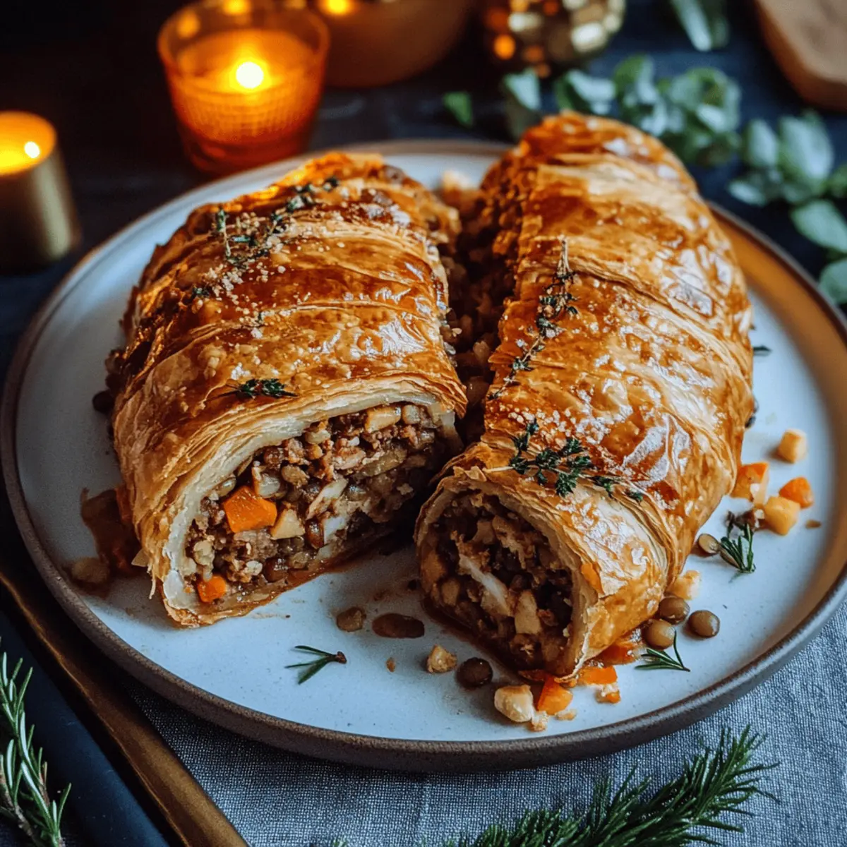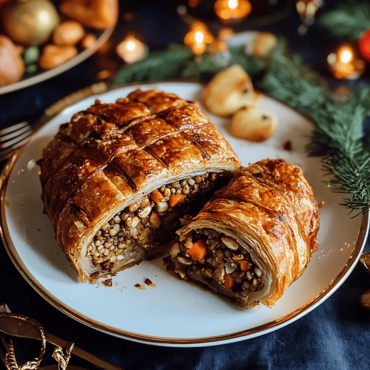 Wenn der Duft von frisch gebackenem Teig durch die Küche zieht und die Vorfreude auf das Festessen in der Luft liegt, weiß ich, dass es Zeit für meinen vegetarischen Nussbraten im Knusperteig ist. Diese köstliche, herzhaften Hauptspeise vereint eine aromatische Mischung aus Nüssen, Linsen und Gewürzen und bietet eine wunderbare Alternative zu klassischen Fleischgerichten. Perfekt für festliche Anlässe, lässt sich dieser Nussbraten im Voraus zubereiten, sodass ihr Stress am großen Tag vermeiden könnt. Egal, ob ihr ihn als Hauptgericht oder in Begleitung von Rotkohl und Kartoffeltürmchen serviert, er wird sicher alle begeistern und an eurer festlichen Tafel strahlen. Seid ihr bereit, die geheimen Zutaten zu entdecken, die dieses Gericht so besonders machen? Warum wird dieser Nussbraten begeistern? Einfachheit: Der Rezeptprozess ist unkompliziert und erfordert nur grundlegende Kochkenntnisse. Herzhafter Geschmack: Die Kombination aus Nüssen und Linsen verleiht diesem Gericht eine reichhaltige, nahrhafte Note, die selbst Fleischliebhaber überzeugt. Flexibel: Ihr könnt die Nüsse oder Gewürze nach euren Vorlieben anpassen, wodurch der Nussbraten niemals langweilig wird. Zeitersparnis: Ideal zum Vorbereiten, dieser Nussbraten kann bereits einen Tag vorher zubereitet werden – perfekt, um den Stress am Festtag zu minimieren! Festlich: Mit einer goldenen, knusprigen Kruste ist dieser Nussbraten ein echter Hingucker auf jedem festlichen Tisch. Entdeckt auch, wie ihr ihn wunderbar mit Entenkeulen mit Ofengemüse kombinieren könnt! Vegetarischer Nussbraten Zutaten Hier sind die unerlässlichen Zutaten, um euren perfekten vegetarischen Nussbraten im Knusperteig zuzubereiten! Für die Füllung Nüsse – Eine Mischung aus Walnüssen und Haselnüssen sorgt für besten Geschmack und Textur. Linsen – Grüne oder braune Linsen liefern die nötige Proteine und helfen, die Füllung zusammenzuhalten. Haferflocken – Rollhafer nehmen Feuchtigkeit auf und geben der Füllung Struktur. Gemüse (z.B. Karotten, Zwiebeln) – Diese verbessern den Geschmack und die Saftigkeit der Füllung; ersetzt sie je nach Verfügbarkeit. Gewürze (z.B. Salz, Pfeffer, Muskatnuss) – Passt die Gewürzmenge nach eurem persönlichen Geschmack an. Für den Teig Butter – Sie sorgt für eine knusprige Oberfläche; kann durch Margarine für eine vegane Variante ersetzt werden. Mehl – Vollkornmehl ist eine gesunde Alternative und der Hauptbestandteil für den knusprigen Teig. Frischkäse – Sorgt für eine fluffige Textur im Teig; alternativ kann auch eine pflanzliche Option verwendet werden. Mit diesen Zutaten zaubert ihr einen unwiderstehlichen Vegetarischer Nussbraten, der sich fantastisch für festliche Anlässe eignet! Schritt-für-Schritt-Anleitung für Vegetarischer Nussbraten im Knusperteig Step 1: Zutaten vorbereiten Erhitze eine Pfanne bei mittlerer Hitze und röste die Nüsse für etwa 5–7 Minuten, bis sie goldbraun und aromatisch sind. Währenddessen würfle die Zwiebeln und Karotten und brate sie in einer separaten Pfanne in etwas Öl für 5 Minuten, bis sie weich und leicht gebräunt sind. Step 2: Linsen kochen Koche die Linsen in einem Topf mit gesalzenem Wasser für 20–25 Minuten, bis sie weich sind, aber nicht zerfallen. Gieße die Linsen anschließend ab und lasse sie kurz abkühlen, während du die anderen Zutaten vorbereitest. Step 3: Füllung kombinieren In einer großen Schüssel vermische die gerösteten Nüsse, die sautierten Zwiebeln und Karotten, die abgekühlten Linsen, Haferflocken und die Gewürze gut miteinander. Achte darauf, dass alle Zutaten gleichmäßig vermengt sind, damit der Vegetarischer Nussbraten den optimalen Geschmack erhält. Step 4: Teig vorbereiten In einer separaten Schüssel mische das Mehl, die Butter und den Frischkäse, bis ein glatter Teig entsteht. Knete den Teig für ein paar Minuten, bis er geschmeidig ist, und forme ihn dann zu einer Kugel. Lasse den Teig für 30 Minuten im Kühlschrank ruhen, damit er fester wird. Step 5: Nussbraten zusammensetzen Rolle den gekühlten Teig auf einer leicht bemehlten Arbeitsfläche zu einem Rechteck aus. Platziere die Füllung in der Mitte des Teigs und falte die Teigränder darüber, um die Füllung zu umschließen. Drücke die Ränder fest zusammen, um sicherzustellen, dass der Vegetarischer Nussbraten gut verbunden ist. Step 6: Backen Heize den Ofen auf 180°C vor und lege den gefüllten Nussbraten auf ein mit Backpapier ausgelegtes Blech. Backe ihn für etwa 45 Minuten, bis der Teig goldbraun und knusprig ist. Achte darauf, dass er gleichmäßig gebräunt wird; drehe das Blech bei Bedarf während des Backens. Step 7: Sauce zubereiten Bereite während des Backens eine Gemüsebrühe vor, die du später als Sauce servieren kannst. Koche dazu Gemüsebrühe in einem kleinen Topf mit deinen Lieblingskräutern und lasse sie 15 Minuten köcheln, um den Geschmack zu intensivieren. Diese Sauce ergänzt den Nussbraten wunderbar. Vegetarischer Nussbraten: Variationen & Alternativen Lass deiner Kreativität freien Lauf und passe diesen vegetarischen Nussbraten nach deinem Geschmack an! Nuss-Austausch: Ersetze Walnüsse durch Pekannüsse für eine süßere Note. Diese Variante bringt einen Hauch von Karamellgeschmack mit sich und sorgt für eine interessante Geschmackstiefe. Dried Fruits: Füge getrocknete Cranberries oder Aprikosen hinzu, um eine fruchtige Süße zu erzeugen. Das sorgt für einen schönen Kontrast zur herzhaften Füllung und eine schöne Farbnote. Würzige Kräuter: Verwende frische Kräuter wie Thymian oder Rosmarin für eine aromatische Note. Das verleiht dem Gericht eine sehr spezielle und befriedigende Tiefe. Vegan: Ersetze Butter mit Margarine und Frischkäse mit einer pflanzlichen Alternative. Diese Anpassungen machen den Nussbraten nicht nur vegan, sondern behalten auch den köstlichen Geschmack. Gewürz-Boost: Experimentiere mit zusätzlichen Gewürzen wie Kreuzkümmel oder Paprika, um dem Nussbraten m