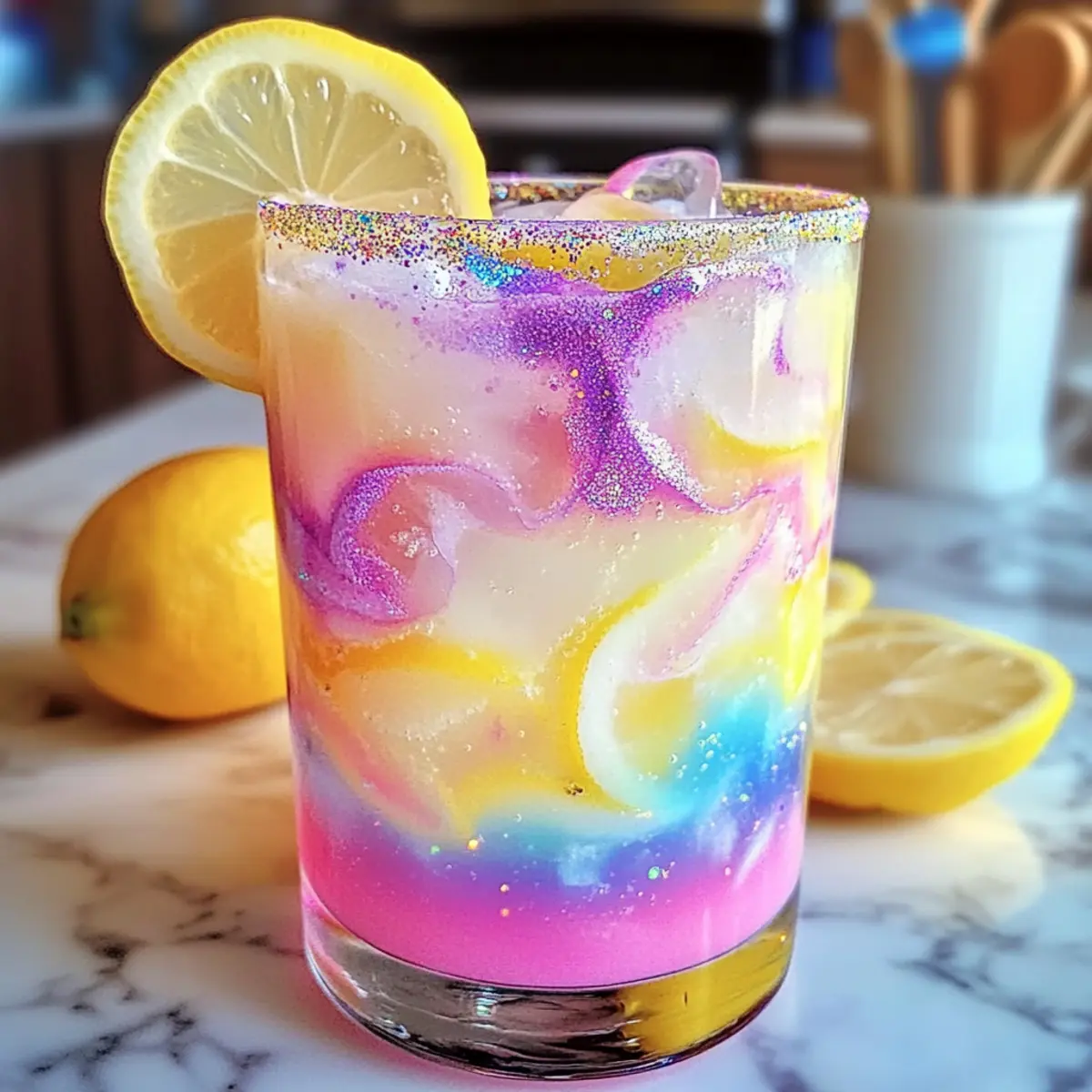 Hast du schon einmal von einem Getränk gehört, das nicht nur erfrischt, sondern auch das Herz eines jeden Party-Gastes höherschlagen lässt? Die Verzauberte Einhorn Limonade ist genau das! Mit ihren pastellfarbigen Schattierungen und dem spritzigen Zitronengeschmack entführt sie uns in eine Welt voller Freude und Magie. Dieses Rezept ist nicht nur kinderleicht zuzubereiten, sondern auch vegan – perfekt für jeden Anlass, von sommerlichen Gartenpartys bis hin zu gemütlichen Nachmittagen. Ich bin mir sicher, dass du mit dieser farbenfrohen Kreation alle begeistern wirst! Bist du bereit, in die Welt der Einhörner einzutauchen und deine eigene magische Limonade zu kreieren? Warum wirst du diese Limonade lieben? Einzigartige Farben: Diese verzauberte Limonade fasziniert mit ihren leuchtenden Pastelltönen, die jede Feier zum Leben erwecken. Einfache Zubereitung: Mit nur wenigen Zutaten und einfachen Schritten kannst du dein eigenes magisches Getränk zaubern, das jeden in Staunen versetzt. Vegan und Erfrischend: Das Rezept ist komplett vegan und bietet eine erfrischende Alternative zu herkömmlichen Getränken – perfekt für alle, die auf pflanzliche Kosten achten. Ideal für Partys: Ob Geburtstag oder Sommerfest, diese Limonade zieht alle Blicke auf sich und bringt die Gäste ins Gespräch – ein echtes Must-Have! Gute Variationsmöglichkeiten: Probiere verschiedene Fruchtaromen oder Farben aus, und entdecke, wie vielseitig du mit der Verzauberte Einhorn Limonade spielen kannst. Verzauberte Einhorn Limonade Zutaten • Bereite dich auf ein magisches Geschmackserlebnis vor! Für die Limonade Frischer Zitronensaft – sorgt für die perfekte Mischung aus spritziger Süße; frisch gepresst ist ideal für den besten Geschmack. Zucker – süßt und harmonisiert die Säure; passe die Menge deinem persönlichen Geschmack an, um es weniger süß zu gestalten. Wasser – bildet die Basis für deine Limonade; achte darauf, das Volumen zu halten, um das Gleichgewicht zu wahren. Lebensmittelfarbe – kreiert die lebendigen Pastellfarben; wähle Farben, die die magische Atmosphäre verstärken. Eiswürfel – kühlen die Limonade und sorgen für eine erfrischende Textur; sie sind ein Muss für heiße Sommertage. E essbarer Glitzer – verleiht der Limonade einen funkelnden Look; achte darauf, dass er lebensmittelsicher ist. Sei bereit, mit dieser verzauberten Einhorn Limonade nicht nur den Durst zu stillen, sondern auch die Augen deiner Gäste zu erfreuen! Step-by-Step Instructions for Verzauberte Einhorn Limonade Step 1: Zutaten vermengen Gib in einen großen Krug den frisch gepressten Zitronensaft und den Zucker. Rühre kräftig, bis der Zucker vollständig aufgelöst ist. Dies sollte etwa 1-2 Minuten dauern, damit die Süße gleichmäßig in der Limonade verteilt ist. Die Basis für deine verzauberte Einhorn Limonade ist jetzt bereit! Step 2: Wasser hinzufügen Füge 1 Liter Wasser zu der Zitronensaft-Zucker-Mischung hinzu und mische gut mit einem großen Holzlöffel. Achte darauf, dass sich alles gut verbindet und die Kombination gleichmäßig aussieht. Dies gibt deiner Limonade den erfrischenden und spritzigen Geschmack, der sie so besonders macht. Step 3: Mischung aufteilen Teile die vorbereitete Limonade gleichmäßig in 3-4 kleine Schüsseln auf. Verwende kleine Glasgefäße oder Schalen, um sicherzustellen, dass du verschiedene Farben für deine Limonade kreieren kannst. Diese Zubereitung macht nicht nur Spaß, sondern lässt auch das Auge mittrinken! Step 4: Farbe hinzufügen Gib in jede Schüssel ein paar Tropfen Lebensmittelfarbe deiner Wahl und rühre vorsichtig um, bis die gewünschten Pastelltöne erreicht sind. Achte darauf, dass die Farben kräftig, aber nicht zu dunkel sind, denn die magische Optik deiner verzauberten Einhorn Limonade kommt erst mit den sanften Nuancen richtig zur Geltung. Step 5: Farben schichten Fülle hohe Gläser mit Eiswürfeln und gieße nacheinander die bunten Limonadenmischungen hinein. Beginne mit der hellsten Farbe und arbeite dich zur dunkelsten vor. Lasse zwischen den Farben kleine Pausen, damit die sanften Übergänge entstehen können. Dies verleiht der Limonade das zauberhafte Aussehen, das alle begeistern wird. Step 6: Garnieren Schneide einige Zitronenscheiben und lege diese dekorativ auf den Rand der Gläser. Streue anschließend einen Hauch von essbarem Glitzer über die Limonade, um den magischen Effekt zu verstärken. Das Funkeln wird die verzauberte Einhorn Limonade noch verführerischer machen! Step 7: Servieren Serviere die Limonade sofort, damit sie schön kühl und erfrischend bleibt. Achtung: Der Anblick dieser bunten Kreationen wird sicherlich alle Gäste in Staunen versetzen. Lass sie die Farben und den einzigartigen Geschmack genießen, während sie sich in die Welt der Einhörner entführen lassen! Was passt zu Verzauberte Einhorn Limonade? Lass dich von einer spritzigen Kombination inspirieren, die deine magische Limonade noch zauberhafter macht. Fruchtige Spieße: Bunte Obstspieße mit Erdbeeren, Trauben und Ananas bringen Frische und sind ein visuelles Highlight zu deiner Limonade. Leichte Sandwiches: Kleine Sandwiches mit Frischkäse und Gurken sind einfach zuzubereiten und ergänzen die spritzige Note auf harmonische Weise. Bunte Gemüsesticks: Serviere knackige Karotten- und Paprikasticks mit Hummus zum Dippen. Diese bieten einen erfrischenden Crunch, der perfekt zu deiner süßen Limonade passt. Tropische Desserts: Kokosnuss-Makkarons oder fruchtige Sorbets bringen die Sommerstimmung richtig in Schwung und harmonieren schön mit den Aromen der Limonade. Pikante Chips: Würzige Tortilla-Chips oder Nachos sorgen für einen interessanten Kontrast zur süßen Limonade und stimulieren die Geschmacksnerven. Beforzung: Ein spritziger Moscato oder ein alkoholfreier Fruchtcocktail verleihen deiner Feier das gewisse Extra und passen wunderbar zu der verzauberten Einhorn Limonade. Magische Cupcakes: Süße Vanille- oder Zitronencup