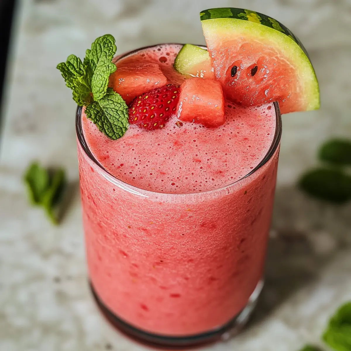Als ich letztens nach einem erfrischenden Sommergetränk suchte, stieß ich auf das perfekte Rezept: einen cremigen Wassermelonen-Smoothie! Dieser Wassermelonen-Smoothie-Rezept vereint die süße, saftige Wassermelone mit der cremigen Konsistenz von Joghurt und hat das Potenzial, mein neuer Lieblingssnack zu werden. Ideal für heiße Tage, bietet dieser Smoothie nicht nur eine schnelle Zubereitung, sondern ist auch wahnsinnig hydrierend und sättigend – perfekt als Frühstück oder erfrischender Snack. Neugierig, wie du die einfache, aber leckere Mischung zubereiten kannst? Lass uns gemeinsam in die Welt dieses köstlichen Smoothies eintauchen! Warum ist dieser Smoothie ein Must-Try? Erfrischend und perfekt für heiße Sommertage, dieser Wassermelonen-Smoothie begeistert mit seiner kumbination aus saftiger Wassermelone und cremigem Joghurt. Schnell zubereitet, lässt er sich in wenigen Minuten mixen – ideal für einen schnellen Frühstück oder Snack. Gesund und hydrierend, versorgt er dich mit wertvollen Nährstoffen, die deine Tagesroutine unterstützen. Einfache Variationen durch den Austausch von Zutaten wie Honig oder dem Joghurt machen ihn vielseitig für jeden Geschmack. Wenn du dich nach einer weiteren erfrischenden Idee umsiehst, probiere auch unsere Honig Knoblauch Garnelen als leichtes Sommergericht! Wassermelonen-Smoothie-Zutaten • Für den Smoothie Wassermelone – die Hauptzutat, sorgt für eine erfrischende Süße; achte darauf, eine reife und saftige Wassermelone zu wählen! Banane – trägt zur cremigen Textur bei; gefrorene Bananen sind ideal, kannst aber auch gefrorene Zucchini als Alternative verwenden. Joghurt – bringt eine cremige und leicht säuerliche Note; verwende ungesüßten veganen Joghurt für den besten Geschmack! Honig – optional, um die Süße zu verstärken; ersetze ihn durch ein Süßungsmittel deiner Wahl, um vegan zu bleiben. Eiswürfel – für eine kühlende und erfrischende Konsistenz; wichtig, um deinem Smoothie die richtige Dicke zu verleihen! Nutze dieses Wassermelonen-Smoothie-Rezept, um dir ein erfrischendes Geschmackserlebnis zu gönnen! Schritt-für-Schritt-Anleitung für das Wassermelonen-Smoothie-Rezept Step 1: Vorbereitung der Zutaten Beginnen Sie, indem Sie die Wassermelone in Würfel schneiden und die Banane mindestens 1-2 Stunden im Gefrierschrank einfrieren. Wenn Sie gefrorene Erdbeeren verwenden möchten, schneiden Sie diese ebenfalls vorher in Scheiben und lagern Sie sie im Gefrierfach. Diese Vorbereitung ist entscheidend für die Konsistenz Ihres Wassermelonen-Smoothies, da frische Zutaten nicht die gleiche cremige Textur bieten. Step 2: Zubereitung im Mixer Geben Sie die gewürfelte Wassermelone, die gefrorene Banane, den veganen Joghurt und, falls gewünscht, den Honig in einen Hochleistungsmixer. Stellen Sie sicher, dass der Mixer gut verschlossen ist, und starten Sie dann den Mixvorgang auf hoher Stufe. Lassen Sie ihn für etwa 30 bis 60 Sekunden laufen, bis die Mischung glatt und cremig aussieht. Verwenden Sie bei Bedarf einen Tamper, um die Zutaten zu bewegen und eine gleichmäßige Konsistenz zu erzielen. Step 3: Hinzufügen der Eiswürfel Sobald Ihre Mischung schön cremig ist, fügen Sie die Eiswürfel hinzu, um Ihrem Wassermelonen-Smoothie eine kühlende, erfrischende Note zu verleihen. Mixen Sie erneut auf hoher Stufe für weitere 20-30 Sekunden, bis die Eiswürfel vollständig zerkleinert und in die Mischung integriert sind. Achten Sie darauf, dass Ihr Smoothie eine dicke, aber trinkbare Konsistenz erreicht, die perfekt für einen heißen Sommertag ist. Step 4: Anpassen und Servieren Überprüfen Sie die Konsistenz des Wassermelonen-Smoothies und entscheiden Sie, ob Sie zusätzliche Flüssigkeit hinzufügen möchten, um ihn dünner zu machen. Wenn er zu dick ist, können Sie ein wenig Wasser hinzufügen und erneut mixen, bis die gewünschte Konsistenz erreicht ist. Gießen Sie den Smoothie in Gläser und servieren Sie ihn sofort – idealerweise mit einem bunten Strohhalm oder in einem aufgeschnittenen Mini-Wassermelonenbehälter für die extra Präsentation. Vorbereitung für das Wassermelonen-Smoothie-Rezept Egal wie beschäftigt du bist, dieses Wassermelonen-Smoothie-Rezept lässt sich wunderbar im Voraus vorbereiten! Du kannst die Wassermelone in einem luftdichten Behälter bis zu 3 Tage im Kühlschrank aufbewahren oder die gewürfelte Wassermelone gefrieren, um die Frische zu bewahren. Auch die Banane sollte mindestens 1-2 Stunden vorher eingefroren werden; am besten bereitest du sie in größeren Mengen vor. Wenn du bereit bist, deinen Smoothie zuzubereiten, gib einfach die vorab geportioneirten Zutaten (Wassermelone, gefrorene Banane und Joghurt) in den Mixer, füge Eiswürfel hinzu und mixe alles, bis die gewünschte Konsistenz erreicht ist. So sparst du wertvolle Zeit, ohne auf köstlichen Geschmack verzichten zu müssen! Lagerungstipps für Wassermelonen-Smoothie Kühlschrank: Bewahre ungenutzten Wassermelonen-Smoothie in einem luftdichten Behälter auf, und genieße ihn innerhalb von 24 Stunden. Er kann sich etwas verdicken, also einfach vor dem Servieren erneut mixen. Gefrierschrank: Falls du den Smoothie für längere Zeit aufbewahren möchtest, friere ihn in Eiswürfelformen ein. So kannst du kleine Portionen nutzen und benötigte Mengen schnell auftauen. Wiederverschließen: Verwende einen geeigneten Behälter mit dicht schließendem Deckel, um die Frische zu erhalten und Geschmacksverlust zu vermeiden. Wiedererwärmung: Für den Genuss direkt nach dem Mixen schmeckt der Wassermelonen-Smoothie am besten. Falls er im Kühlschrank gelagert wurde, einfach umfüllen und erneut mixen, um die optimale Konsistenz zu erreichen. Expertentipps für das Wassermelonen-Smoothie-Rezept Richtige Wassermelone wählen: Achte darauf, eine reife, saftige Wassermelone zu verwenden, da dies entscheidend für die Süße und den Geschmack deines Smoothies ist. Banane einfrieren: Um die cremige Textur zu erreichen, fr