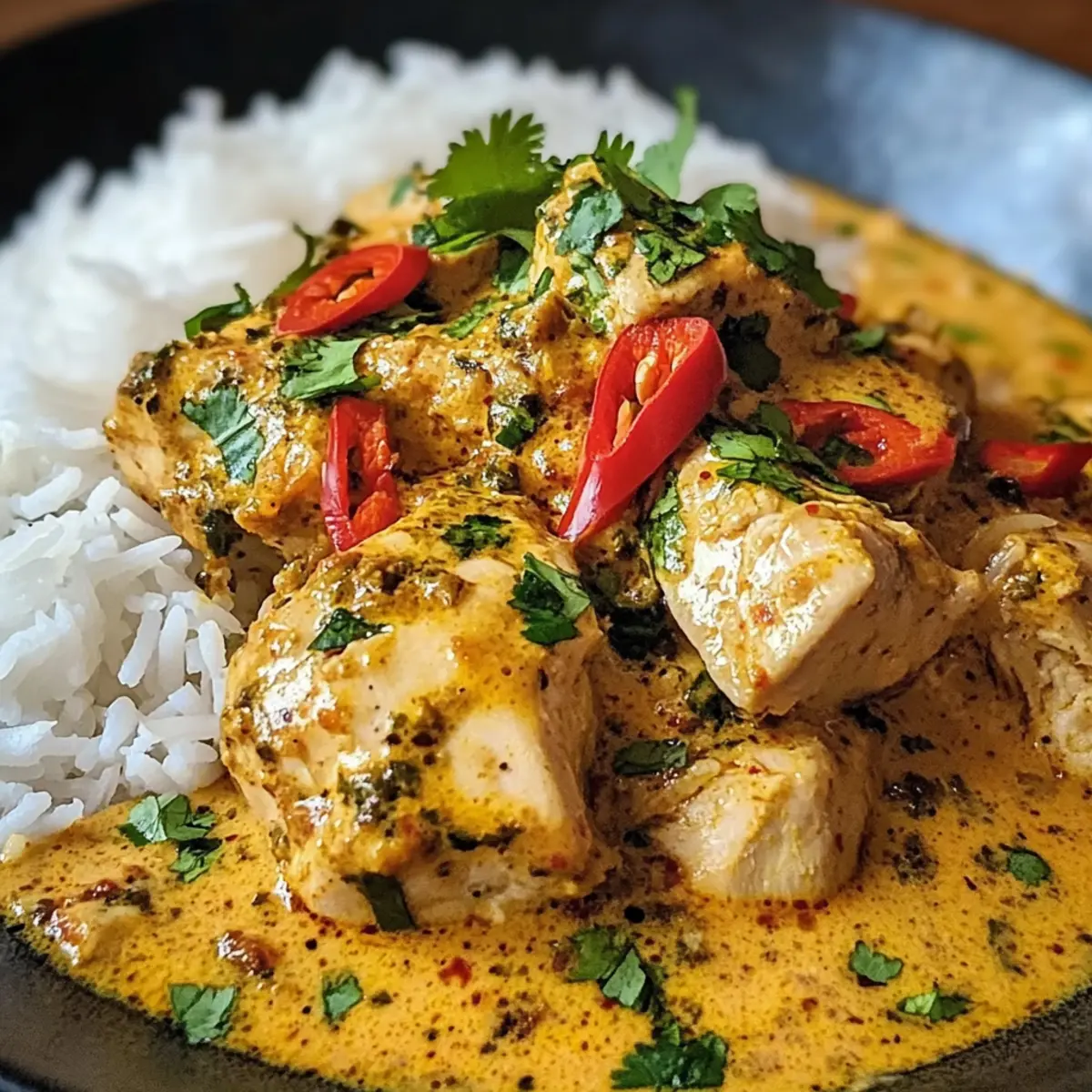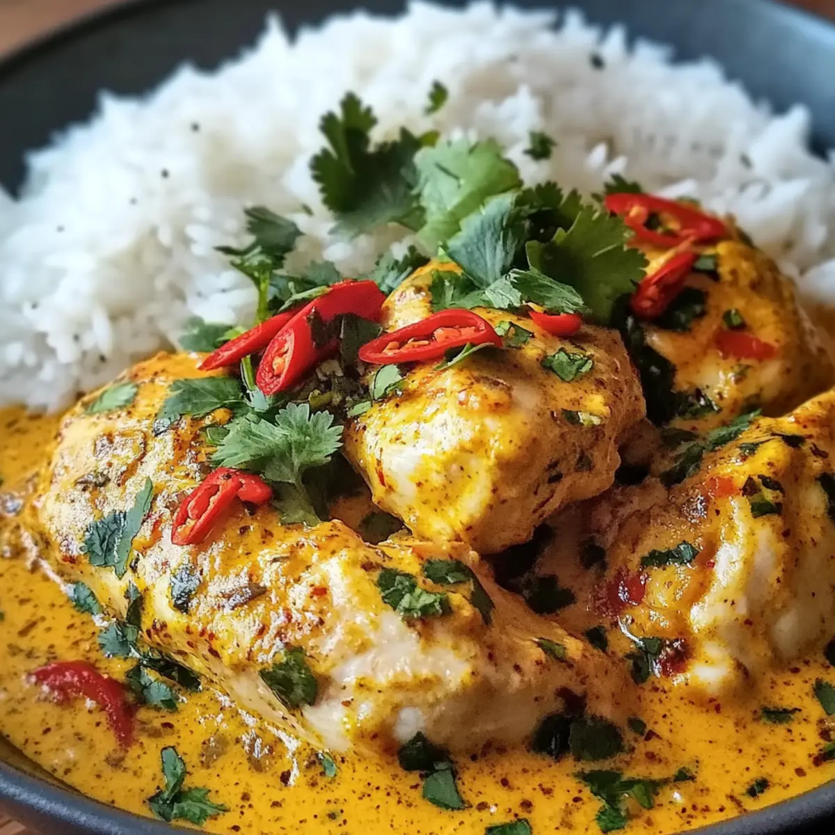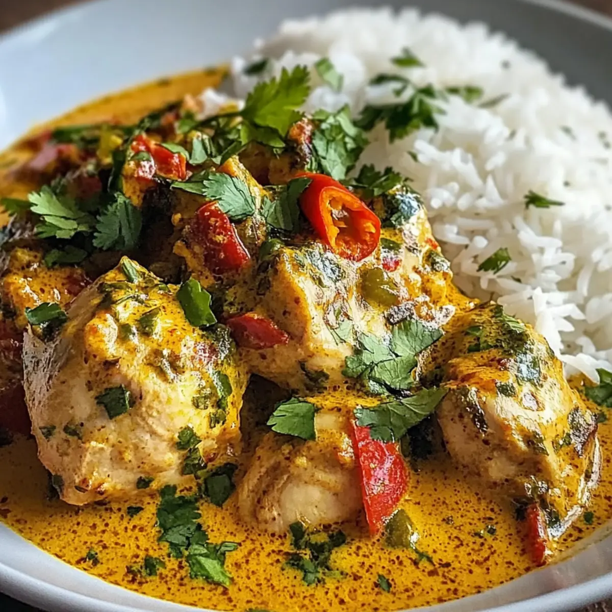 „Wusstest du, dass die brasilianische Küche mit ihren aufregenden Aromen und frischen Zutaten zu den faszinierendsten der Welt zählt?“ Wenn ich an ein schnelles, aber dennoch köstliches Abendessen denke, kann ich nicht umhin, meine Leidenschaft für das würzige brasilianische Kokosnuss-Hühnchen zu teilen. Diese simple, aber beeindruckende Mahlzeit vereint zarte Hühnchenstücke mit einer samtigen Kokosnusssoße, die durch aromatische Gewürze zum Leben erweckt wird. Perfekt für hektische Wochentage, ist dieses Gericht nicht nur budgetfreundlich, sondern auch unglaublich anpassbar: Du kannst ganz leicht Hühnchen durch Garnelen oder Tofu ersetzen, je nach deinen Vorlieben. Egal, ob du Familie oder Freunde bewirten möchtest, diese geschmackvolle Kombination wird garantiert jeden begeistern. Bist du bereit, in die Welt der brasilianischen Aromen einzutauchen? Lass uns loslegen! Warum wirst du dieses Rezept lieben? Einfachheit: Die Zubereitung ist kinderleicht und erfordert nur wenige Zutaten, die du wahrscheinlich bereits in deiner Küche hast. Würzige Aromen: Die Kombination aus Kokosnussmilch, Gewürzen und frischem Gemüse sorgt für ein geschmackliches Erlebnis, das dich direkt nach Brasilien versetzt. Vielseitigkeit: Ob du Hühnchen, Garnelen oder Tofu wählst, dieses Rezept lässt sich perfekt an deine Ernährungsbedürfnisse anpassen. Schnelle Zubereitung: In weniger als 30 Minuten kannst du ein schmackhaftes Gericht auf den Tisch zaubern – ideal für stressige Wochentage. Geselligkeit: Dieses Gericht ist der Hit bei jeder Dinnerparty und bringt Familien und Freunde zusammen wie kein anderes. Wenn du noch mehr über die brasilianische Küche erfahren möchtest, kannst du hier mehr Informationen zu den Ursprung der Aromen finden! Würziges brasilianisches Kokosnuss-Hühnchen Zutaten Hinweis: Diese umfangreiche Auswahl an Zutaten sorgt dafür, dass dein Gericht geschmacklich harmoniert und anpassbar ist! Für das Hühnchen Hühnchenbrust/-schenkel – Die primäre Proteinquelle, zart und voller Geschmack; kannst du durch Garnelen oder Tofu ersetzen. Koscheres Salz – Verstärkt das Aroma und ist unverzichtbar fürs Würzen. Schwarzer Pfeffer – Fügt eine milde Schärfe und Tiefe hinzu. Für die Sauce Geräuchertes Paprikapulver – Verleiht einen rauchigen Geschmack; kann durch normales Paprikapulver ersetzt werden, wenn du es weniger rauchig magst. Chiliflocken – Sorgt für die nötige Würze; die Menge kannst du nach deinem Geschmack anpassen. Olivenöl/Kokosöl – Zum Braten verwendet; fügt Reichtum hinzu, Non-Stick-Spray als kalorienärmere Alternative ist ebenfalls möglich. Gelbe Zwiebel – Grundgeschmack, sorgt beim Anbraten für Süße. Knoblauch – Aromatisch und geschmacksintensivierend; frisch gehackt ist am besten. Frischer Ingwer – Fügt Wärme und Tiefe hinzu; du kannst auch gemahlenen Ingwer verwenden, aber in geringeren Mengen. Kokosmilch – Kreiert eine cremige Konsistenz; verwende leichte Kokosmilch für weniger Kalorien, wobei sich der Geschmack verändert. Tomatenmark – Fügt Geschmacksintensität hinzu; frische Tomaten können auch verwendet werden, reduziere dann die Flüssigkeit im Gericht. Hühnerbrühe – Verbessert den Geschmack der Sauce; Gemüsebrühe ist eine gute Alternative für vegetarische Varianten. Limettensaft – Bringt die Aromen zum Leuchten; kann bei Bedarf durch Zitronensaft ersetzt werden. Brauner Zucker/Kokoszucker – Balanciert die Schärfe mit Süße; kann weggelassen werden, wenn du es weniger süß magst. Frischer Koriander – Für Garnitur und Geschmack; Petersilie kann als Ersatz dienen. Chili oder Jalapeño – Optionale Garnitur für zusätzliche Schärfe. Geröstete Kokosnussflocken – Optionale Garnitur, um die Textur und den Geschmack zu bereichern. Für die Beilage Reis/Quinoa/Blumenkohlreis – Empfohlene Beilagen, um das Gericht herzhaft zu machen. Dieses würzige brasilianische Kokosnuss-Hühnchen ist nicht nur lecker, sondern auch ideal für jeden, der Wert auf eine köstliche und schnell zubereitete Mahlzeit legt! Schritt-für-Schritt-Anleitung für würziges brasilianisches Kokosnuss-Hühnchen Step 1: Hühnchen vorbereiten Das Hühnchen gut abtrocknen, in große Stücke schneiden und mit koscherem Salz, schwarzem Pfeffer, geräuchertem Paprikapulver und Chiliflocken würzen. Für 5-10 Minuten ruhen lassen, damit die Gewürze einziehen können. So wird das Würzige brasilianische Kokosnuss-Hühnchen besonders geschmackvoll. Step 2: Hühnchen anbraten Eine Pfanne mit 1 Esslöffel Öl (Oliven- oder Kokosöl) bei mittlerer bis hoher Hitze erhitzen. Die Hühnchenstücke hineingeben und etwa 2-3 Minuten pro Seite braten, bis sie goldbraun sind. Anschließend das Hühnchen aus der Pfanne nehmen und beiseite stellen, um Platz für die nächsten Schritte zu schaffen. Step 3: Aromaten kochen In derselben Pfanne die Hitze auf mittlere Temperatur reduzieren und das verbleibende Öl hinzufügen. Die gehackte Zwiebel 3-4 Minuten anbraten, bis sie weich und leicht goldbraun ist. Dann den Knoblauch und den frischen Ingwer hinzufügen, unter Rühren weitere 1 Minute anbraten, bis die Aromen aufsteigen. Step 4: Sauce aufbauen Das Tomatenmark in die Pfanne geben und 1 Minute anbraten, um den Geschmack zu intensivieren. Dann die Kokosmilch und die Hühnerbrühe hinzufügen, dabei den Boden der Pfanne abkratzen, um alle Röststoffe zu lösen. Diese Sauce ist die Basis für das würzige brasilianische Kokosnuss-Hühnchen. Step 5: Kombinieren und köcheln lassen Das angebratene Hühnchen zurück in die Pfanne geben und die Mischung zum Köcheln bringen. Bei schwacher bis mittlerer Hitze 8-10 Minuten köcheln lassen, bis das Hühnchen durchgegart ist und die Sauce leicht eingedickt ist. Gelegentlich umrühren, um Anbrennen zu verhindern. Step 6: Fertigstellen Den Limettensaft und den braunen Zucker unter die Sauce rühren und nach Belieben nachwürzen. Die Aromen des würzigen brasilianischen Kokosnuss-Hühnchens anpa