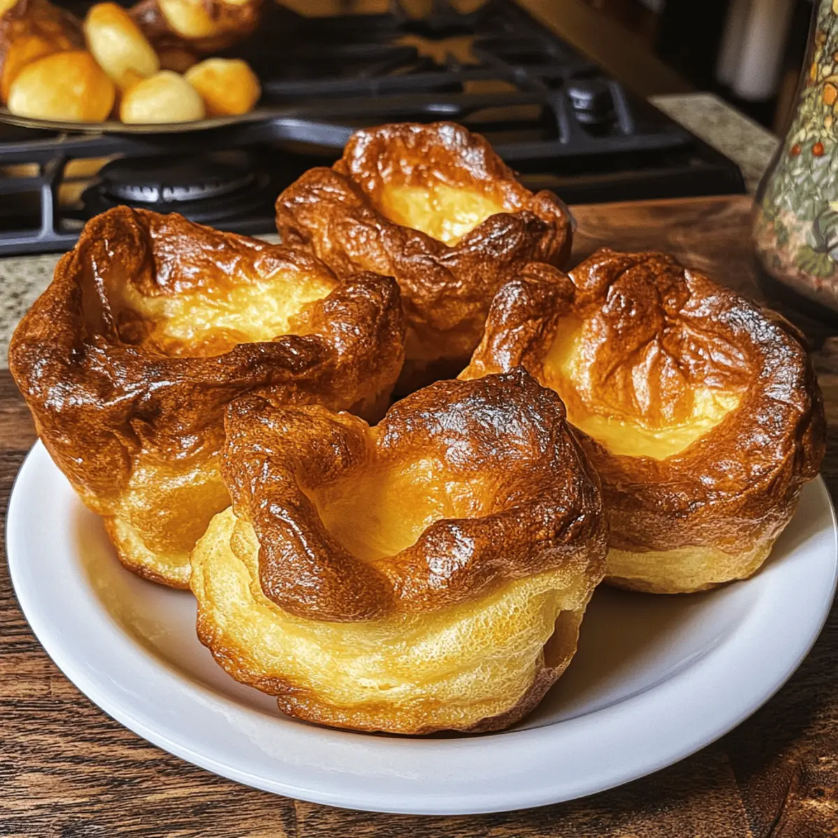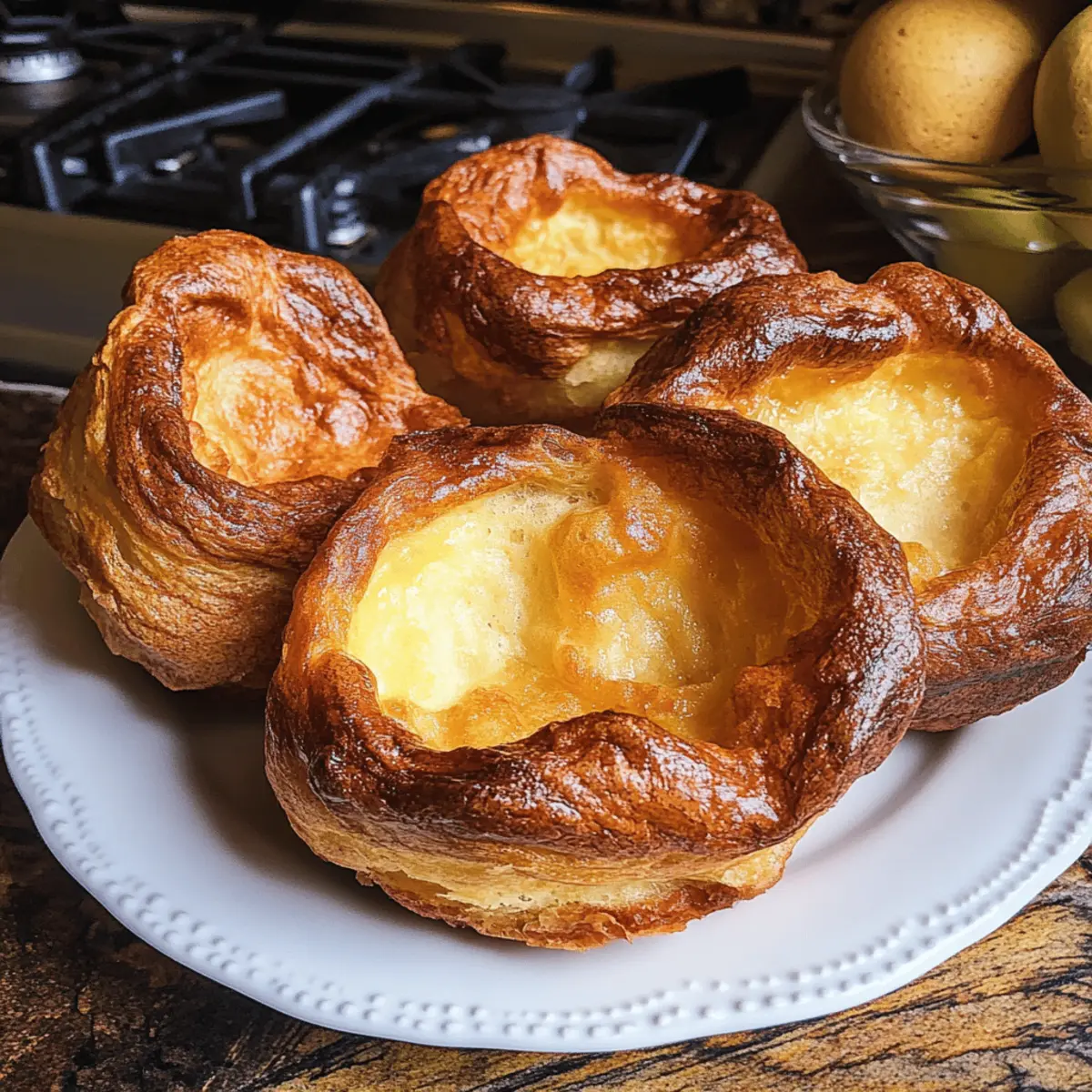 Als ich das erste Mal in einem kleinen Pub im Herzen Englands saß, wurde mir schnell klar, dass die Yorkshire Puddings der Höhepunkt jedes traditionellen Sonntagsessens waren. Diese köstlichen, luftigen Küchlein sind nicht nur eine willkommene Beilage zu einem klassischen Roastbeef, sondern sie bringen auch ein Gefühl von Heimat und Gemütlichkeit in jede Küche. Mit meinem Yorkshire-Pudding-Rezept zauberst du im Handumdrehen ein leichtes, knuspriges Meisterwerk, das weich und fluffig ist—ideal, um all die köstlichen Säfte deiner Gerichte aufzusaugen. Es erfordert nur wenige Zutaten und eine kurze Vorbereitungszeit, was es perfekt für jeden geneigten Hobbykoch macht. Bist du bereit, dein Dinner mit diesen traditionellen Yorkshire Puddings aufzupeppen? Lass uns gemeinsam in die Zubereitung eintauchen! Warum sind Yorkshire Puddings so beliebt? Leichtigkeit: Diese Yorkshire Puddings sind im Handumdrehen gebacken und benötigen nur wenige Zutaten, was sie ideal für jeden Hobbykoch macht. Knusprige Textur: Die perfekte Kombination aus einer knusprigen Außenhaut und einem weichen, luftigen Inneren sorgt für ein unvergleichliches Geschmackserlebnis. Vielseitigkeit: Ob als Beilage zu Roastbeef oder mit einer herzhaften Sauce, sie passen zu zahlreichen Gerichten und sind ein wahrer Publikumsmagnet. Schnelle Zubereitung: Mit einer Gesamtzeit von unter 30 Minuten, kannst du diese schmackhaften Puddings schnell und unkompliziert zaubern. Traditionell: In der britischen Cuisine sind sie ein fester Bestandteil des Sonntagsessens, was ihnen einen besonderen Platz in der kulinarischen Tradition verleiht. Mit meinem Yorkshire-Pudding-Rezept kannst du ganz einfach einen Hauch von Heimat in deine Küche bringen! Yorkshire-Pudding-Zutaten Die richtigen Zutaten sind der Schlüssel zu perfekten Yorkshire Puddings. Für den Teig Mehl – sorgt für Struktur und ist die Basis des Puddings. Allzweckmehl ist ideal. Eier – geben Auftrieb und Struktur und sind entscheidend für die charakteristische Puffigkeit. Milch – sorgt für Feuchtigkeit und Cremigkeit; Vollmilch wird empfohlen. Salz – verbessert den Geschmack; eine Prise reicht aus, um die Aromen zu verstärken. Für die Form Öl oder Bratenfett – erzeugt die knusprige Außenhaut; Rindertalg bietet den authentischen Geschmack, kann aber durch Pflanzenöl ersetzt werden. Mit diesem Yorkshire-Pudding-Rezept zauberst du im Handumdrehen köstliche Puddings! Schritt-für-Schritt-Anleitung für das Yorkshire-Pudding-Rezept Schritt 1: Ofen vorheizen Heize den Ofen auf 220°C vor. Diese hohe Temperatur ist entscheidend, um die Yorkshire Puddings schön aufgehen zu lassen. Stell sicher, dass dein Ofen gut vorgeheizt ist, da dies für die perfekte Konsistenz und das Aufgehen des Teiges unerlässlich ist. Schritt 2: Teig vorbereiten Gib das Mehl und das Salz in eine mittelgroße Schüssel. Mische sie gründlich miteinander, damit sich das Salz gleichmäßig verteilt. Der nächste Schritt ist entscheidend für die Struktur deiner Yorkshire Puddings. Füge nun die Eier und die Milch hinzu und verrühre alles gut mit einem Schneebesen, bis der Teig glatt und klumpenfrei ist. Schritt 3: Ruhezeit einhalten Decke die Schüssel mit einem sauberen Küchentuch oder Frischhaltefolie ab und lass den Teig bei Raumtemperatur etwa 1 Stunde ruhen. Dieser Ruheprozess erlaubt es dem Teig, die Luft einzuschließen, was wichtig für die fluffige Konsistenz der Yorkshire Puddings ist. Du kannst den Teig auch im Kühlschrank ruhen lassen, wenn du ihn vorbereiten möchtest. Schritt 4: Form vorbereiten Während der Teig ruht, bereite deine Muffin- oder Puddingform vor. Gib etwa 2 Teelöffel Öl oder Bratenfett in jede Mulde. Stelle die Form dann in den vorgeheizten Ofen, sodass das Fett heiß wird und anfängt zu rauchen — das ist der perfekte Zeitpunkt, um den Teig einzufüllen. Schritt 5: Teig einfüllen Nehme die heiße Form aus dem Ofen und rühre den Teig noch einmal gründlich um. Gieße den Teig schnell und vorsichtig in die heißen Mulden, sodass sie etwa zur Hälfte gefüllt sind. Mit dem heißen Fett in der Form wird der Teig sofort anfangen zu garen und die charakteristische Form der Yorkshire Puddings annehmen. Schritt 6: Backen Backe die Puddings bei 220°C für etwa 20-25 Minuten. Während sie backen, öffne die Ofentür nicht, um ein gutes Aufgehen zu gewährleisten. Die Yorkshire Puddings sind fertig, wenn sie goldbraun und aufgegangen sind — am besten, wenn die Oberseite schön knusprig ist. Schritt 7: Servieren Nimm die Yorkshire Puddings aus dem Ofen und lasse sie kurz auf einem Kuchengitter abkühlen. Sie werden etwas zusammenfallen, aber das ist normal. Serviere die Puddings sofort frisch — sie passen perfekt zu deinem Roastbeef und sind ideal, um all die köstlichen Säfte aufzusaugen! Yorkshire-Pudding-Rezept: Variationen und Anpassungen Lass deiner Kreativität freien Lauf und entdecke verschiedene Möglichkeiten, das Rezept nach deinem Geschmack zu variieren! Vegetarisch: Ersetze das Rinderfett durch Pflanzenöl, um eine köstliche vegetarische Variante zu genießen. Diese Option ist ideal für alle, die auf Fleisch verzichten möchten. Mit Kräutern: Füge fein gehackte Kräuter wie Thymian oder Rosmarin zum Teig hinzu. Das verleiht eine aromatische Note und macht deine Puddings besonders geschmackvoll. Käse-Liebhaber: Mische geriebenen Käse, wie Cheddar oder Parmesan, in den Teig für einen herzhaften Twist. Diese Version ist perfekt für Käsefreunde und sorgt für zusätzlichen Geschmack. Knoblauchgeschmack: Gib zerdrückten oder geriebenen Knoblauch zu dem Öl oder Bratenfett in der Form, bevor du den Teig hinzufügst. Das sorgt für eine köstliche, aromatische Note. Scharfe Variante: Verfeinere den Teig mit einer Prise Cayennepfeffer oder Paprika für einen würzigen Kick. Eine spannende Wahl für alle, die es etwas schärfer mögen! Süße Option: Mache eine Dessertversion, indem du etwas Zucker und Vanilleextrakt hinzufügst. Serv
