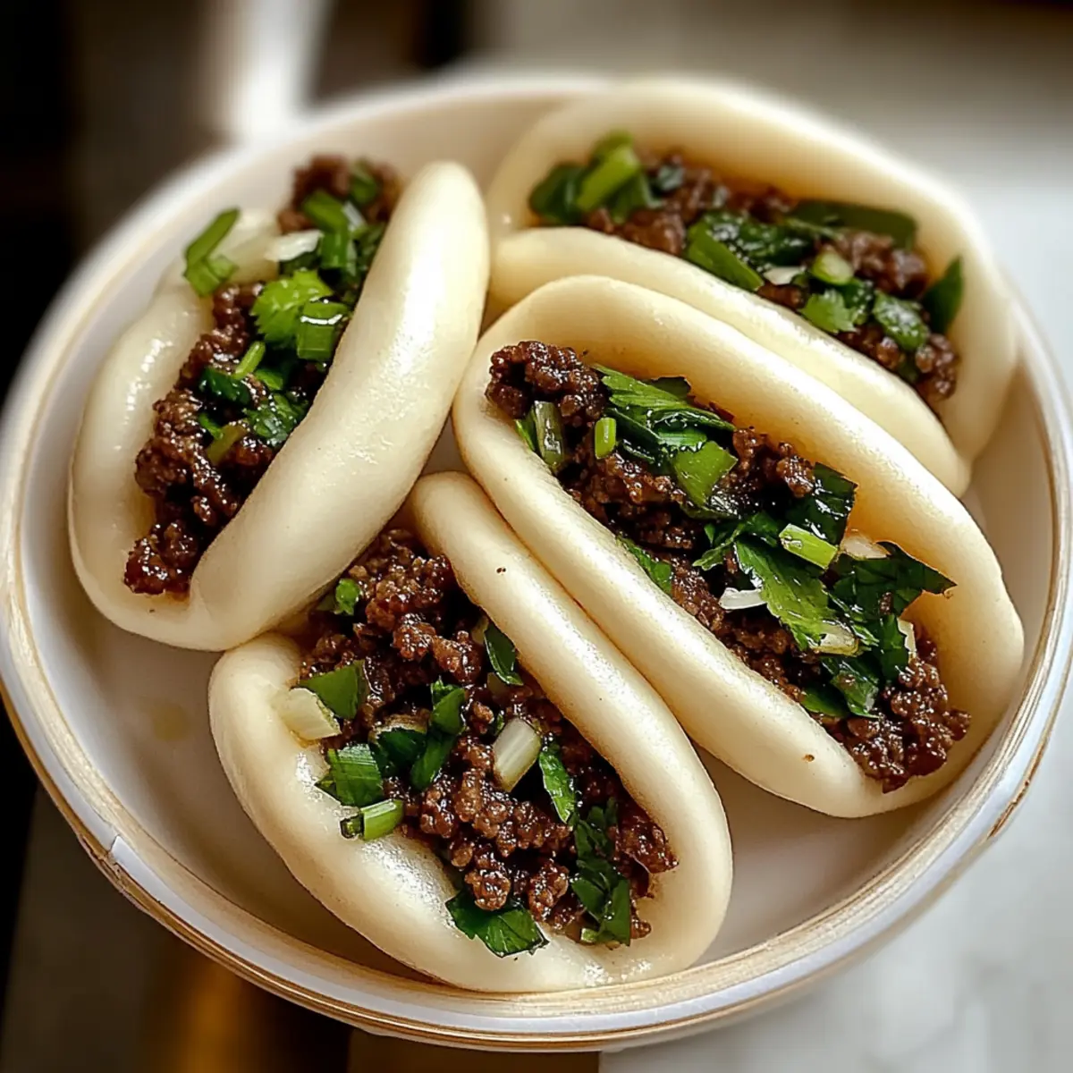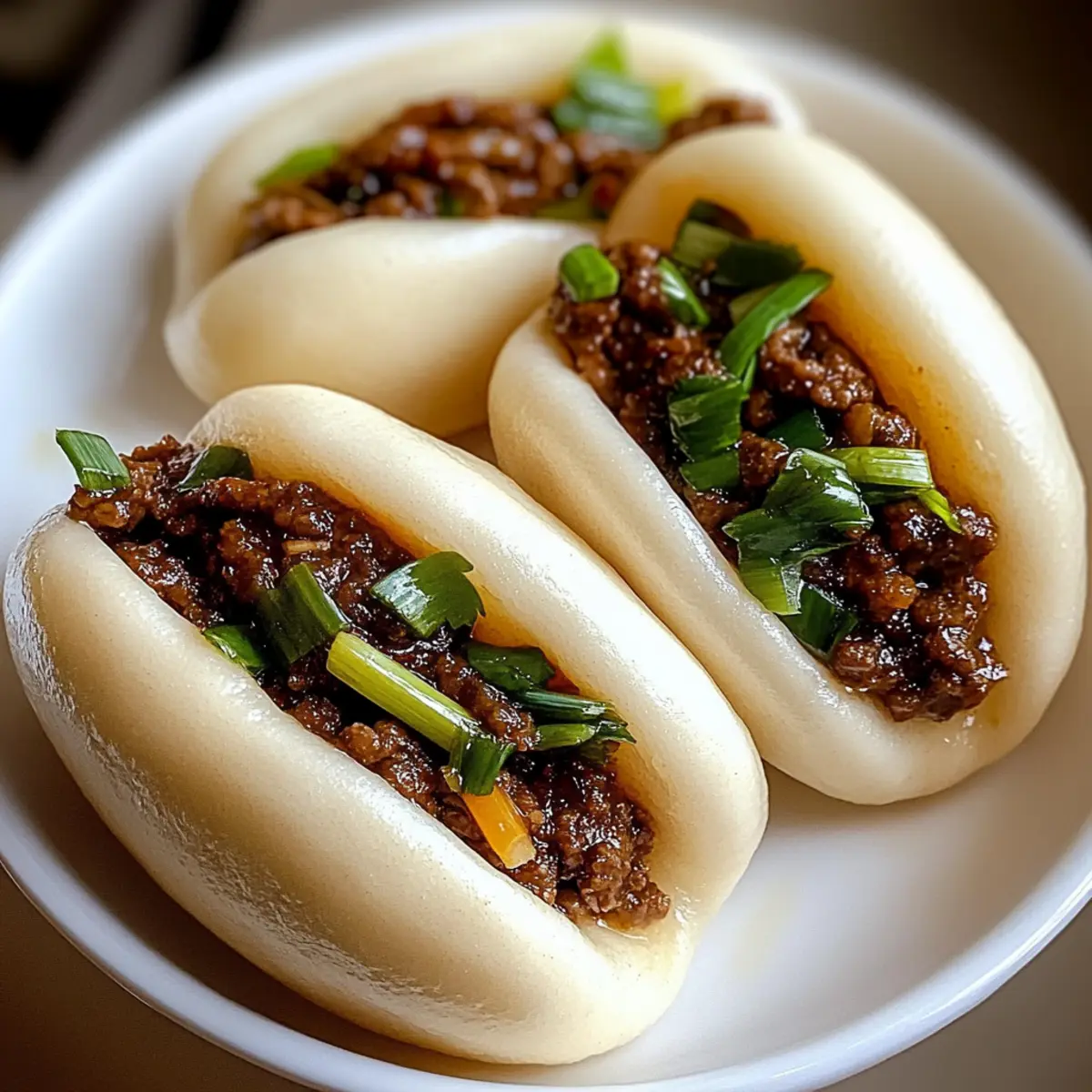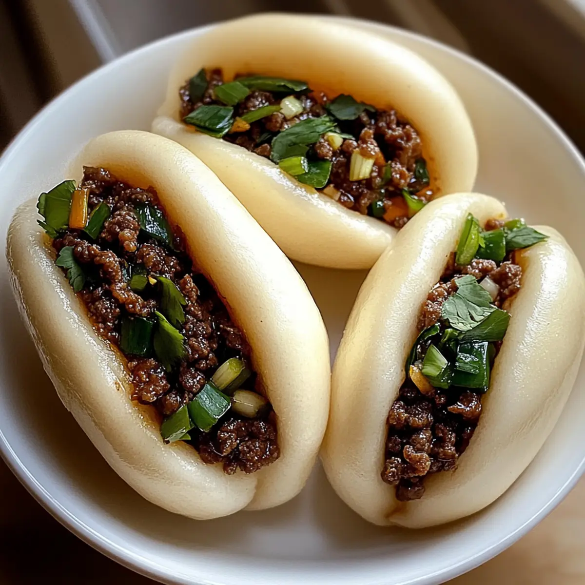 In der lebhaften Atmosphäre einer asiatischen Straßenmarkt-Gasse kann man dem unwiderstehlichen Duft von frisch gedämpften Bao Brötchen kaum widerstehen. Diese zarten Rindfleisch Bao Brötchen sind mehr als nur eine köstliche Delikatesse – sie sind eine Einladung, in die Welt der selbstgemachten, fluffigen Komfortspeisen einzutauchen. Mit jeder Biss bietet dieses Rezept die Möglichkeit, nicht nur deine Kochkünste zu verfeinern, sondern auch das schnelle Essen gegen eine geschmackvolle, herzhafte Mahlzeit einzutauschen. Ganz gleich, ob du sie für ein gemütliches Abendessen oder zum Teilen mit Freunden zubereitest, die Variationen mit verschiedenen Füllungen machen sie zu einem flexiblen Genuss. Bist du bereit, mit mir in die Welt der Aromen einzutauchen? Warum wirst du dieses Rezept lieben? Einfachheit: Die Zubereitung dieser Bao Brötchen ist unkompliziert und erfordert nur grundlegende Backfähigkeiten. Vielseitigkeit: Ob Rindfleisch, Huhn oder Tofu – du kannst die Füllung ganz nach deinem Geschmack variieren! Unvergesslicher Geschmack: Diese Brötchen sind mit aromatischen Gewürzen gefüllt, die einen authentischen Hauch asiatischer Küche bieten. Schnell und kreativ: Perfekt für die Meal Prep! Du kannst die Füllung im Voraus zubereiten und die Brötchen bei Bedarf dämpfen. Geselligkeit: Ideal zum Teilen! Diese beliebten Bao Brötchen bringen Freunde und Familie zusammen und sind das Highlight jeder Zusammenkunft. Tauche ein in diese köstliche Erfahrung mit dem Rezept für asiatische Slaw, das perfekt zu diesen Brötchen passt! Zarte Rindfleisch Bao Brötchen Zutaten Für den Teig Allzweckmehl – sorgt für die Struktur; du kannst auch Brotmehl verwenden, um zusätzliche Bissfestigkeit zu erhalten. Warmes Wasser (43°C) – aktiviert die Hefe; achte darauf, dass das Wasser nicht zu heiß ist, um die Hefe nicht abzutöten. Zucker – fördert die Aktivierung der Hefe; Honig kann alternativ verwendet werden. Aktive Trockenhefe – sorgt für die luftige Textur des Teigs; frisch ist hier besser! Salz – sorgt für den richtigen Geschmack; halte dich an die empfohlene Menge. Pflanzenöl – fügt Feuchtigkeit und Reichhaltigkeit hinzu; Olivenöl ist ebenfalls eine gute Alternative. Für die Füllung Gemahlenes Rindfleisch – das Hauptprotein, das den Geschmack liefert; kann durch Hackfleisch aus Schwein, Huhn, Pute oder zerbröseltem Tofu ersetzt werden. Gehackter Knoblauch – verleiht Aroma und Geschmack; frischer Knoblauch ist am intensivsten. Gehackter Ingwer – sorgt für Wärme und Tiefe; variiere die Menge nach eigenem Geschmack. Sojasauce – liefert Umami; Tamari ist eine glutenfreie Option. Austernsauce – fügt Süße und Tiefe hinzu; kann durch vegetarische Hoisinsauce ersetzt werden. Hoisinsauce – bei Bedarf kann auch süße Sojasauce verwendet werden. Maisstärke – dient als Verdickungsmittel für die Füllung; mit Wasser mischen, bevor du sie hinzufügst. Sesamöl – intensiviert das Geschmacksprofil; geröstetes Sesamöl ist ideal. Weißer Pfeffer – fügt eine milde Schärfe hinzu; schwarzer Pfeffer kann ebenfalls verwendet werden. Hacken Frühlingszwiebeln & Koriander – frische Kräuter, die für den Geschmack und die Garnitur sorgen; nach Belieben anpassen. Mit diesem Rezept für zarte Rindfleisch Bao Brötchen wirst du auf jeden Fall Freude am Kochen haben! Schritt-für-Schritt-Anleitung für Zarte Rindfleisch Bao Brötchen Schritt 1: Hefe aktivieren In einer Schüssel warmes Wasser (43°C) mit Zucker und aktiver Trockenhefe vermengen. Gut umrühren und die Mischung etwa 10 Minuten stehen lassen, bis sich eine schaumige Schicht bildet. Dieses schaumige Zeichen zeigt, dass die Hefe aktiv ist und bereit, den Teig für die zarten Rindfleisch Bao Brötchen aufzulockern. Schritt 2: Teig zubereiten In einer großen Schüssel das Allzweckmehl und das Salz vermischen. Die Hefemischung und das Pflanzenöl hinzufügen und alles gut vermengen. Den Teig auf einer bemehlten Fläche etwa 8 Minuten kneten, bis er glatt und elastisch ist. Danach den Teig in eine geölte Schüssel geben, mit einem Tuch abdecken und an einem warmen Ort 1 Stunde gehen lassen, bis er sich verdoppelt hat. Schritt 3: Füllung zubereiten Während der Teig aufgeht, den gehackten Knoblauch und den Ingwer in einer Pfanne mit etwas Öl bei mittlerer Hitze anbraten, bis sie aromatisch sind. Dann das gemahlene Rindfleisch hinzufügen und anbraten, bis es gleichmäßig gebräunt ist. Sojasauce, Austernsauce und die mit Wasser gemischte Maisstärke einrühren, wird die Mischung dick. Vom Herd nehmen, Frühlingszwiebeln und Koriander untermischen und die Füllung vollständig abkühlen lassen. Schritt 4: Brötchen formen Den aufgegangenen Teig auf eine leicht bemehlte Fläche geben und sanft zusammendrücken, um die Luft herauszulassen. Den Teig in 10 gleich große Stücke teilen. Jedes Stück flach drücken, dann etwa 1-2 Esslöffel der abgekühlten Rindfleischfüllung in die Mitte geben. Die Ränder des Teigs um die Füllung zusammenführen und gut zusammendrücken, um sicherzustellen, dass sie beim Dämpfen nicht aufplatzen. Schritt 5: Ruhen und dämpfen Die geformten Brötchen auf ein mit Backpapier belegtes Dampfgestell legen, wobei genügend Platz zwischen ihnen bleibt, da sie aufgehen werden. Die Brötchen 15 Minuten ruhen lassen. Danach einen Topf mit Wasser zum Kochen bringen und die Brötchen im Dampfkorb über dem kochenden Wasser platzieren. 12-15 Minuten dämpfen, bis sie leicht und flauschig sind. Schritt 6: Servieren Optional können die fertigen Bao Brötchen in einer Pfanne 2 Minuten pro Seite goldbraun angebraten werden, um eine knusprige Kruste zu erhalten. Mit frischem Koriander und Frühlingszwiebeln garnieren und sofort heiß servieren. Diese zarten Rindfleisch Bao Brötchen sind ein köstlicher Genuss, der perfekt für jeden Anlass ist. Was passt zu zarten Rindfleisch Bao Brötchen? Die Kombination von Aromen und Texturen kann jede Mahlzeit zu einem besonderen Er