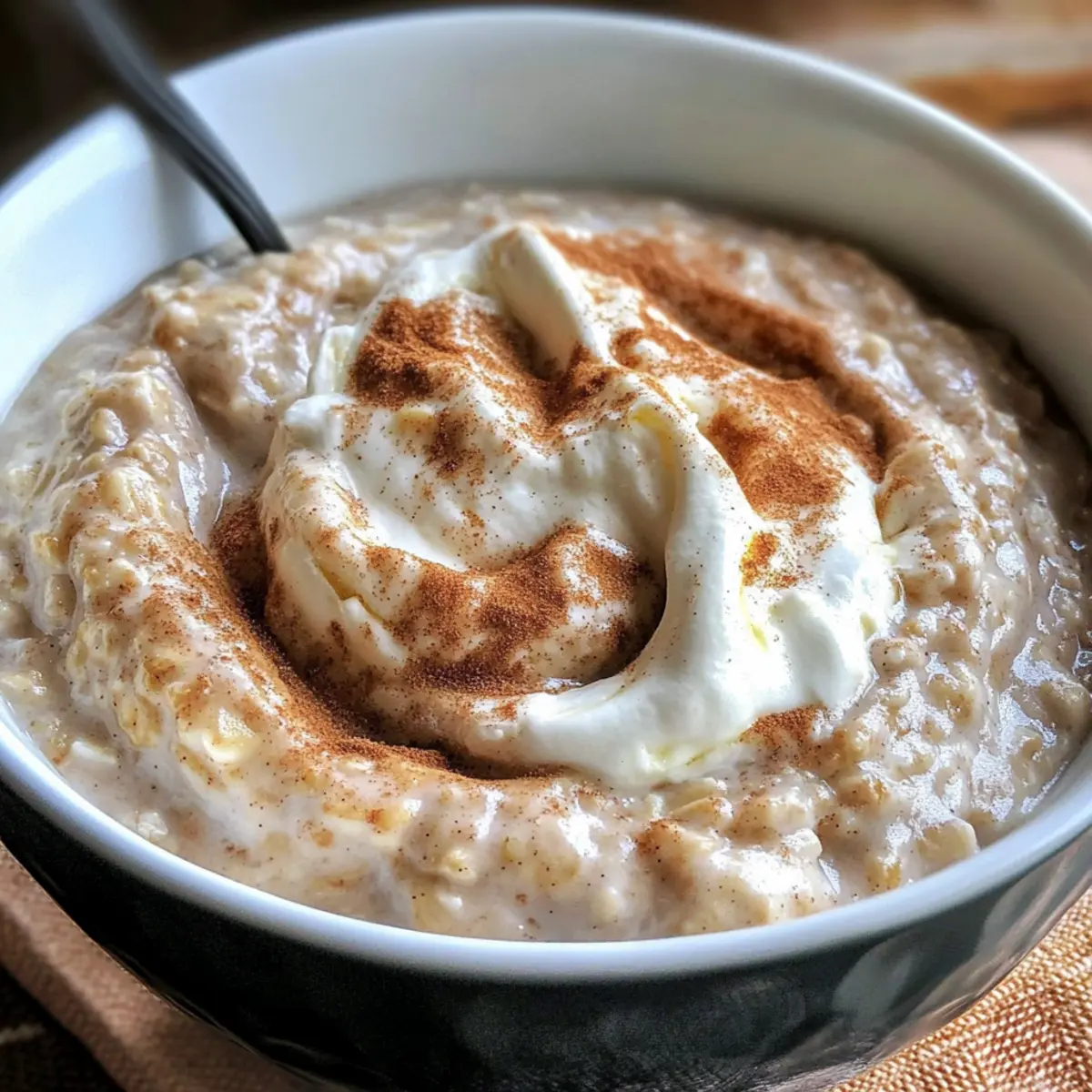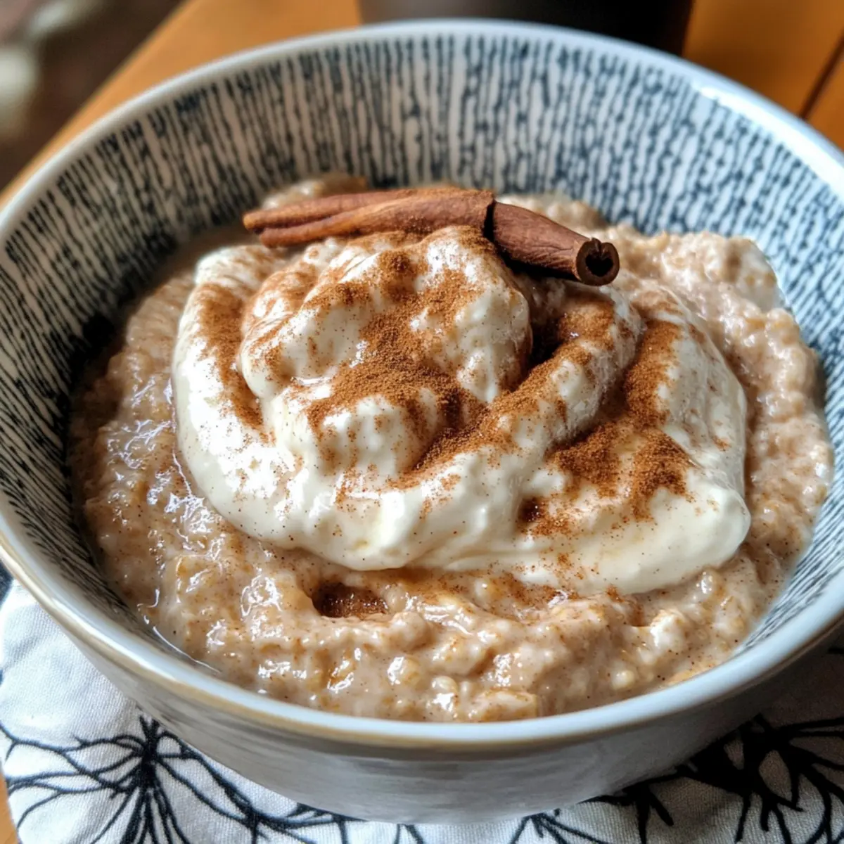 Kürzlich, während ich gemütlich am Frühstückstisch saß, schoss mir der Gedanke durch den Kopf: Wie wäre es, den unwiderstehlichen Geschmack von Zimtschnecken in eine gesunde Frühstücksoption zu verwandeln? Hier kommt mein Zimtschnecken-Porridge – Schnelles Porridge mit Zimt ins Spiel. In nur 10 Minuten bereitet, ist dieses proteinreiche Gericht nicht nur ein Genuss, sondern auch ein wahres Frühstücks-Kraftpaket. Es vereint die cremige Textur von Haferflocken mit der warmen, einladenden Note von Zimt und einer köstlichen Frischkäse-Topping, die jeden Morgen zu etwas Besonderem macht. Noch dazu ist es eine großartige Alternative zu klassischen, kalorienreichen Backwaren. Bist du bereit, dein Frühstücksrepertoire aufzupeppen? Warum ist dieses Porridge so besonders? Einzigartiger Geschmack: Die Kombination aus Zimt und cremigem Frischkäse bringt den vollen Genuss von Zimtschnecken auf deinen Frühstückstisch. Schnell zubereitet: In nur 10 Minuten hast du ein nahrhaftes Frühstück, ideal für hektische Morgende. Proteinreich und gesund: Mit 29.4g Protein pro Portion bleibst du den ganzen Vormittag satt, ohne auf ungesunde Optionen zurückzugreifen. Vielfältig anpassbar: Ob mit frischen Beeren oder Nüssen – du kannst das Porridge ganz nach deinem Geschmack gestalten! Lass dich inspirieren durch diese Variationen und entdecke neue Lieblingskombinationen. Perfekt für jeden Anlass: Egal ob an einem Montagmorgen oder beim Wochenendbrunch, es bringt Freude und Gemütlichkeit in deine Frühstücksroutine! Zimtschnecken-Porridge Zutaten • Dive into this delightful Zimtschnecken-Porridge, perfect for a quick and healthy breakfast! Für das Porridge Haferflocken (Oats) – der Hauptkohlenhydratlieferant, der für Fülle sorgt und auch glutenfrei erhältlich ist. Milch (Milk) – verleiht Cremigkeit; ungesüßte Mandelmilch ist eine kalorienarme Alternative. Skyr oder Magerquark (Low-fat Skyr or Quark) – proteinreiche Zutat für die cremige Konsistenz; kann durch griechischen Joghurt ersetzt werden. Für das Topping Frischkäse (Cream Cheese) – wird für das köstliche Zimt-Topping verwendet; man kann auf fettarmen Frischkäse umsteigen, um Kalorien zu sparen. Zimt (Cinnamon) – bringt Wärme und Geschmack; je nach Vorliebe kann man die Menge variieren. Erythrit oder Zucker (Sweetener) – süßt das Porridge und das Topping; Erythrit ist eine kalorienarme Wahl. Schritt-für-Schritt-Anleitung für Zimtschnecken-Porridge – Schnelles Porridge mit Zimt Step 1: Porridge zubereiten In einem mittelgroßen Topf oder einer mikrowellengeeigneten Schüssel die Haferflocken mit der Milch vermischen. Bei mittlerer Hitze unter ständigem Rühren 5–7 Minuten erhitzen, bis die Mischung cremig wird und die Haferflocken weich sind. Achte darauf, dass das Porridge nicht anbrennt, und nimm es vom Herd, sobald es die gewünschte Konsistenz erreicht hat. Step 2: Skyr einrühren Nach dem Kochvorgang das Porridge vom Herd nehmen und Skyr oder Magerquark gründlich unterrühren. Dies verleiht dem Zimtschnecken-Porridge eine herrlich cremige Textur. Je nach Geschmack mit Erythrit oder Zucker süßen und gut vermengen, sodass sich die Zutaten vollständig verbinden. Step 3: Topping zubereiten In einer separaten Schüssel den Frischkäse mit Zimt und Erythrit vermengen, bis eine glatte und cremige Masse entsteht. Diese Mischung sollte leicht süßlich und intensiv nach Zimt duften, wodurch das Topping für das Porridge perfekt vorbereitet ist. Achte darauf, dass keine Klumpen im Frischkäse verbleiben, damit jedes Löffelchen gleichmäßig schmeckt. Step 4: Anrichten und servieren Das Zimtschnecken-Porridge gleichmäßig auf Schalen verteilen. Mit einem Löffel das cremige Zimt-Frischkäse-Topping in spiralförmigen Bewegungen darübergeben. Optional kannst du zusätzlich etwas Zimt oder Erythrit obenauf streuen, um dem Gericht eine noch ansprechendere Note zu verleihen. Serviere das Porridge warm, um den vollen Geschmack und die köstliche Textur zu genießen. Zimtschnecken-Porridge – Variationen und Alternativen Lass deiner Kreativität freien Lauf und bringe neue geschmackliche Akzente in dein Porridge! Dairy-Free: Ersetze Skyr durch pflanzlichen Joghurt für eine cremige, milchfreie Option. Der Geschmack bleibt trotzdem köstlich und einladend. Protein-Power: Füge einen Löffel Proteinpulver hinzu, um den Proteingehalt weiter zu steigern. Dadurch erhältst du eine nahrhafte Frühstücksoption für Sportler. Fruchtige Note: Toppe dein Porridge mit frischen Beeren oder Pfirsichen für eine süße, saftige Variation. Obst bringt Frische und zusätzliche Vitamine ins Spiel. Nussige Crunch: Streue geröstete Nüsse oder Mandeln über das Porridge, um einen knusprigen Texturkontrast zu schaffen. Der Biss macht das Frühstück gleich noch spannender. Süßer Kick: Ersetze Erythrit durch Honig oder Ahornsirup für natürliche Süße und ein wenig mehr Geschmackstiefe. Achte darauf, ihn gut einzuarbeiten. Würzige Mischung: Experimentiere mit Muskatnuss oder Ingwer für eine würzige Note, die bestens zum Zimt passt. Diese Kombination sorgt für ein aufregendes Geschmackserlebnis. Cremiger Genuss: Verwende statt Frischkäse griechischen Joghurt oder Quark für eine leichte, proteinreiche Variante. Die Cremigkeit bleibt und der Geschmack verändert sich leicht. Scharfe Akzente: Wenn du es gerne würzig magst, füge eine Prise Cayennepfeffer hinzu, um dem Porridge einen überraschenden Kick zu verleihen. Das ist nicht für schwache Nerven, aber ein echter Genuss für Liebhaber von scharfen Speisen! Jede dieser Variationen bietet dir die Möglichkeit, dein Zimtschnecken-Porridge ganz nach deinem Geschmack anzupassen. Viel Spaß beim Experimentieren! Expert Tips für Zimtschnecken-Porridge Haferflocken richtig wählen: Achte darauf, zertifizierte glutenfreie Haferflocken zu verwenden, wenn du ein glutenfreies Zimtschnecken-Porridge zubereiten möchtest. Skyr gleichmäßig einrühren: Für eine cremi