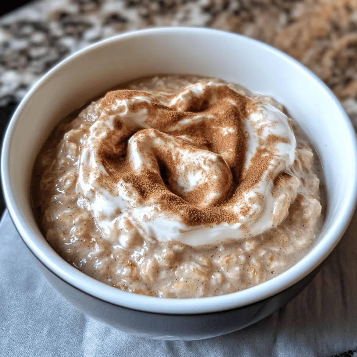 Einen herrlichen Duft von frisch gebackenen Zimtschnecken, der die Küche erfüllt, kann ich kaum widerstehen. In dieser schnellen Zimtschnecken-Porridge – Schnelles Porridge mit Zimt verwandele ich die Gelassenheit einer klassischen Zimtschnecke in ein cremiges Frühstück. Mit nur ein paar Minuten Zubereitungszeit ist dieses proteinreiche Porridge nicht nur eine schmackhafte, sondern auch eine nährstoffreiche Wahl für einen energievollen Start in den Tag. Der Mix aus Haferflocken und Skyr sorgt für eine hohe Ballaststoff- und Proteinzufuhr, während die süße Zimtnote Ihrem Gaumen schmeichelt. Stellen Sie sich vor, Sie genießen ein warmes Frühstück, das mit gesundem Genuss verpackt ist, während die frische Zimt-Sahne darüber spiralförmig verteilt ist. Bereit für eine köstliche Abwechslung, die jeder Küchenliebhaber lieben wird? Warum Sie dieses Rezept lieben werden Einfachheit: Die Zubereitung ist kinderleicht und benötigt nur grundlegende Kochkenntnisse. Gesundheitlich wertvoll: Vollgepackt mit Proteinen und Ballaststoffen, ist dieses Porridge eine großartige, nährstoffreiche Wahl für alle, die auf ihre Ernährung achten. Vielfältige Varianten: Ob mit frischem Obst, Nüssen oder sogar einer zuckerfreien Karamellsauce – die Möglichkeiten sind endlos! Wärme und Komfort: Der köstliche Duft von Zimt und die cremige Textur erinnern an klassische Zimtschnecken und bringen sofortige Behaglichkeit in Ihre Morgenroutine. Zeitersparnis: In nur 10 Minuten zubereitet, ist dieses Frühstück der perfekte Start in den Tag, ideal für hektische Morgen! Beliebtheit: Jeder wird dieses Porridge lieben, egal ob Kinder oder Erwachsene – es ist der perfekte Reisebegleiter weg von Fast Food. Zimtschnecken-Porridge Zutaten Hinweis: Diese Zutaten machen Ihr Zimtschnecken-Porridge zu einem gesunden und leckeren Frühstückserlebnis. Für das Porridge Haferflocken – der perfekte Basis für Ballaststoffe und eine cremige Konsistenz. Glutenfreie Haferflocken sind eine tolle Alternative! Milch – sorgt für die notwendige Cremigkeit; verwenden Sie ungesüßte Mandelmilch für eine leichte Variante. Skyr oder Magerquark – liefert hochwertigen Eiweißgehalt und trägt zur Cremigkeit bei; griechischer Joghurt kann ebenfalls verwendet werden. Süße nach Belieben – je nach Vorliebe; Erythrit ist eine tolle kalorienarme Option. Zimt – das Herzstück des Geschmacks mit süßer Wärme; frischer Zimt hebt den Geschmack hervor. Für das Topping Frischkäse – für den charakteristischen cremigen Belag; wählen Sie eine fettarme Variante, um die Kalorien zu reduzieren. Erythrit oder Zucker – als Süßungsmittel für den Frischkäse; Erythrit hält das Gericht kalorienarm. Mit diesen Zutaten wird Ihr Zimtschnecken-Porridge nicht nur gemütlich, sondern auch nährstoffreich und voll im Geschmack! Schritt-für-Schritt-Anleitung für Zimtschnecken-Porridge – Schnelles Porridge mit Zimt Step 1: Haferflocken kochen Geben Sie die Haferflocken zusammen mit der Milch in einen Topf und bringen Sie die Mischung bei mittlerer Hitze zum Kochen. Rühren Sie häufig um, damit nichts anbrennt. Dabei sollte die Konsistenz cremig werden, was etwa 5–7 Minuten dauert. Bei Erreichung der gewünschten Dicke vom Herd nehmen. Step 2: Protein hinzufügen Entfernen Sie den Topf von der Hitze und rühren Sie sofort den Skyr oder Magerquark unter die Haferflocken, bis alles gut vermischt ist. Dies wird dem Zimtschnecken-Porridge eine köstliche Cremigkeit verleihen. Süßen Sie die Mischung nach Belieben mit Erythrit oder einem anderen Süßungsmittel, um den perfekten Geschmack zu erzielen. Step 3: Topping vorbereiten In einer separaten Schüssel den Frischkäse mit Zimt und Erythrit gut vermengen, bis eine glatte und cremige Konsistenz erreicht ist. Achten Sie darauf, dass sich die Zutaten gleichmäßig verteilen, damit der Zimtgeschmack kräftig zur Geltung kommt. Dieses cremige Topping sorgt für den typischen Zimtschnecken-Geschmack Ihres Porridges. Step 4: Servieren Löffeln Sie das fertige Zimtschnecken-Porridge in eine Schüssel und geben Sie das Zimt-Frischkäse-Topping spiralförmig darüber. Optional können Sie zusätzlich Zimt und Erythrit über das Porridge streuen, um das Aroma zu verstärken. Genießen Sie Ihr warmes, köstliches Frühstück direkt nach der Zubereitung! Zimtschnecken-Porridge Variationen Lassen Sie Ihrer Kreativität freien Lauf und passen Sie dieses Rezept ganz nach Ihrem Geschmack an! Glutenfrei: Verwenden Sie glutenfreie Haferflocken anstelle von herkömmlichen Haferflocken für ein продукт, das für Jedermann geeignet ist. Vegane Option: Ersetzen Sie die Milch durch ungesüßte Mandel- oder Hafermilch und den Skyr durch pflanzlichen Joghurt für ein veganes Frühstück. Nussig: Fügen Sie gehackte Walnüsse oder Mandeln hinzu, um dem Porridge einen köstlichen Crunch und gesunde Fette hinzuzufügen. Eine Handvoll Nüsse bringt nicht nur Textur, sondern auch einen zusätzlichen Proteinboost. Fruchtige Note: Garnieren Sie das Porridge mit frischen Beeren oder Bananenscheiben. Diese bringen natürliche Süße und Vitamine in Ihr Gericht. Süßer Genuss: Ein Spritzer Honig oder Ahornsirup über das fertige Porridge macht das Frühstück noch dekadenter. Es passt hervorragend zum Zimtgeschmack! Cremiger Genuss: Probieren Sie die Topping-Option mit einem Klecks Erdnussbutter oder Mandelmus! Es fügt nicht nur Geschmack, sondern auch eine cremige Textur hinzu. Zimt-Explosion: Für Zimtliebhaber können Sie zusätzlich Zimt in das Porridge selbst einrühren, um den Geschmack noch intensiver zu machen. Ein echtes Geschmacksfeuerwerk! Karamellisiert: Eine selbstgemachte Apfelkompott als Topping bringt eine süße, fruchtige Note und ergänzt den Zimt perfekt. Ein wenig ofen- oder pfannenröstete Äpfel macht wirklich den Unterschied. Der Austausch der Zutaten eröffnet Ihnen unzählige Möglichkeiten. Lassen Sie sich inspirieren und entdecken Sie Ihre Lieblingskombination! E