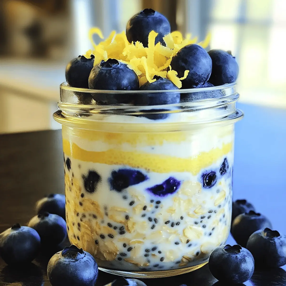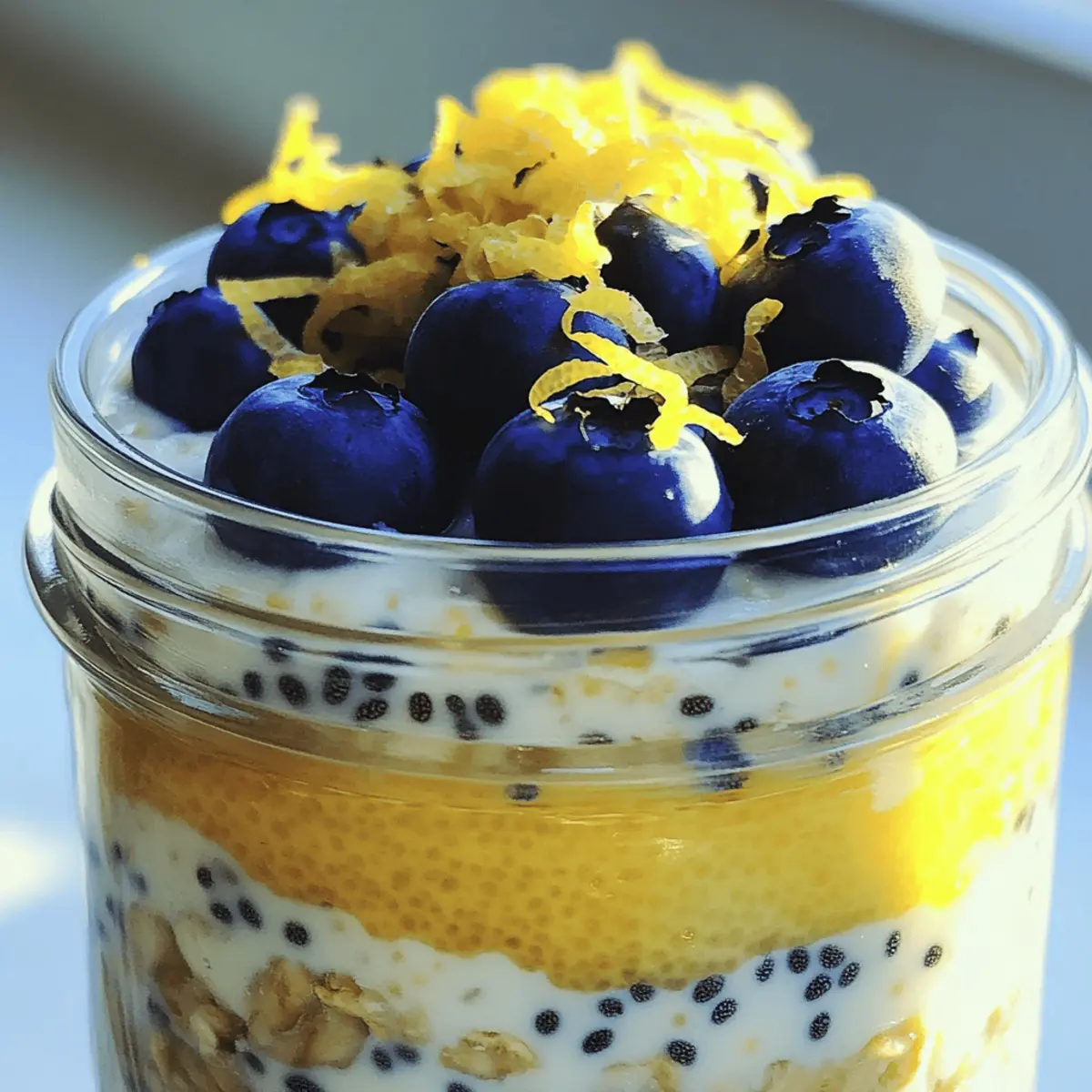 „Hast du schon die neue Frühstücks-Routine gehört?“ flüsterte meine Freundin, während wir an einem sonnigen Morgen in der Küche standen. „Zitronen-Blaubeer-Übernacht-Haferflocken – ein köstlicher Gesundheitskick!“ Dieser einfache, aber genussvolle Start in den Tag hat meine Morgen völlig verändert. Diese Übernacht-Haferflocken sind nicht nur schnell zubereitet, sondern auch ein wahrer Nutrienten-Booster, der dir neue Energie gibt. Mit der frischen Kombination aus cremigen Haferflocken, knackigen Chia-Samen und den süßen Blaubeeren ist es die perfekte Lösung für alle, die auf der Suche nach einem gesunden Frühstück sind, das sie bereits am Abend zuvor vorbereiten können. Lust auf einen erfrischenden Frühstückshit, der dir die perfekte Balance aus Geschmack und Gesundheit bietet? Lass uns gemeinsam in das Rezept eintauchen! Warum du dieses Rezept lieben wirst? Einfachheit, die begeistert: Die Zubereitung ist so unkompliziert, dass selbst Anfänger in der Küche nicht scheitern können. Frische Aromen: Die Kombination aus saftigen Blaubeeren und lebhaftem Zitronengeschmack sorgt für einen erfrischenden Start in den Tag. Nährstoffreich und sättigend: Diese Übernacht-Haferflocken sind vollgepackt mit Ballaststoffen und Antioxidantien, ideal für einen gesunden Lebensstil. Vielseitigkeit für jeden Geschmack: Variiere die Früchte oder füge Gewürze hinzu, um die perfekte Portion für jeden Tag zu kreieren – eine großartige Möglichkeit, deine Kreativität in der Küche auszuleben. Zeitersparnis für den Morgen: Bereite es am Vorabend vor und genieße ein stressfreies Frühstück, das dir Energie für den ganzen Tag gibt. Für weitere köstliche und gesunde Frühstücksideen, schau dir auch unsere Veganen Frühstücksrezepte an! Zitronen-Blaubeer-Übernacht-Haferflocken Zutaten Für die Haferflocken • Haferflocken – bieten eine herzhafte Basis und viele Ballaststoffe; jede Art von Haferflocken kann verwendet werden. • Chiasamen – verdicken die Mischung und fügen Omega-3-Fettsäuren hinzu; alternativ können gemahlene Leinsamen verwendet werden. • Salz – sorgt für einen harmonischen Geschmack; eine Prise reicht völlig aus. Für die Flüssigkeit • Mandelmilch – hydratisiert die Haferflocken; kann durch jede Milchart ersetzt werden (pflanzlich oder tierisch). • Ahornsirup oder Honig – süßt die Haferflocken auf natürliche Weise; passe die Menge nach Belieben an. • Vanilleextrakt – rundet den Geschmack ab; kann weggelassen werden, wenn du es schlichter magst. Für das Aroma • Zitronenschale – verstärkt die frische Zitrusnote; für eine Abwandlung kann auch Limettenschale verwendet werden. Für die Früchte • Blaubeeren – sorgen für Süße und Farbe; ersetze sie nach Belieben durch andere Beeren wie Himbeeren oder Erdbeeren. Für die Cremigkeit • Griechischer Joghurt (optional) – fügt Cremigkeit und Protein hinzu; für eine vegane Variante kann eine pflanzliche Joghurtalternative verwendet werden. Diese Zitronen-Blaubeer-Übernacht-Haferflocken sind ein köstlicher Gesundheitskick, den du unbedingt ausprobieren solltest! Schritt-für-Schritt-Anleitung für Zitronen-Blaubeer-Übernacht-Haferflocken Step 1: Trockene Zutaten vermengen In einer mittelgroßen Schüssel die Haferflocken, Chiasamen, Zitronenschale und eine Prise Salz gründlich vermischen. Achte darauf, dass die Zutaten gleichmäßig verteilt sind. Dies sorgt dafür, dass jede Portion der Zitronen-Blaubeer-Übernacht-Haferflocken die perfekte Balance aus Geschmack und Nährstoffen erhält. Step 2: Flüssige Zutaten anrühren In einer separaten Schüssel die Mandelmilch, den Ahornsirup oder Honig sowie den Vanilleextrakt mit einem Schneebesen gut verrühren, bis alles gut vermischt ist. Du kannst die Konsistenz testen, indem du die Mischung leicht anhebst; sie sollte cremig und gleichmäßig sein. Step 3: Kombination der Zutaten Gieße die flüssige Mischung über die trockenen Zutaten und rühre sie mit einem Löffel oder einem Spatel vorsichtig um, bis alles gut kombiniert ist. Achte darauf, keine Klumpen zu hinterlassen, damit deine Zitronen-Blaubeer-Übernacht-Haferflocken eine angenehme Textur erhalten. Step 4: Beeren hinzufügen Füge behutsam die frischen Blaubeeren hinzu und falte sie vorsichtig in die Mischung ein. Dies gewährleistet, dass die Beeren nicht zerdrückt werden und in jedem Bissen ein wenig Süße und Farbe liefern. Die Kombination aus Zitronen und Blaubeeren wird das Aroma wunderbar abrunden. Step 5: Mischung portionieren und kühlen Teile die Mischung gleichmäßig in Gläser oder luftdichte Behälter auf. Verschließe sie gut, um die Frische zu bewahren, und stelle sie über Nacht oder für mindestens 4 Stunden in den Kühlschrank. Dadurch können die Haferflocken und Chiasamen die Flüssigkeit aufnehmen und quellen, was zu einer cremigen Konsistenz führt. Step 6: Fertigstellen und genießen Am nächsten Morgen die Zitronen-Blaubeer-Übernacht-Haferflocken gut umrühren; optional kannst du griechischen Joghurt hinzufügen, um zusätzliche Cremigkeit zu erhalten. Du kannst auch etwas Milch hinzufügen, wenn du eine flüssigere Konsistenz bevorzugst. Step 7: Anrichten und servieren Garnieren die Overnight Oats mit zusätzlichen Blaubeeren und einem Hauch von Zitronenschale, um die Farben zu betonen und das Aroma zu intensivieren. Serviere die Haferflocken kalt und genieße einen erfrischenden und gesunden Start in deinen Tag! Aufbewahrungstipps für Zitronen-Blaubeer-Übernacht-Haferflocken Kühlschrank: Bewahre die Zitronen-Blaubeer-Übernacht-Haferflocken in einem luftdichten Behälter im Kühlschrank auf. Sie sind bis zu 3 Tage frisch und genießen. Gefrierer: Du kannst die Haferflocken portionsweise einfrieren. Achte darauf, sie gut zu verpacken, damit sie bis zu 2 Monate haltbar sind. Zum Auftauen einfach über Nacht im Kühlschrank lassen. Wiedererwärmen: Solltest du die Haferflocken warm genießen wollen, erwärme sie in der M