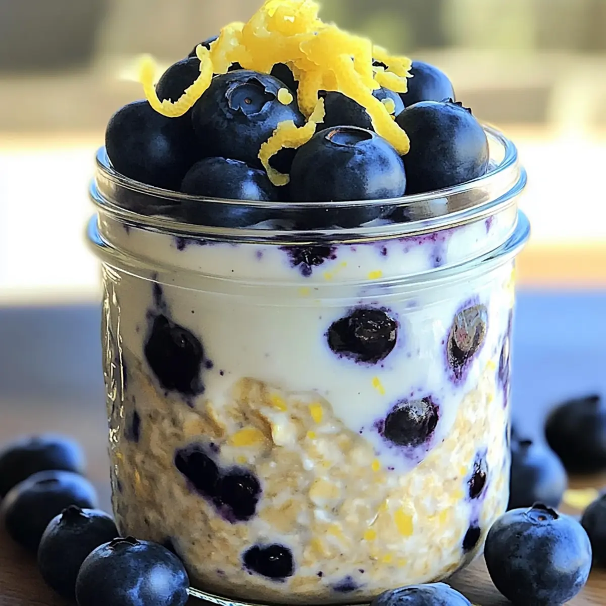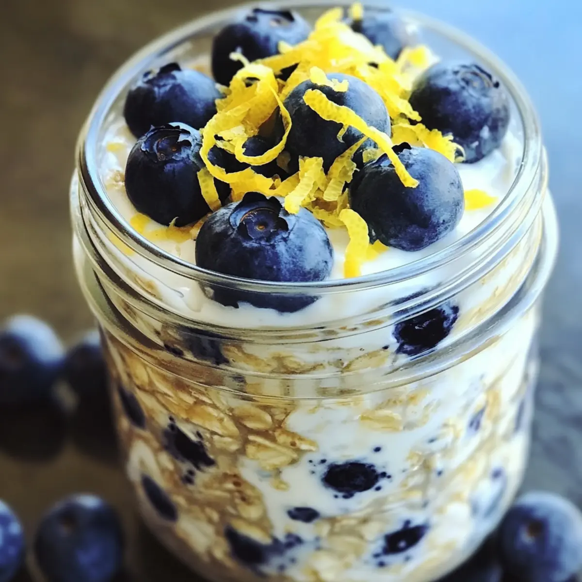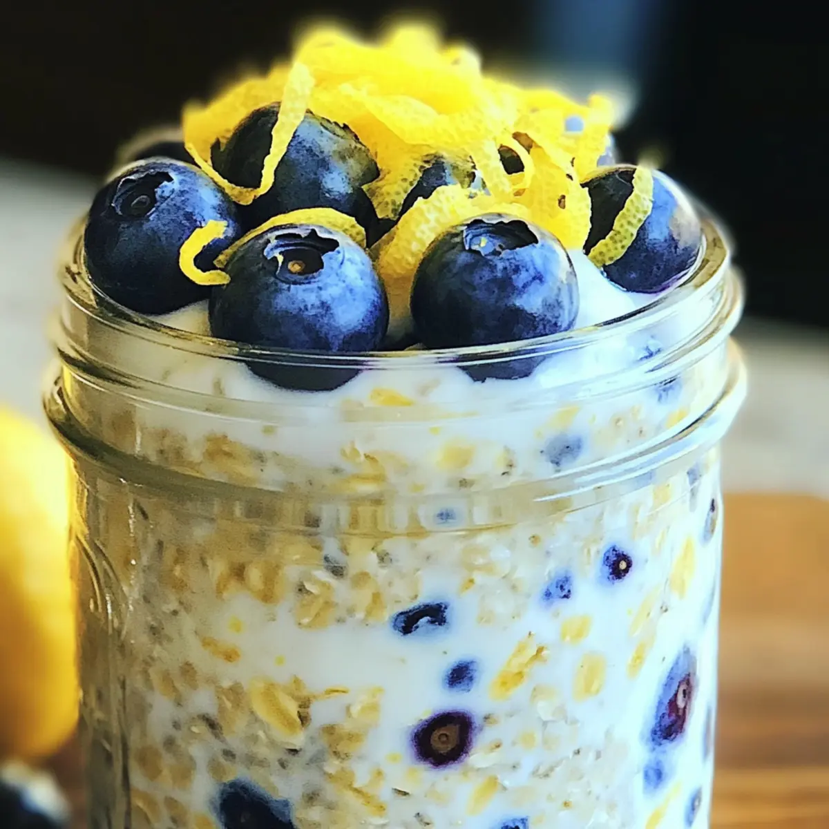 Während ich meine Morgenroutine aufpeppte, entdeckte ich das perfekte Rezept für einen gesunden Start in den Tag: Zitronen-Blaubeer-Übernacht-Haferflocken. Wer könnte da widerstehen? Diese Übernacht-Haferflocken sind nicht nur lecker, sondern auch ein wahres Nährstoffpaket. Die cremige Textur, kombiniert mit der Frische der Blaubeeren und dem spritzigen Aroma von Zitrone, macht dieses Frühstück unwiderstehlich und voller Energie. Und das Beste daran? Die Zubereitung dauert nur 10 Minuten! Perfekt für hektische Morgen, an denen wir einen gesunden Kick brauchen, ohne Aufwand. Statt sich mit Fast Food zu begnügen, gönnen Sie sich diesen köstlichen Gesundheitskick. Bereit, mehr über diese zarten, gesunden Haferflocken zu erfahren? Warum sind diese Übernacht-Haferflocken so besonders? Gesundheitlicher Kick: Diese Zitronen-Blaubeer-Übernacht-Haferflocken sind nicht nur schmackhaft, sondern auch voller Nährstoffe, die Ihnen helfen, energiegeladen in den Tag zu starten. Einfache Zubereitung: In nur 10 Minuten können Sie ein gesundes Frühstück zubereiten, das perfekt für die Hektik des Alltags geeignet ist. Vielseitigkeit: Sie können die Obstsorten nach Ihrem Geschmack variieren, seien es Erdbeeren oder Bananen, und so immer wieder neue Geschmackserlebnisse schaffen. Nährstoffreich: Die Kombination aus Haferflocken, Chiasamen und frischen Blaubeeren liefert wertvolle Ballaststoffe und Antioxidantien. Platz für Kreativität: Fügen Sie Gewürze wie Zimt hinzu oder verwenden Sie pflanzliche Süßstoffe für eine noch gesündere Version. Genießen Sie ein Frühstück, das sowohl Ihre Geschmacksnerven als auch Ihr Wohlbefinden verwöhnt! Zitronen-Blaubeer-Übernacht-Haferflocken Zutaten • Für die Haferbasis Haferflocken – sorgen für die Struktur und sind reich an Ballaststoffen. Mandelmilch – wirkt als flüssige Basis, die die Haferflocken hydratisiert; alternativ können Sie jede bevorzugte Milch verwenden. Chiasamen – verdicken die Mischung und fügen Omega-3-Fettsäuren hinzu; Flachs- oder Hanfsamen sind ebenfalls gute Alternativen. Zitronenschale – verleiht einen spritzigen Geschmack, der die Blaubeeren ergänzt. • Für die Süße Ahornsirup oder Honig – sorgt für natürliche Süße; passen Sie die Menge nach Ihrem Geschmack an. Vanilleextrakt – verstärkt die Geschmacksintensität. Salz – eine Prise balanciert die Süße und den Geschmack. • Für das Frucht-Topping Blaubeeren – die Hauptfrucht für Geschmack und Farbe; können durch Erdbeeren oder Himbeeren ersetzt werden. Optional – Griechischer Joghurt – sorgt für Cremigkeit und erhöht den Proteingehalt; perfekt für einen köstlichen Gesundheitskick! Schritt-für-Schritt-Anleitung für Zitronen-Blaubeer-Übernacht-Haferflocken Step 1: Haferbasis vorbereiten In einer mittelgroßen Schüssel die Haferflocken, Chiasamen, Zitronenschale und eine Prise Salz gut vermengen. Rühren Sie die Mischung gründlich um, bis alle trockenen Zutaten gleichmäßig verteilt sind. Die Farben und Texturen sollten harmonisch wirken, bevor wir mit der flüssigen Basis fortfahren. Step 2: Flüssige Mischung anrühren In einer separaten Schüssel die Mandelmilch, den Ahornsirup und den Vanilleextrakt gründlich mit einem Schneebesen vermengen, bis eine glatte Flüssigkeit entsteht. Diese Mischung wird gleich über die Haferbasis gegossen und sorgt für eine köstlich cremige Konsistenz. Nehmen Sie sich etwa 2-3 Minuten Zeit für diesen Schritt. Step 3: Kombination der Zutaten Gießen Sie die flüssige Mischung vorsichtig in die Schüssel mit der Haferbasis und rühren Sie sie gründlich durch, bis alles gut vermengt ist. Achten Sie darauf, dass die Haferflocken vollständig mit der Flüssigkeit in Kontakt kommen, sodass sie später perfekt aufquellen können. Dieser Schritt dauert etwa 1-2 Minuten. Step 4: Früchte hinzufügen Fügen Sie die frischen Blaubeeren vorsichtig in die Mischung ein, wobei Sie das Kneten der Beeren minimieren. Dies sorgt dafür, dass die Farbe und der Geschmack der Blaubeeren erhalten bleiben. Nutzen Sie einen Spatel, um die Beeren sanft unterzuheben, sodass sie gleichmäßig verteilt sind. Step 5: Portionieren und Kühlen Teilen Sie die Mischung gleichmäßig auf geeignete Behälter oder Gläser auf und verschließen Sie diese gut. Stellen Sie die Behälter in den Kühlschrank und lassen Sie die Übernacht-Haferflocken mindestens 4 Stunden oder über Nacht ruhen, damit die Haferflocken die Flüssigkeit optimal aufnehmen können. Dies sorgt für eine perfekte Konsistenz. Step 6: Servieren und Verfeinern Vor dem Servieren die Übernacht-Haferflocken gut umrühren, um die Textur zu lockern. Falls gewünscht, können Sie griechischen Joghurt hinzufügen, um die Cremigkeit zu erhöhen. Garnieren Sie die Haferflocken mit zusätzlichen Blaubeeren und etwas Zitronenschale für einen extra zesty Kick. Expertentipps für Zitronen-Blaubeer-Übernacht-Haferflocken Konsistenz anpassen: Stellen Sie sicher, dass die Mandelmilchmenge auf Ihren Geschmack abgestimmt ist—weniger Flüssigkeit macht die Zitronen-Blaubeer-Übernacht-Haferflocken dicker und cremiger. Frische bewahren: Lagern Sie die Overnight Oats in einem luftdichten Behälter, um sicherzustellen, dass die Zutaten frisch und lecker bleiben. Früchte substituieren: Experimentieren Sie mit verschiedenen Früchten; Himbeeren oder Erdbeeren können genauso gut wie Blaubeeren verwendet werden, ohne den Geschmack zu beeinträchtigen. Süße regulieren: Passen Sie die Menge an Ahornsirup oder Honig an, um die Süße Ihrer Haferflocken ganz nach Ihrem persönlichen Geschmack zu verändern. Würze hinzufügen: Für zusätzliche Geschmackstiefe können Sie Gewürze wie Zimt oder Muskatnuss einstreuen, um den Geruch und Geschmack zu intensivieren. Wie man Zitronen-Blaubeer-Übernacht-Haferflocken im Voraus zubereitet Diese Zitronen-Blaubeer-Übernacht-Haferflocken sind perfekt für die Meal Prep, da Sie die Basis bis zu 3 Tage im Voraus zubereiten kö