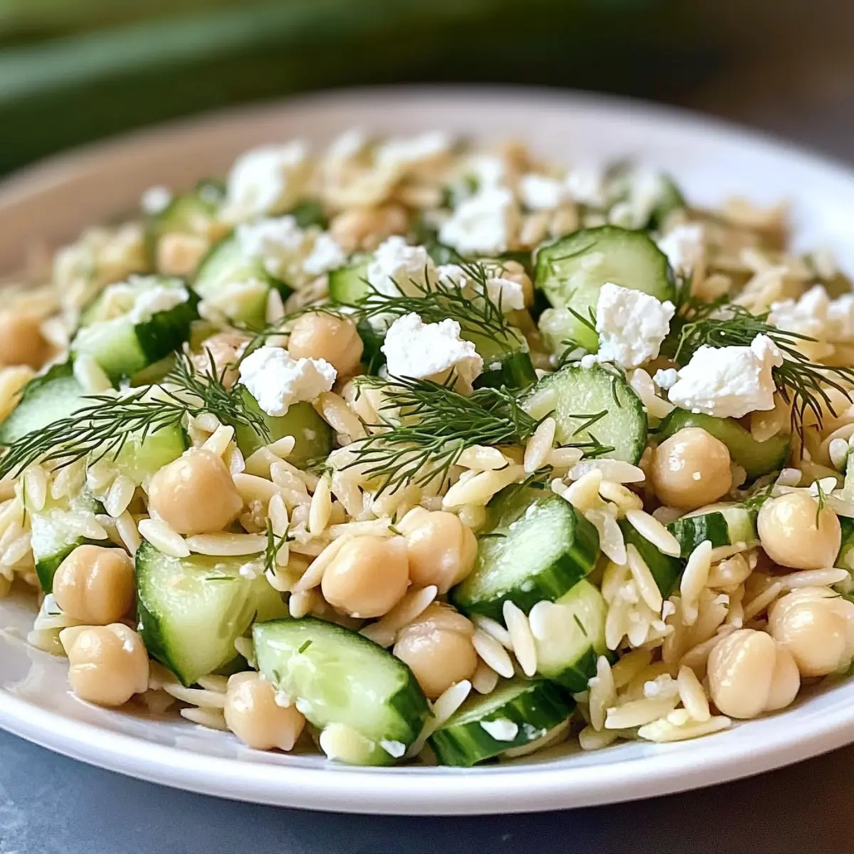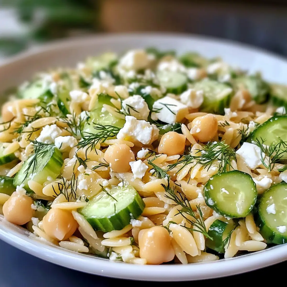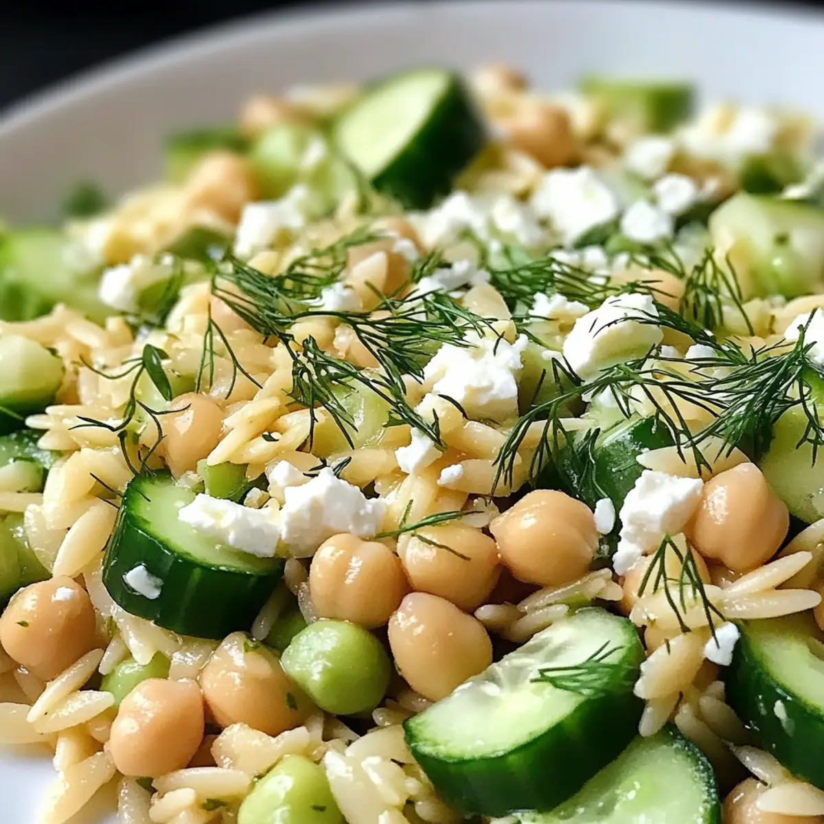 Eines der schönsten Dinge beim Kochen ist, wie es uns in ferne Länder entführen kann, ohne jemals das Haus zu verlassen. Heute lade ich euch ein, mit mir einen Hauch von mediterraner Frische zu erleben mit meinem Zitronen-Orzo-Kichererbsensalat Rezept. Dieses Rezept ist nicht nur vegetarisch und proteinreich, sondern auch blitzschnell zubereitet und perfekt zum Mitnehmen. Ob als leichtes Abendessen, Mittagessen für den Job oder als bunter Begleiter zu einem Picknick – dieser Salat ist ein wahrer Alleskönner. Und das Beste? Er schmeckt noch besser, wenn er etwas durchzieht! Wer kann da schon widerstehen? Lasst uns gemeinsam in die Welt dieses köstlichen Gerichts eintauchen! Warum ist dieser Salat so besonders? Frische Aromen: Der Zitronen-Orzo-Kichererbsensalat bringt mit jedem Bissen das Gefühl von Sonne auf den Tisch. Komponenten wie frischer Zitronensaft und knackige Paprika erwecken die Sinne und sorgen für ein leichtes, erfrischendes Erlebnis. Einfach und Schnell: Die Zubereitung ist unglaublich einfach – in nur wenigen Minuten habt ihr ein schmackhaftes Gericht, das sich perfekt zum Mitnehmen eignet. Vielseitigkeit in der Küche: Ob als leichtes Mittagessen oder Beilage zu gegrilltem Fleisch, dieser Salat passt einfach zu allem. Ihr könnt ihn auch nach eurem Geschmack anpassen, indem ihr andere Gemüsesorten oder Kräuter versucht. Tolles Preis-Leistungs-Verhältnis: Dank der Verwendung von Hülsenfrüchten wird dieses Rezept nicht nur sättigend, sondern auch sehr preiswert. Perfekt für Meal Prep: Ihr könnt ihn im Voraus zubereiten und genießen, denn die Aromen werden mit der Zeit nur besser. Wer möchte nicht eine Mahlzeit, die sich wie ein mediterranes Festmahl anfühlt? Zutaten für Zitronen-Orzo-Kichererbsensalat Für den Salat • Orzo – gibt diesem Gericht die nötige Pasta-Textur; ihr könnt auch kleine Pastasorten wie Ditalini verwenden. • Kichererbsen – bringen Protein und eine cremige Note; auch schwarze Bohnen sind eine leckere Alternative. • Paprika – sorgt für einen bunten Crunch und frisches Aroma; probiert auch Zucchini für eine ähnliche Textur. • Frische Petersilie – verleiht frische Kräuternuancen; andere Kräuter wie Minze oder Dill können ebenfalls verwendet werden. • Rote Zwiebel – bringt eine scharfe, ausgewogene Note; weiße oder gelbe Zwiebel funktionieren alternativ, sind aber milder. • Feta-Käse – sorgt für Cremigkeit und einen salzigen Kick; auch Ziegenkäse oder vegane Alternativen sind möglich. Für das Dressing • Zitronensaft – sorgt für einen spritzig-frischen Geschmack; frisch gepresster Saft ist am besten für maximale Fruchtigkeit. • Olivenöl – dient als basis für das Dressing und erhöht den Geschmack; hochwertiges, extra natives Olivenöl ist hier die beste Wahl. • Salz und Pfeffer – nach Geschmack hinzufügen, um die Aromen zum Strahlen zu bringen; würzt das Gericht optimal ab. Dieser Zitronen-Orzo-Kichererbsensalat Rezept wird euch durch seine frischen, gesunden Zutaten und einfache Zubereitung begeistern! Step-by-Step Instructions for Zitronen-Orzo-Kichererbsensalat Rezept Step 1: Orzo kochen Bringe in einem großen Topf ausreichend gesalzenes Wasser zum Kochen, dann füge 1 Tasse Orzo hinzu. Koche den Orzo laut Verpackungsanleitung für etwa 8–10 Minuten, bis er al dente ist. Gieße ihn dann in ein Sieb ab und spüle ihn kurz unter kaltem Wasser ab, um das Garen zu stoppen und die Körner voneinander zu trennen. Step 2: Gemüse vorbereiten Während der Orzo kocht, bereite das Gemüse vor. Schneide die Paprika in kleine Würfel und hacke die rote Zwiebel fein. Fülle eine große Schüssel mit den abgetropften Kichererbsen, den gewürfelten Paprika, der gehackten Petersilie und dem zerbröselten Feta-Käse. Vermische alles gut, damit die Aromen sich bereits entfalten können. Step 3: Dressing zubereiten In einer kleinen Schüssel vermischst du den Saft von 1 Zitrone, 3 Esslöffel Olivenöl, Salz und Pfeffer nach Geschmack. Rühre die Mischung kräftig um, bis das Dressing gut emulgiert ist und eine leicht cremige Konsistenz erreicht. Dieses Zitronen-Dressing wird dem Salat eine spritzige Frische verleihen. Step 4: Zutaten vereinen Nachdem der Orzo abgekühlt ist, füge ihn zur Gemüse- und Kichererbsen-Mischung in der großen Schüssel hinzu. Gieße das zubereitete Dressing darüber und vermenge alles gründlich. Stelle sicher, dass der Orzo und das Gemüse gleichmäßig mit dem Dressing bedeckt sind, damit jeder Bissen voller Geschmack ist. Step 5: Ruhen lassen Lasse den Zitronen-Orzo-Kichererbsensalat für mindestens 10–15 Minuten ruhen, bevor du ihn servierst. Diese Zeit ermöglicht es den Aromen, sich zu verbinden und intensiver zu werden. Du kannst den Salat bei Raumtemperatur genießen oder ihn im Kühlschrank für eine erfrischende Note kühl stellen. Aufbewahrungstipps für Zitronen-Orzo-Kichererbsensalat ** Kühlschrank:** Bewahre übrig gebliebenen Zitronen-Orzo-Kichererbsensalat in einem luftdichten Behälter im Kühlschrank auf. So bleibt er bis zu 3 Tage frisch und schmackhaft. Reste verbessern: Die Aromen werden mit der Zeit intensiver, was diesen Salat zu einer idealen Wahl für vorbereitete Mahlzeiten macht. Nicht einfrieren: Es wird empfohlen, diesen Salat nicht einzufrieren, da die frischen Gemüse und der Feta-Käse ihre Textur verlieren können, wenn sie aufgetaut werden. Servieren: Genieße den Salat entweder bei Zimmertemperatur oder kühl aus dem Kühlschrank. Ein zusätzlicher Spritzer frischer Zitrone beim Servieren bringt die Aromen noch mehr zur Geltung! Meal Prep für Zitronen-Orzo-Kichererbsensalat Rezept Der Zitronen-Orzo-Kichererbsensalat ist ideal für die Vorbereitung im Voraus! Ihr könnt die einzelnen Komponenten bis zu 3 Tage vor dem Servieren vorbereiten: Kocht den Orzo und lasst ihn abkühlen, während ihr die Kichererbsen einfach abspült und die Paprika sowie Zwiebeln klein schneidet. Diese Zutaten erreichen so ihre besten Aromen. Bewahrt si